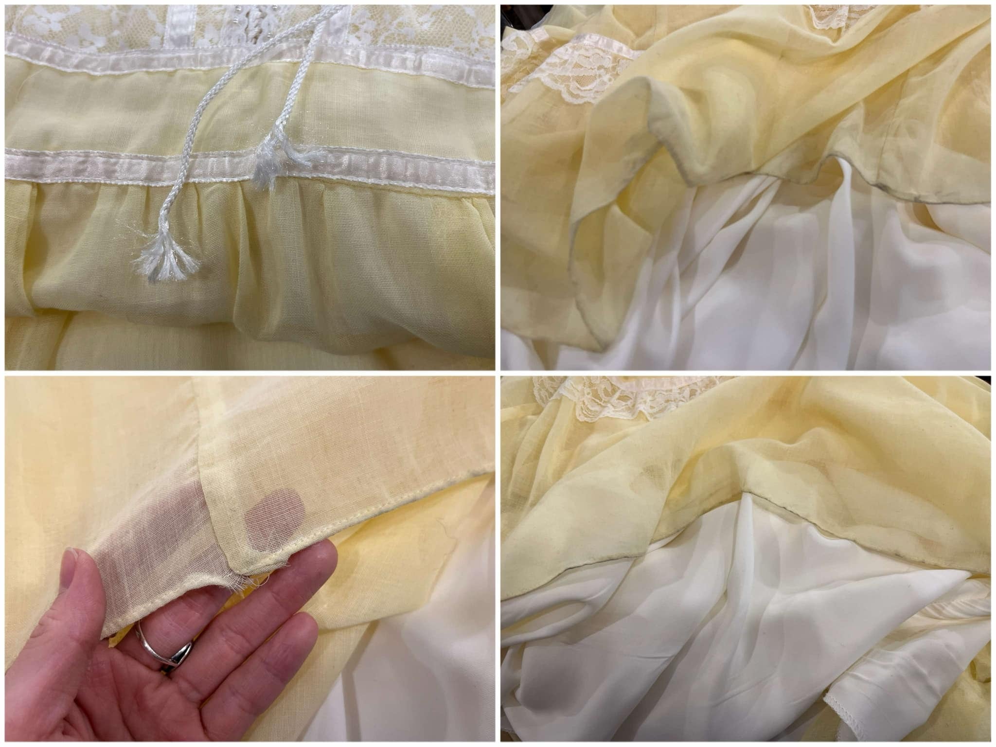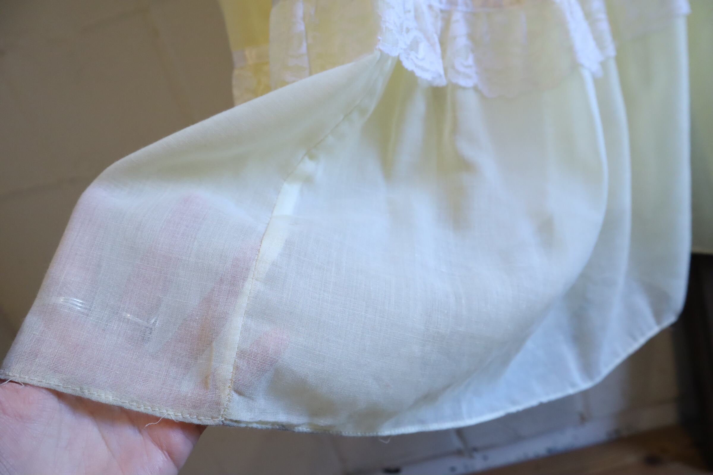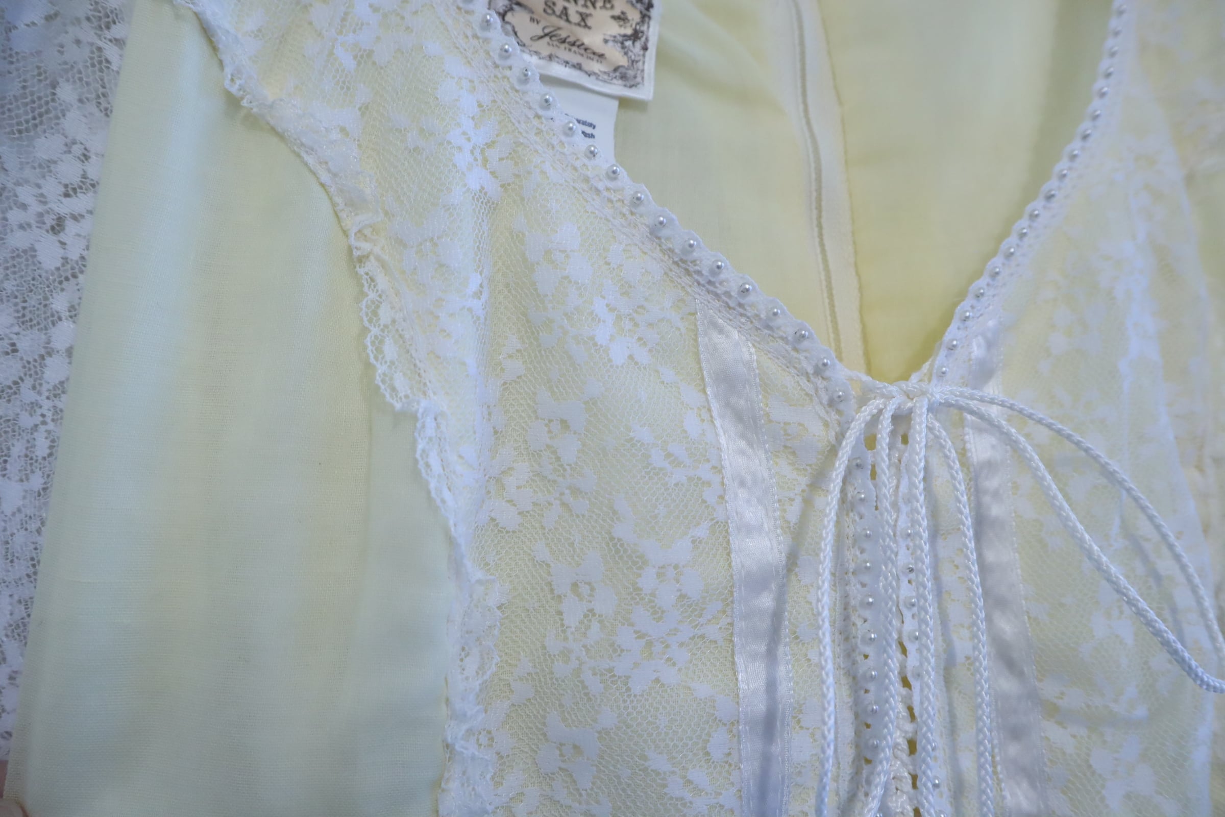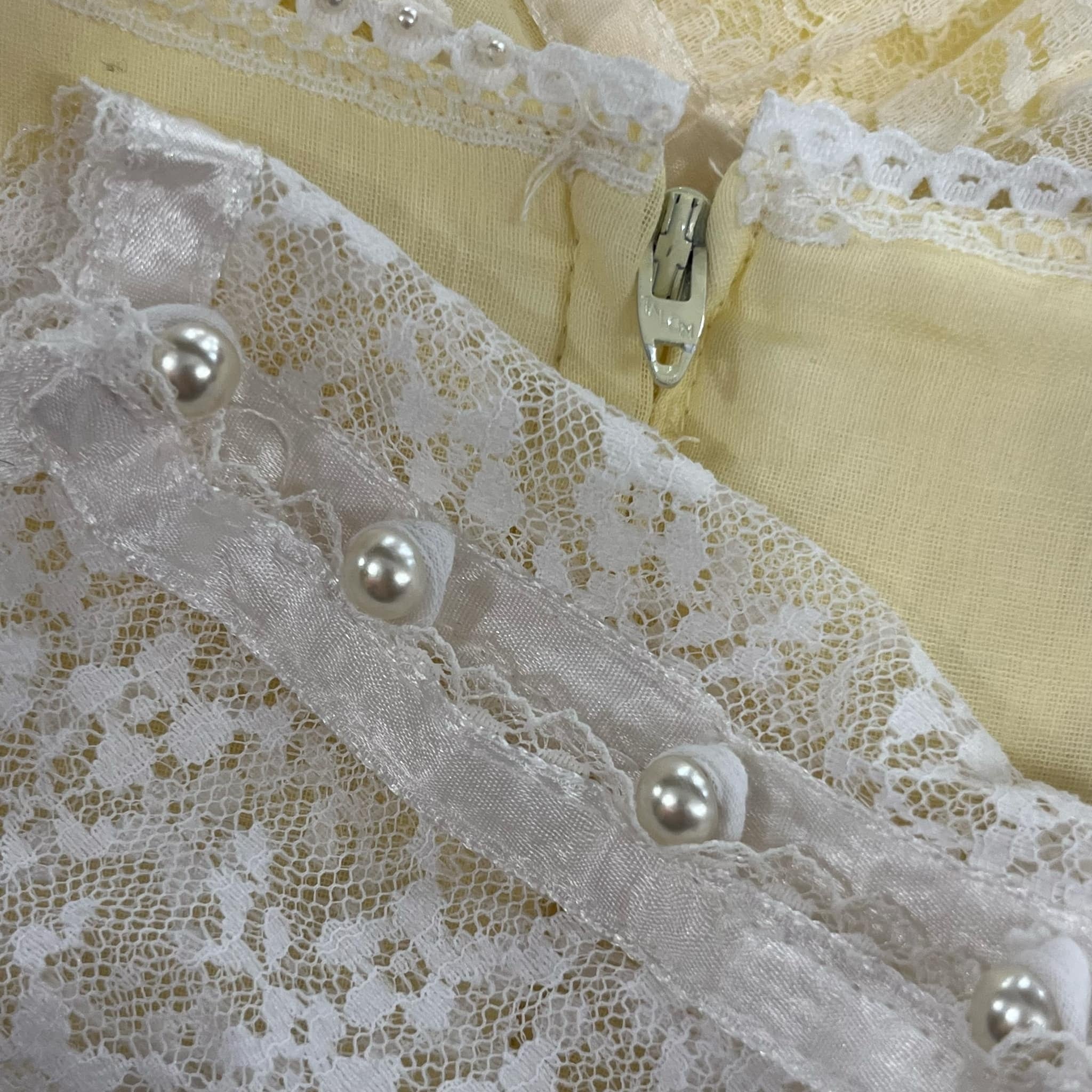 70s GUNNE SAX lightyellow lace sleeve dress [l-4725]