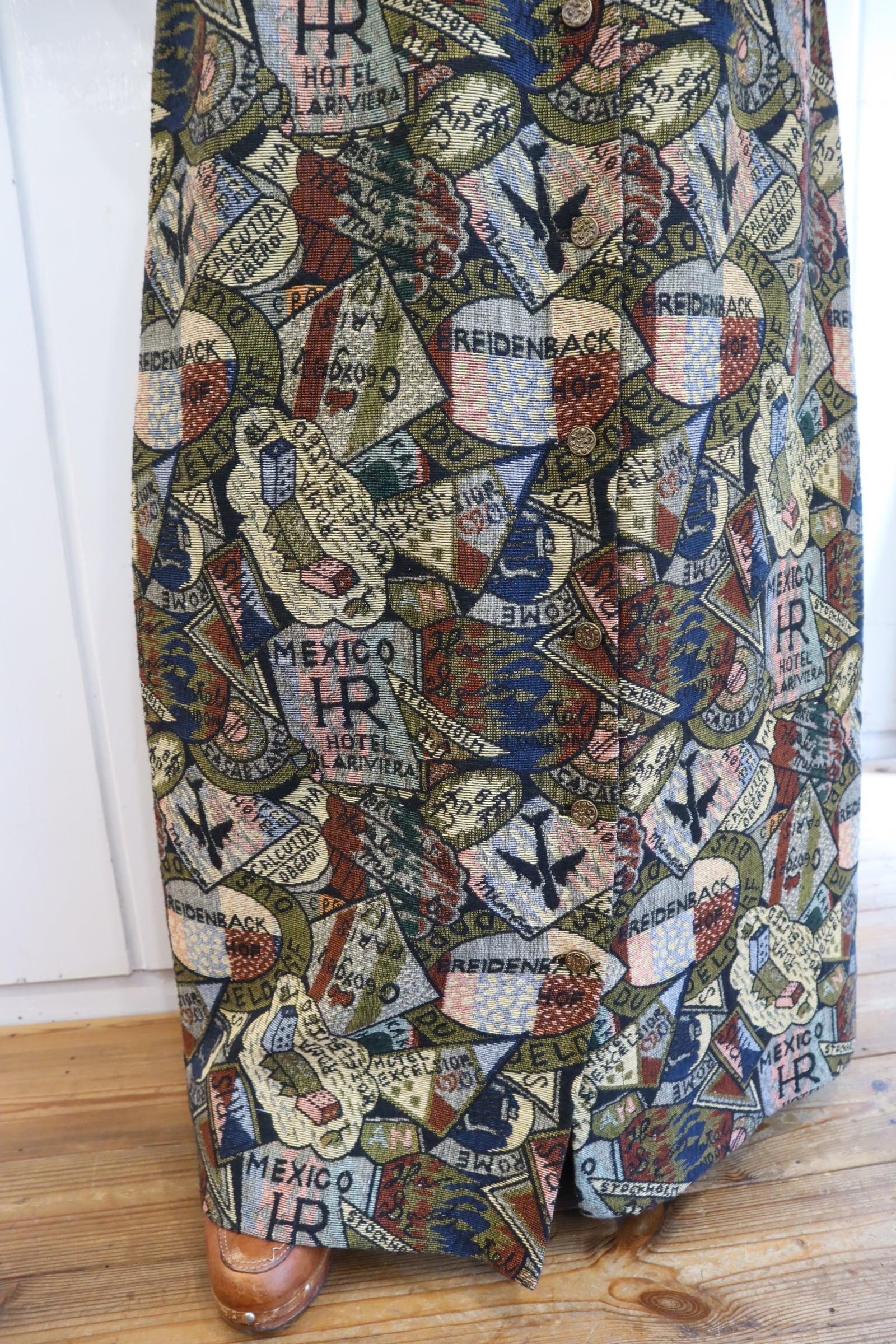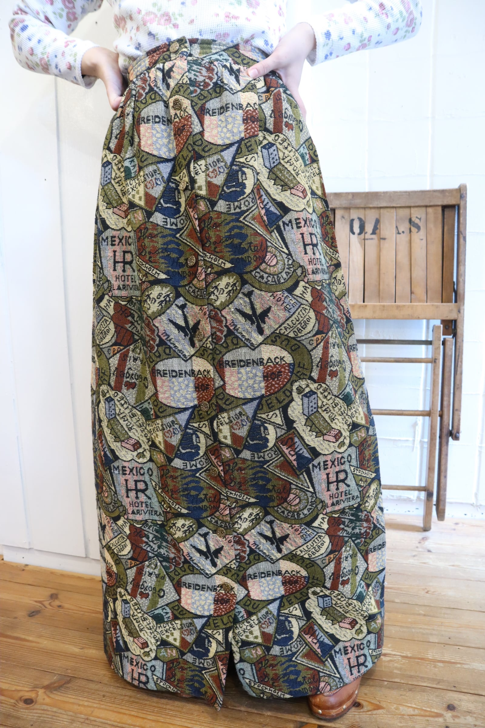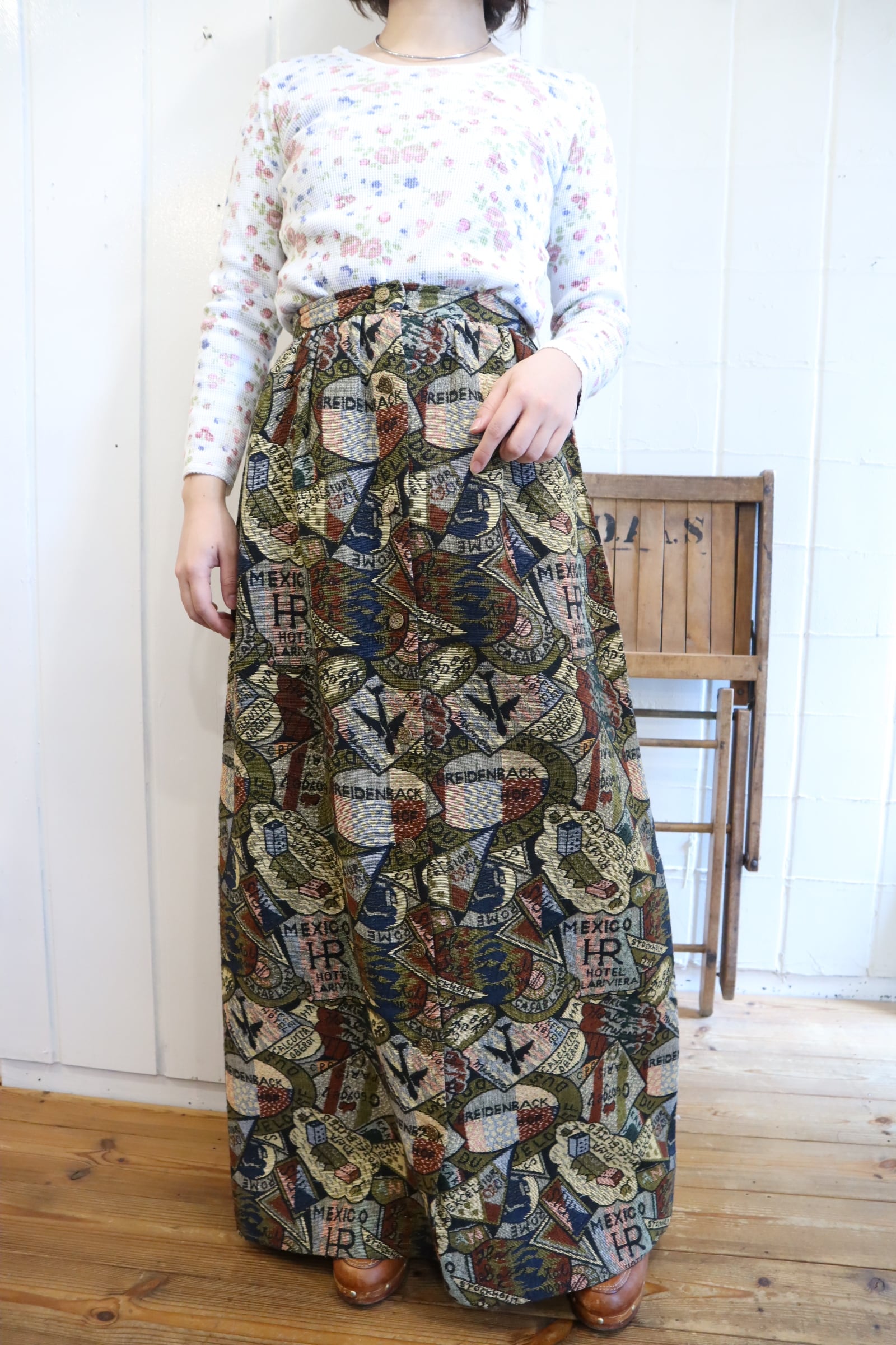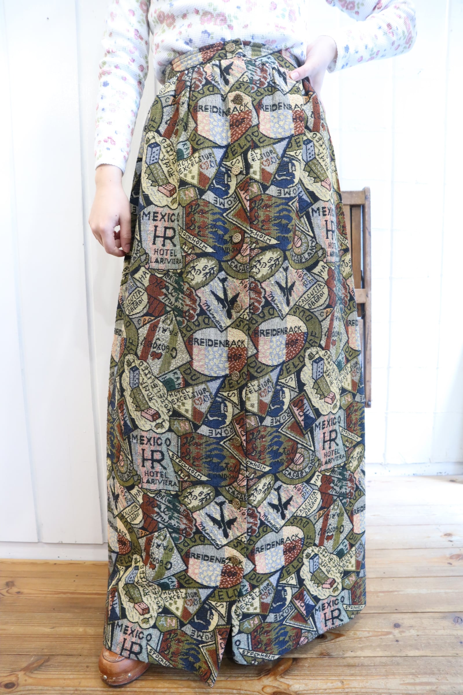 70s khaki×bordeaux×navy total pattern gobelin long skirt [l-4734]