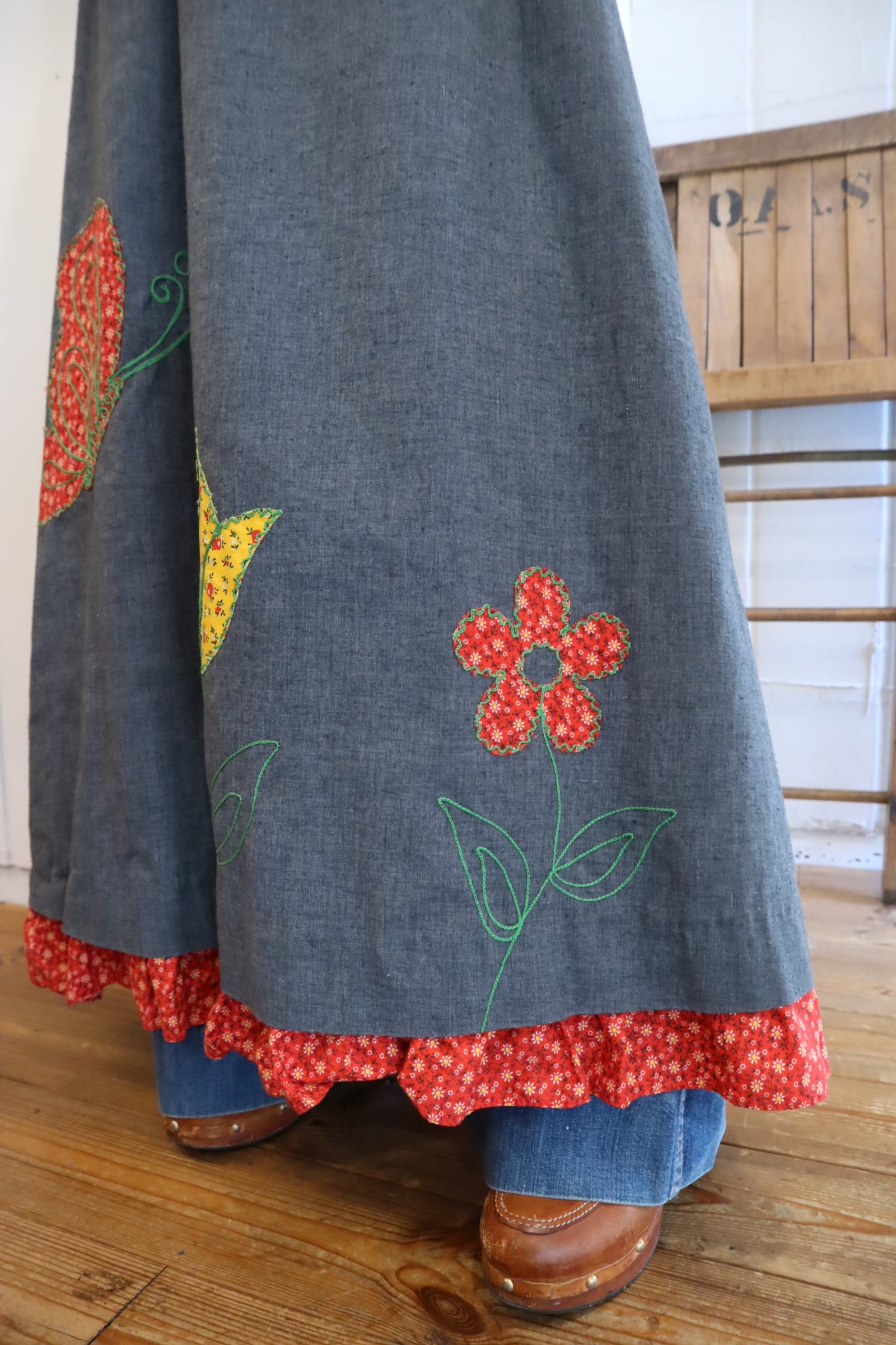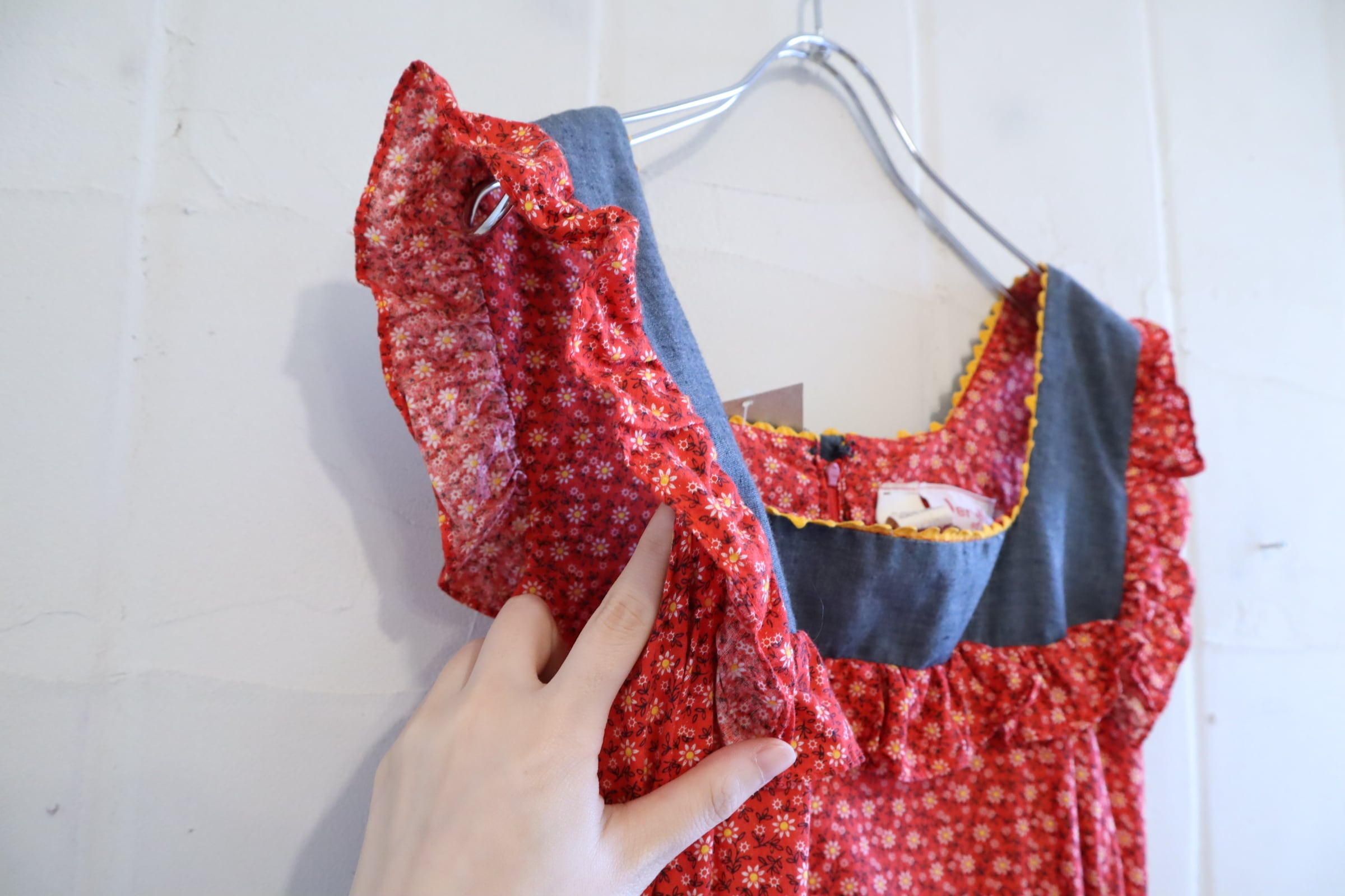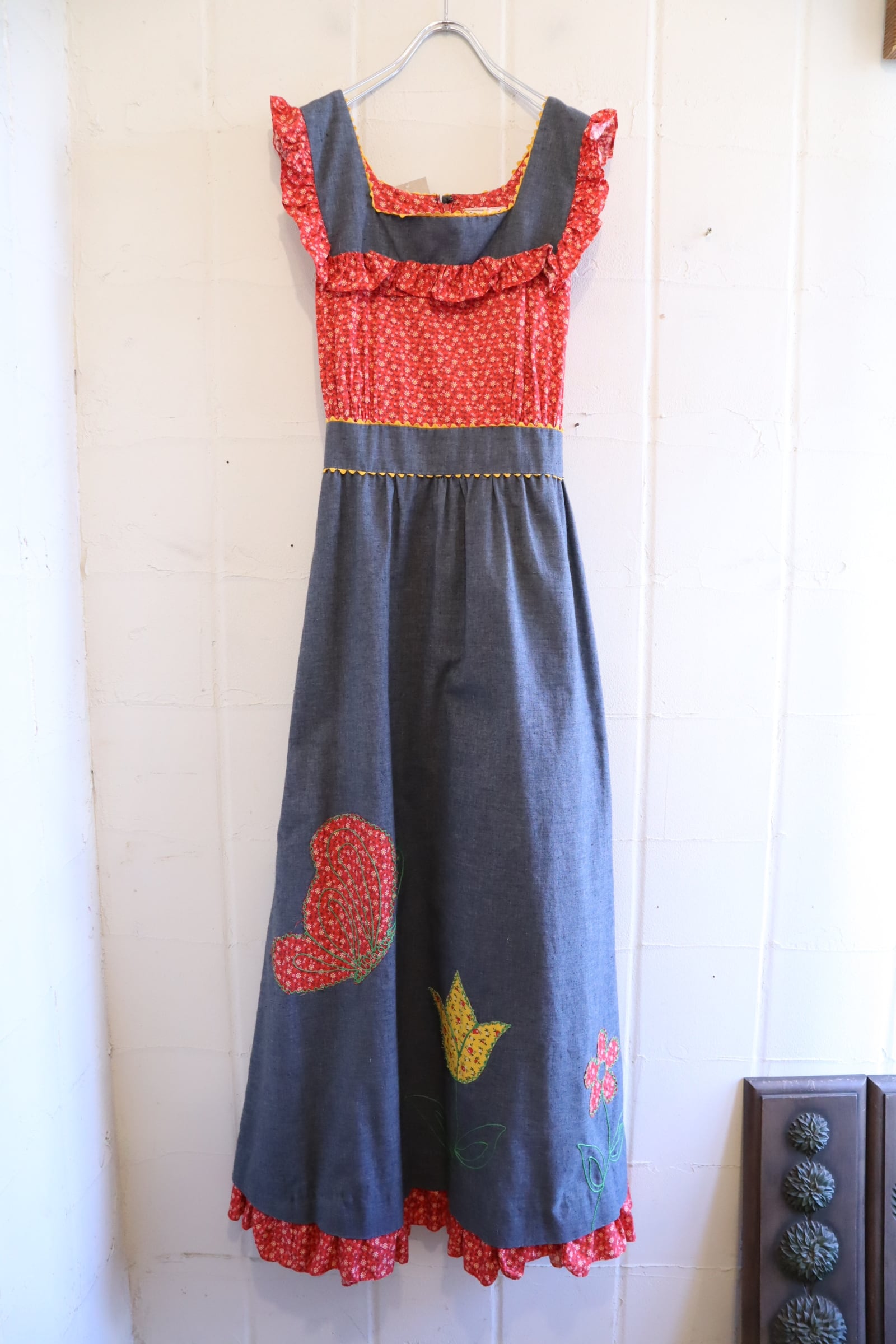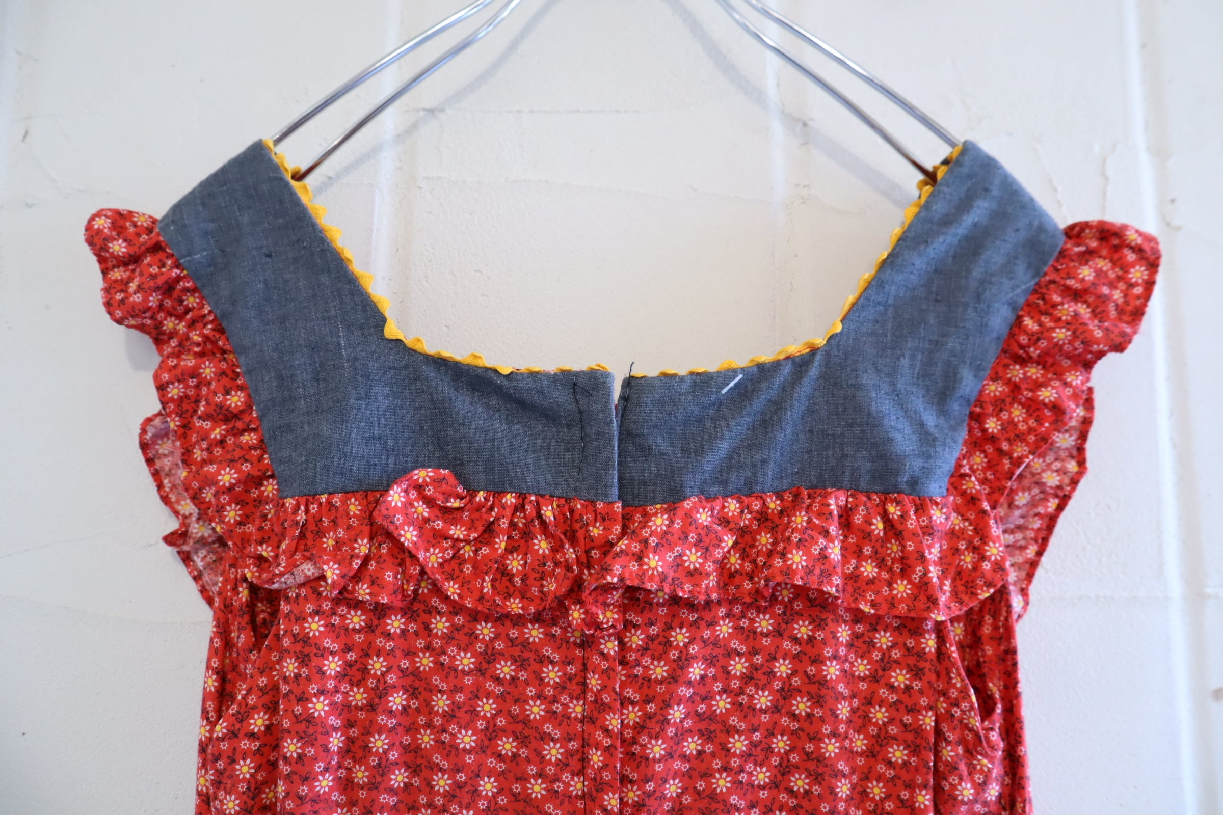 70年代らしいお花柄とデニム地の組み合わせが素敵なドレスです♡