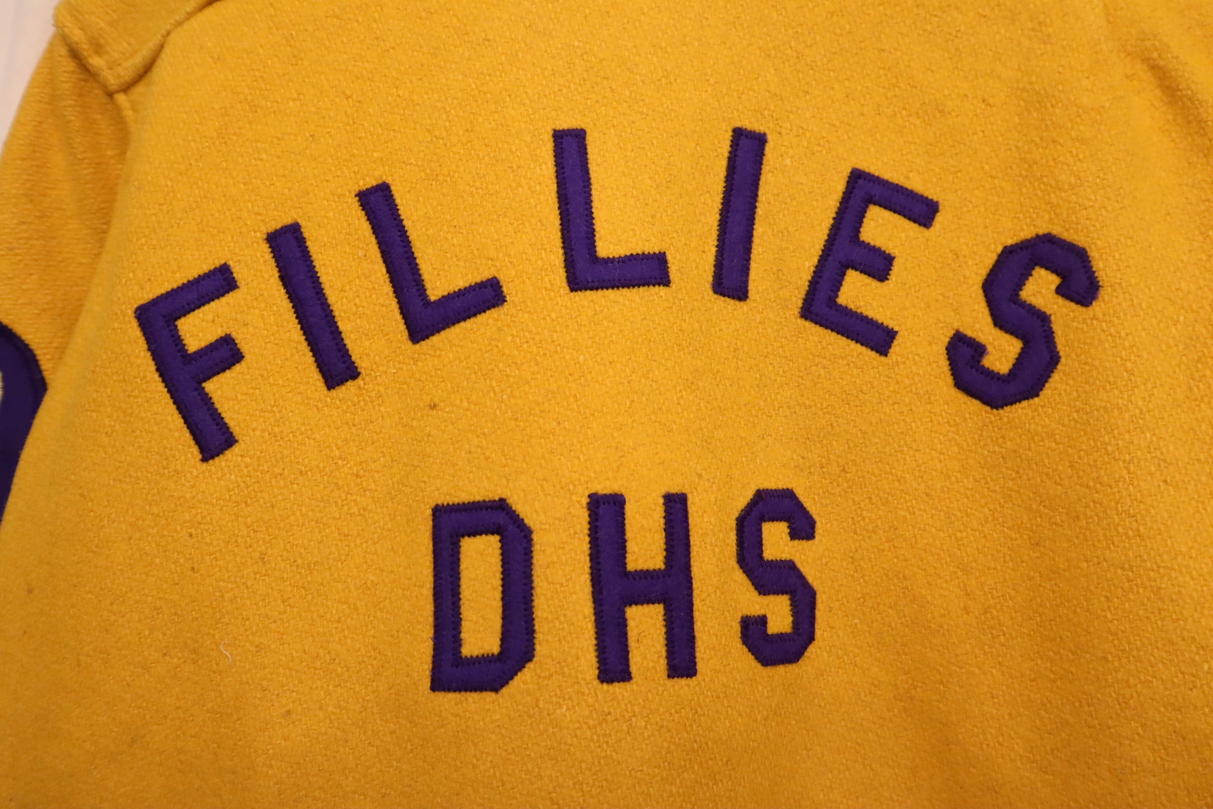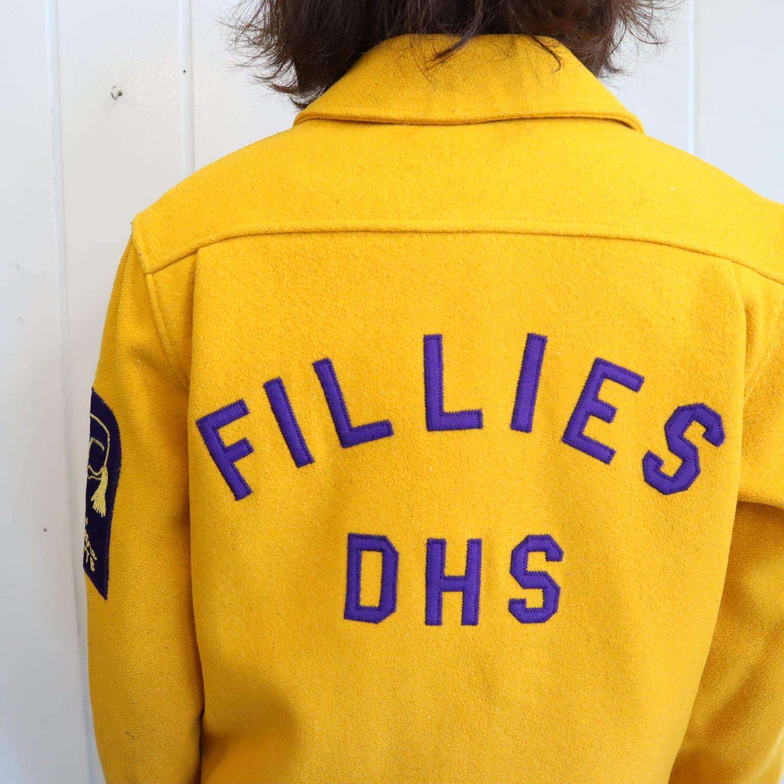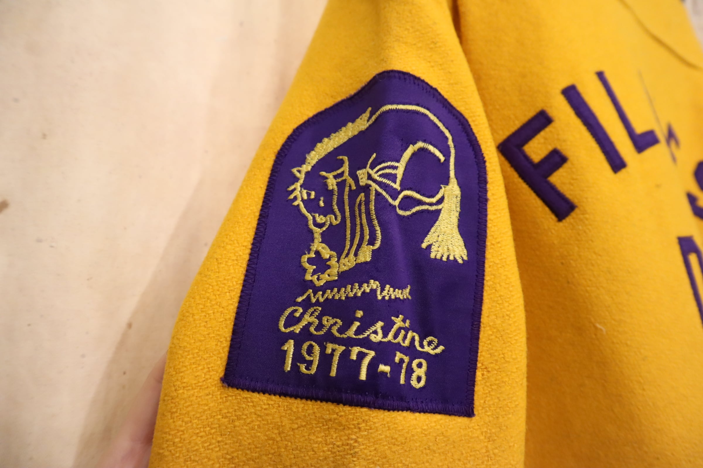 70s yellow×purple lettered wappen stadium jumper [l-4752]