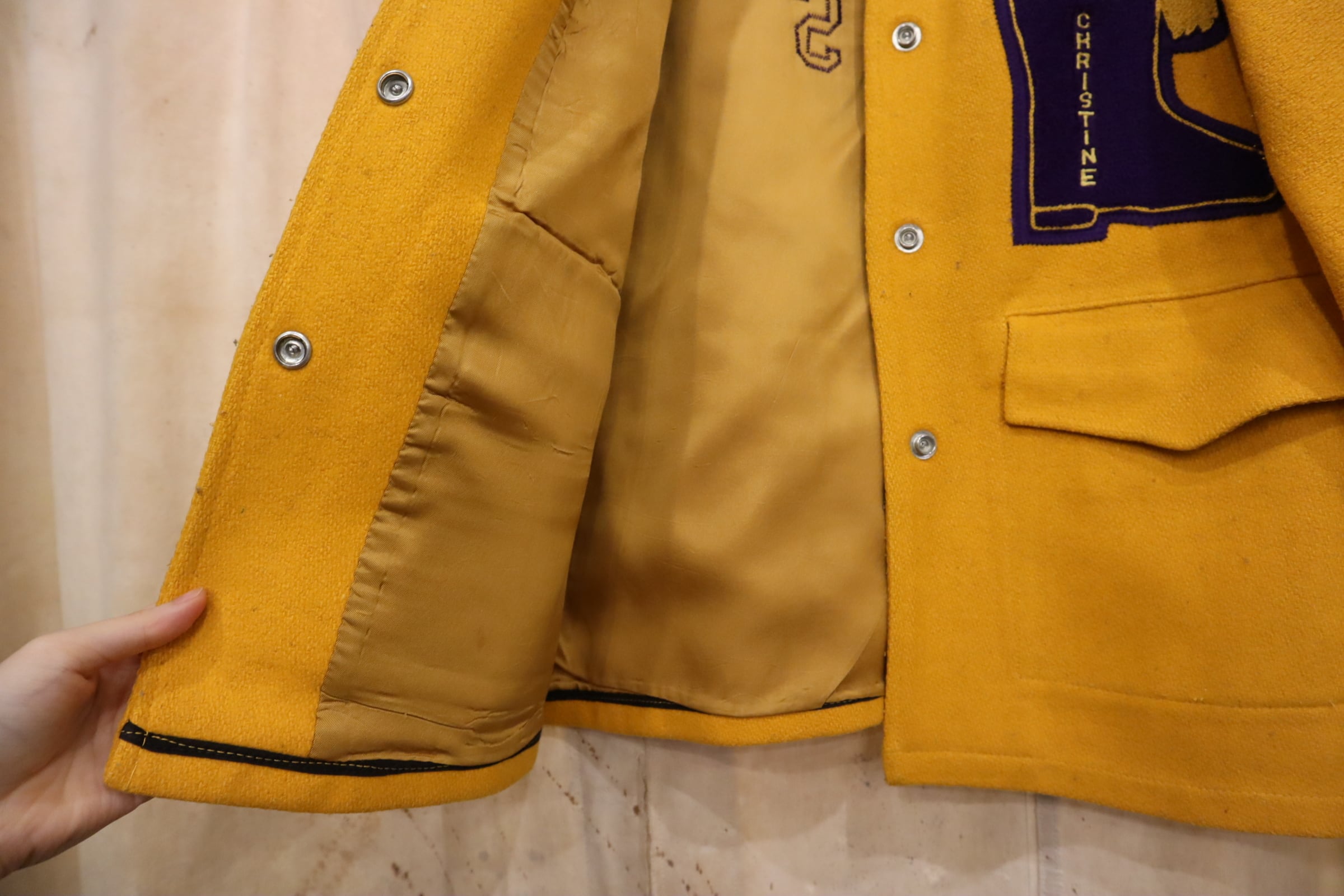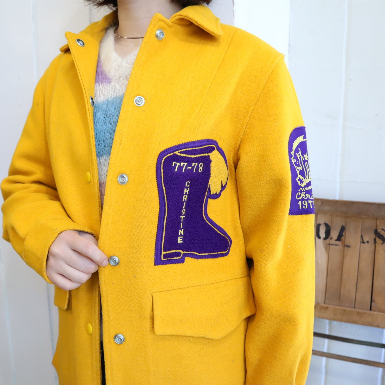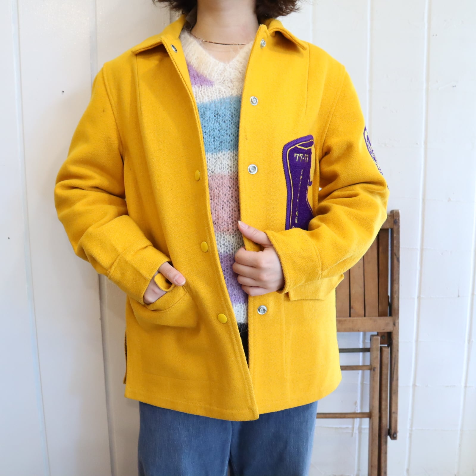 パキっとした配色が可愛い70sスタジャンです。