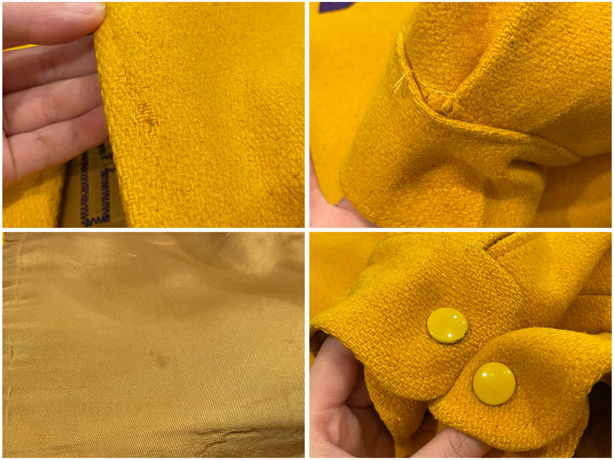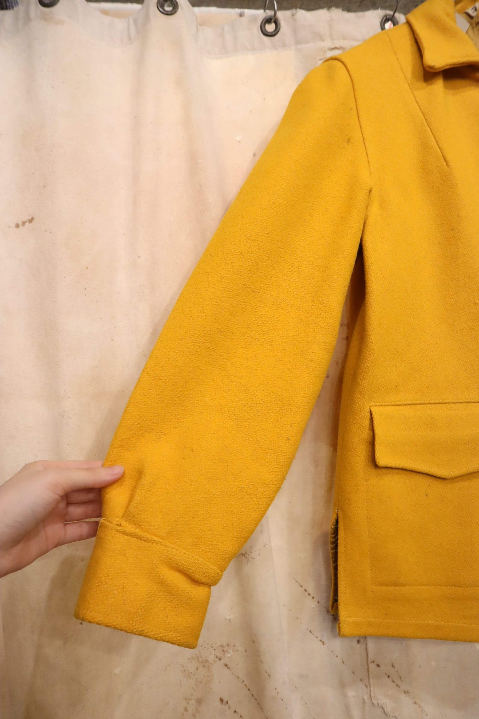 いくつか汚れやシミ汚れ、ボタン部分の傷や色の剥がれ、糸のホツレがございますが、古着の味として着て頂けるかと思います。