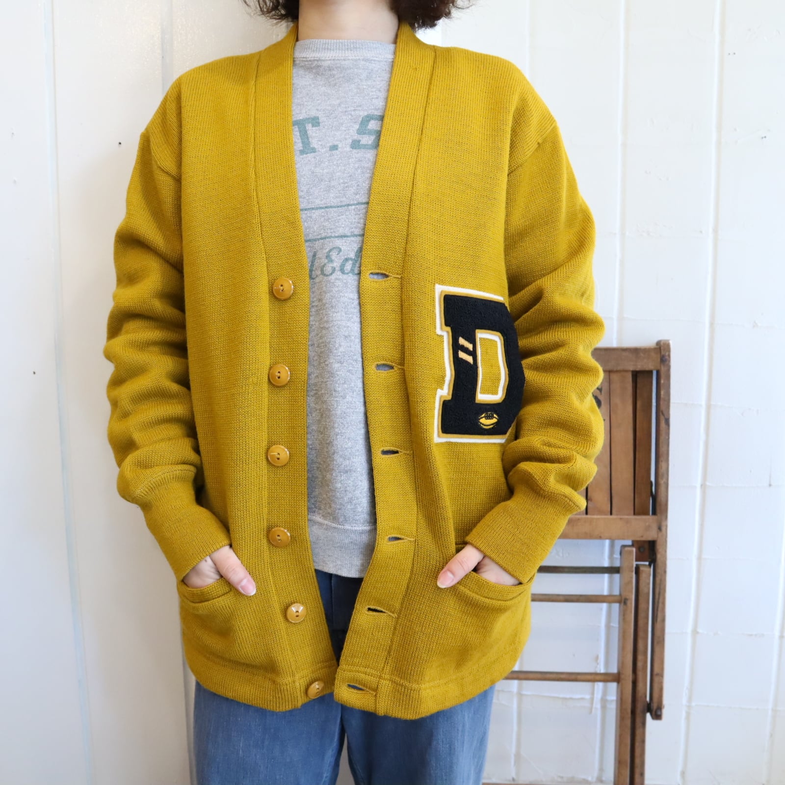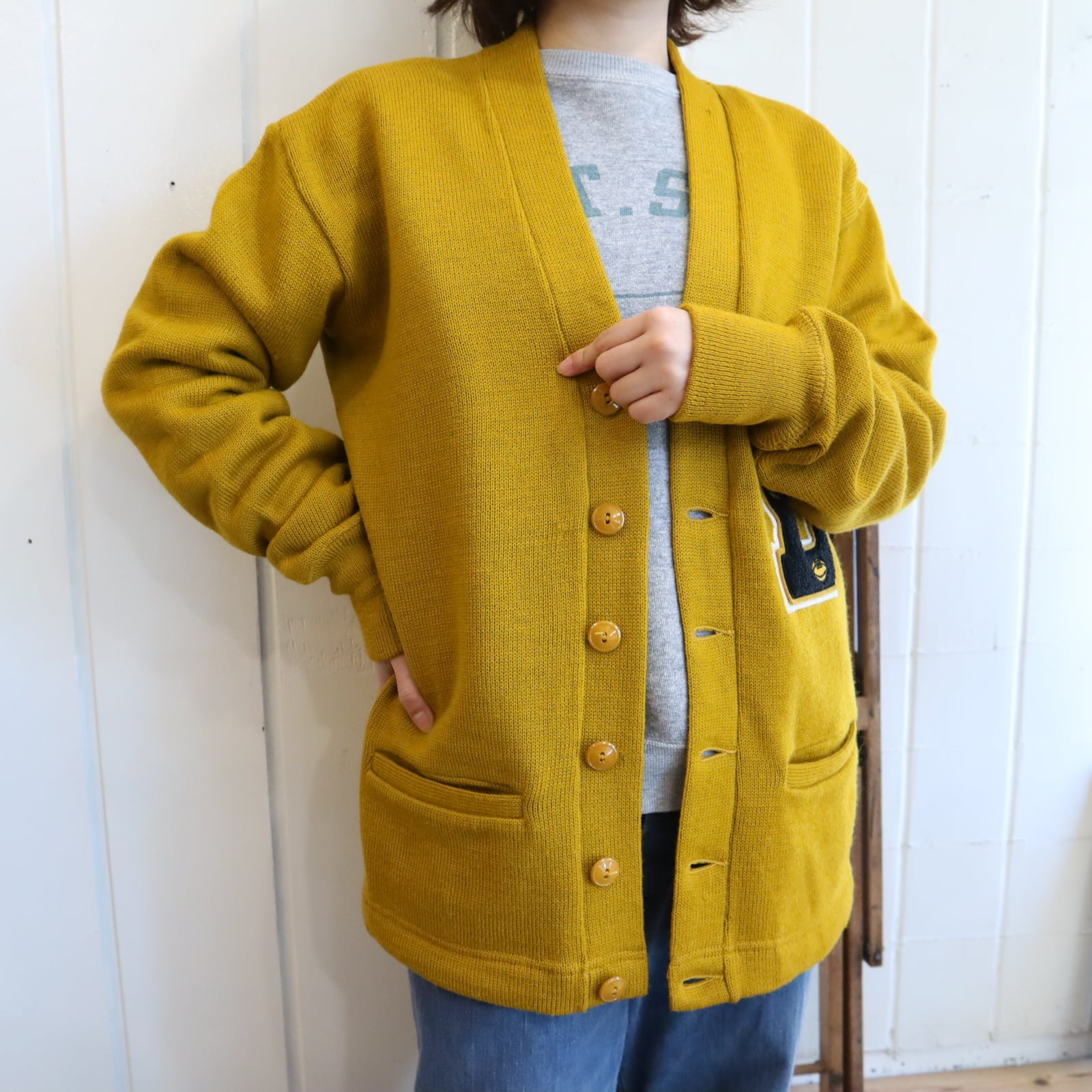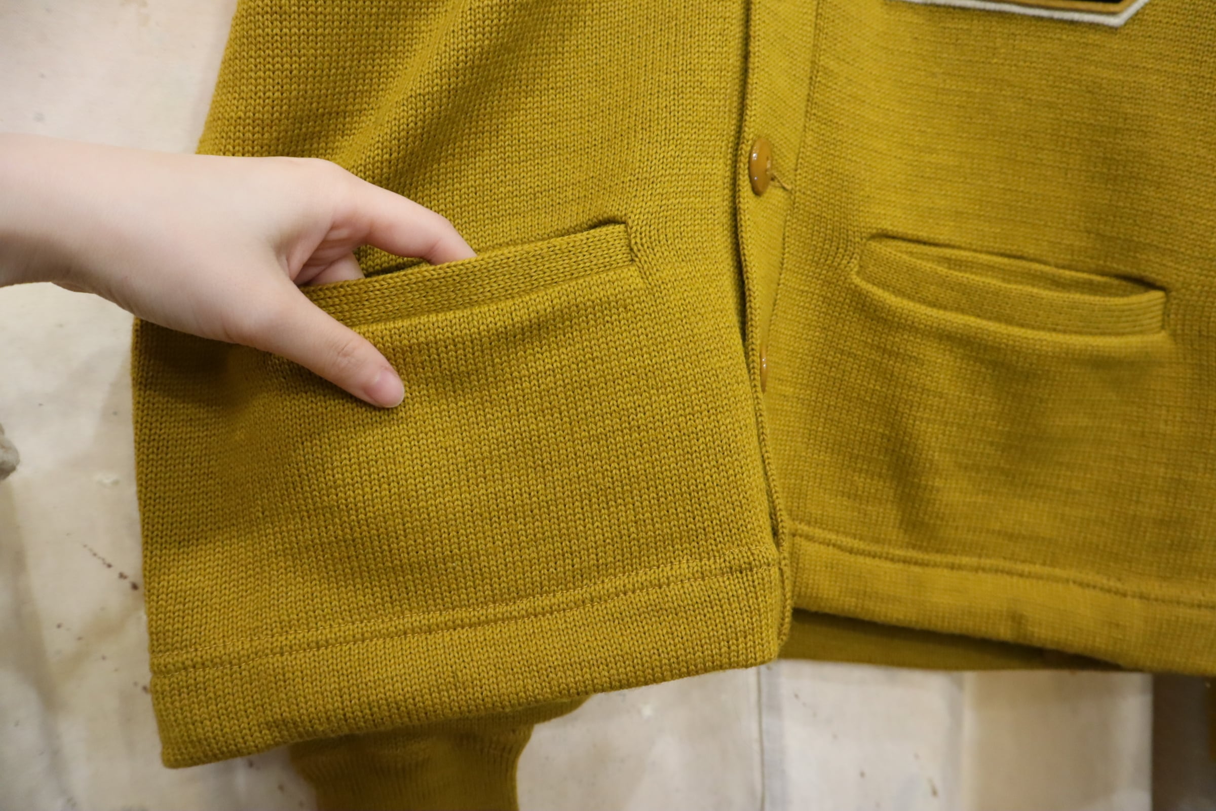 50s yellow×black lettered wappen knit cardigan [l-4753]