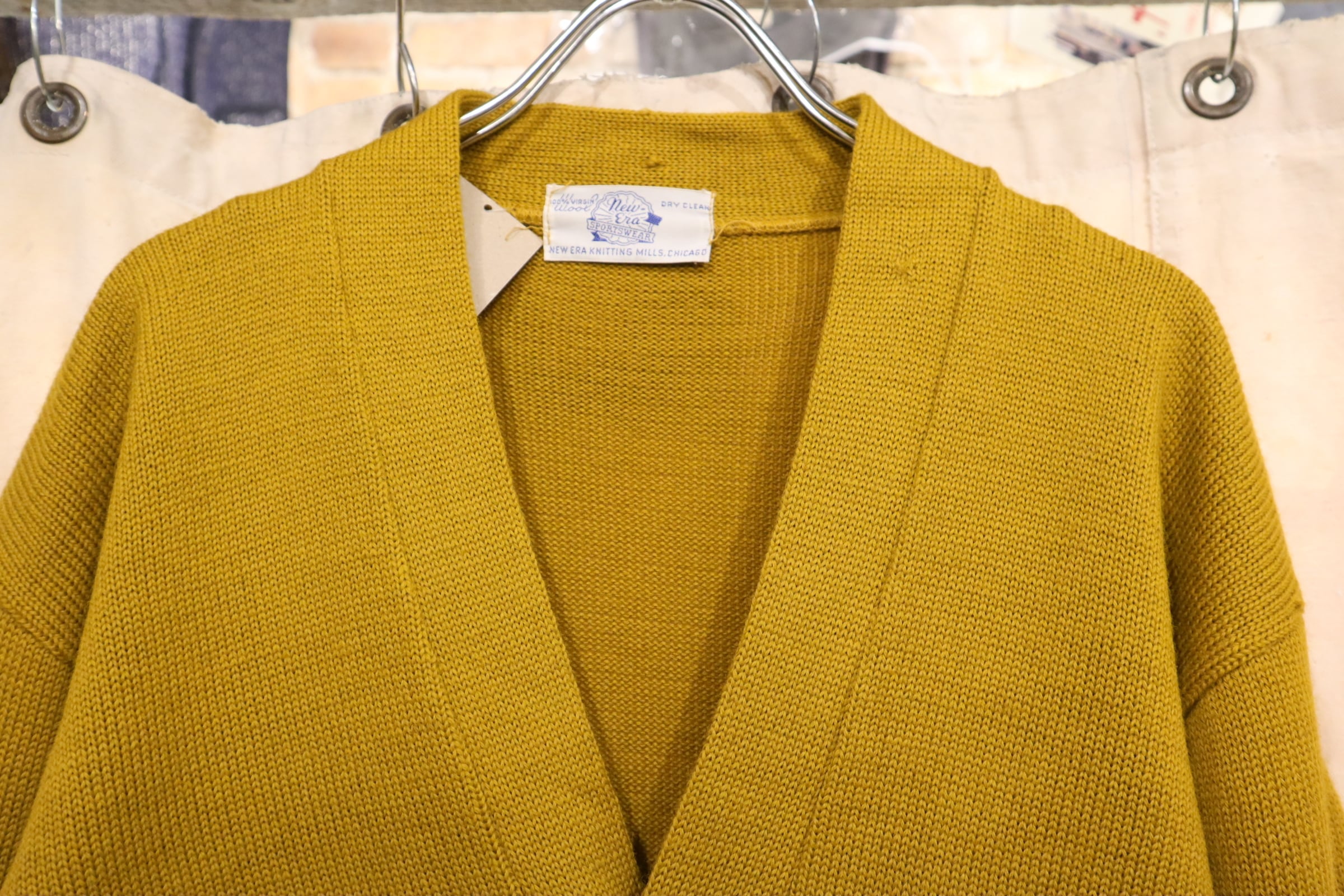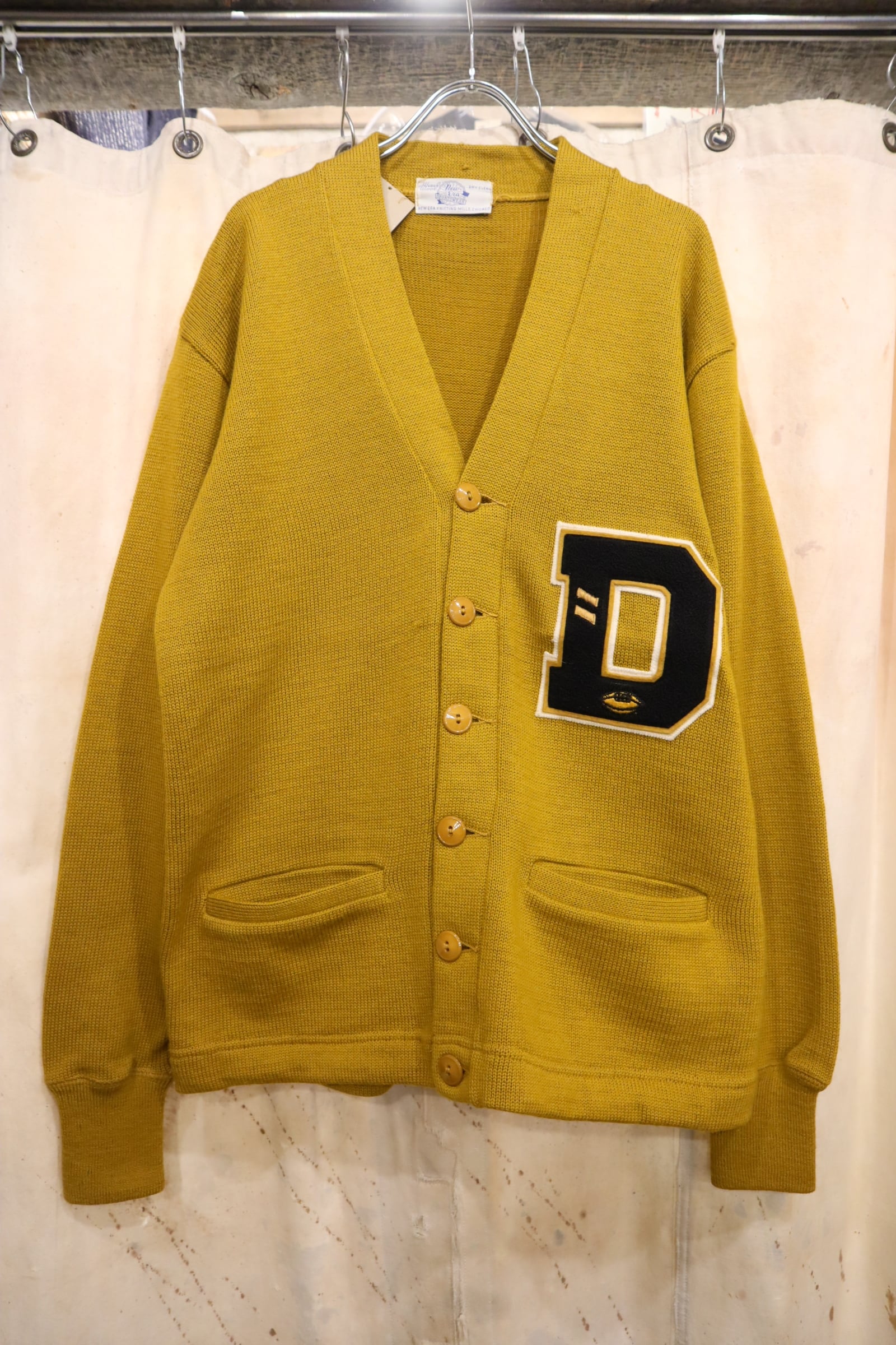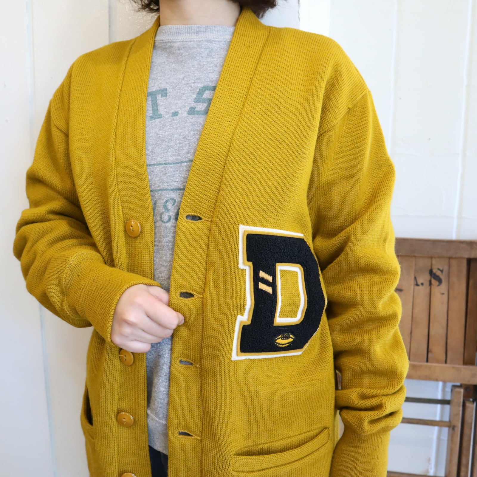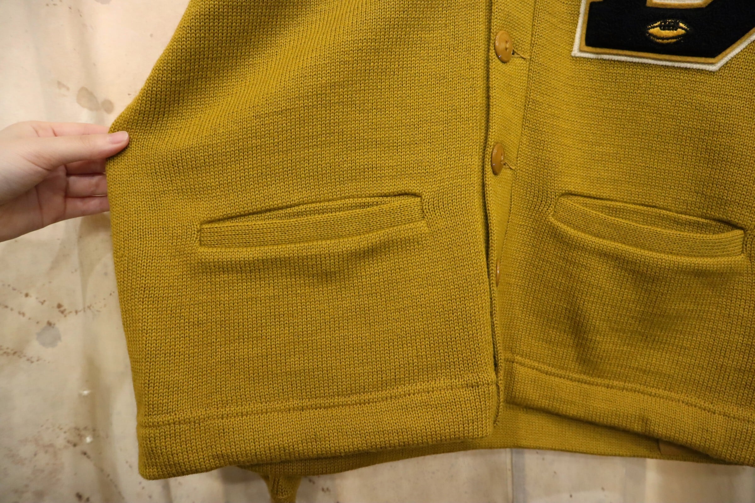 50s yellow×black lettered wappen knit cardigan [l-4753]