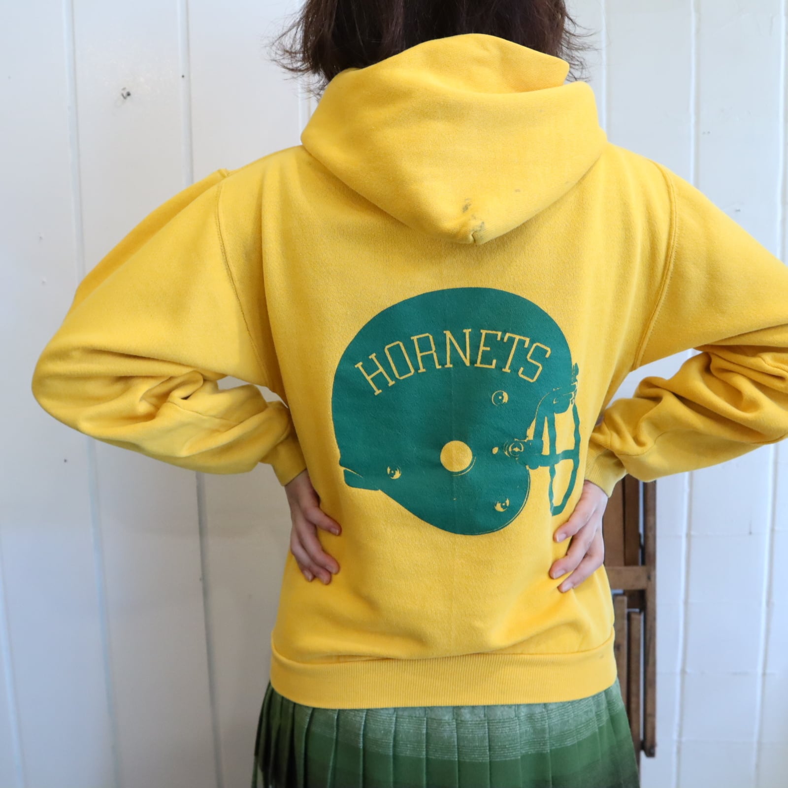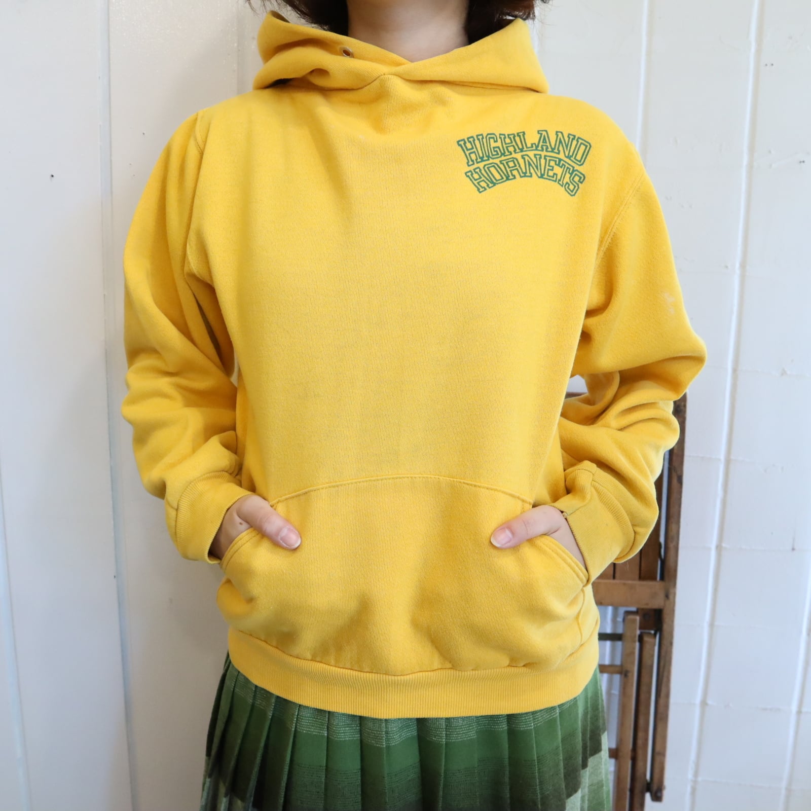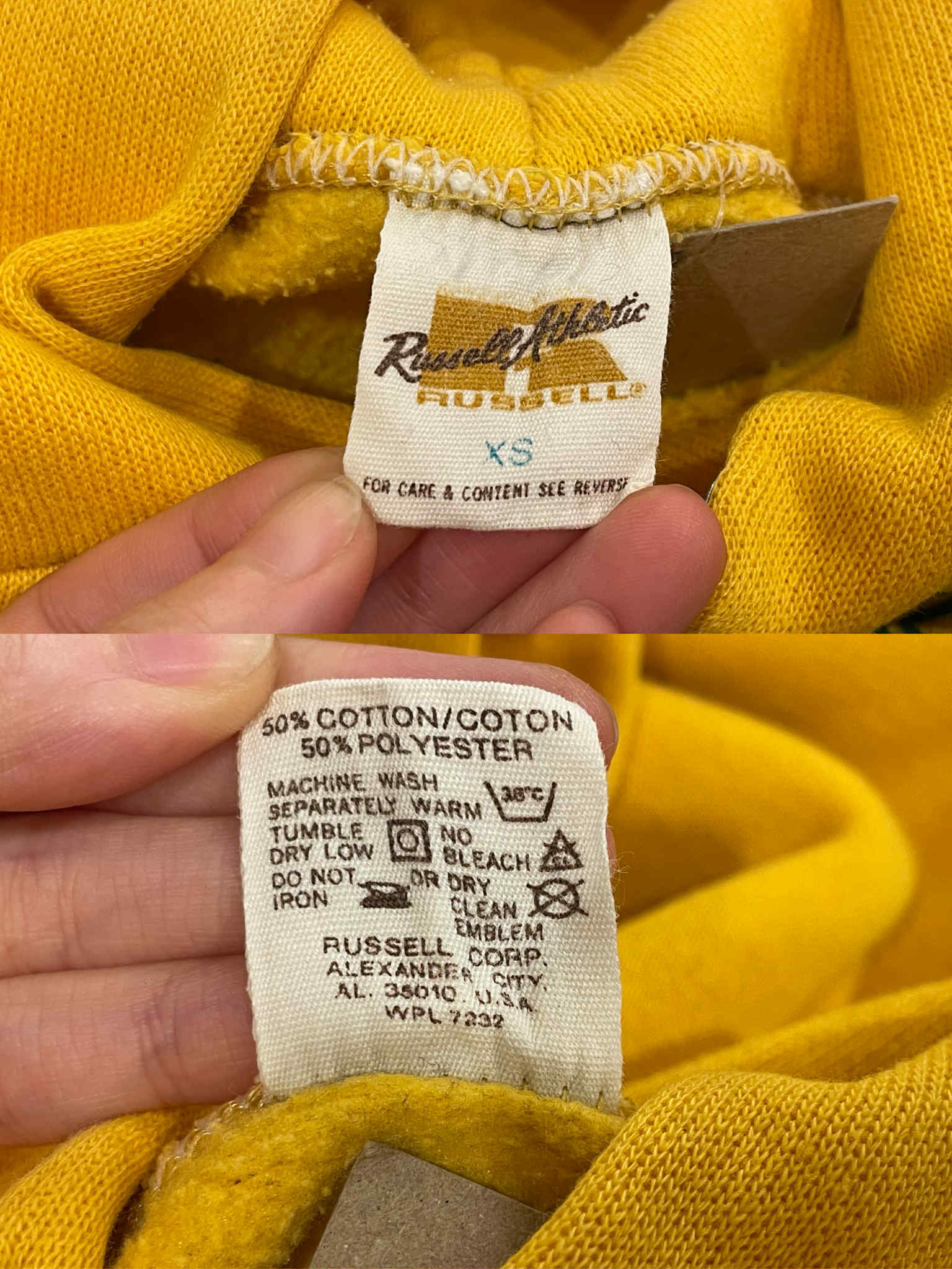 70s Russel athletic yellow×green rubber print hoodie sweat [l-4754]