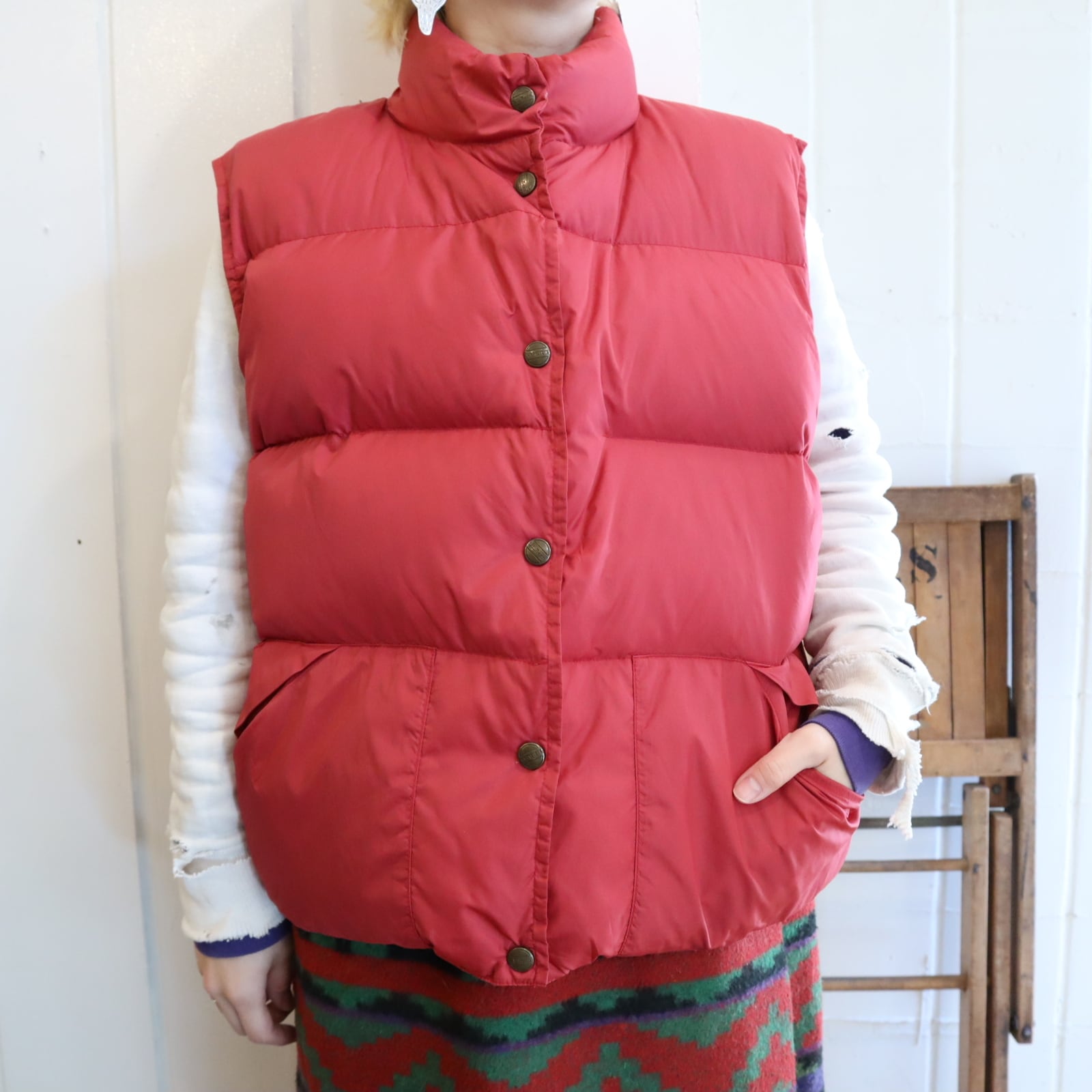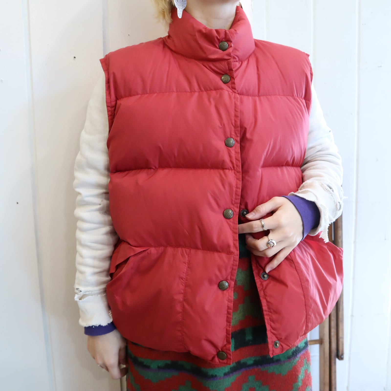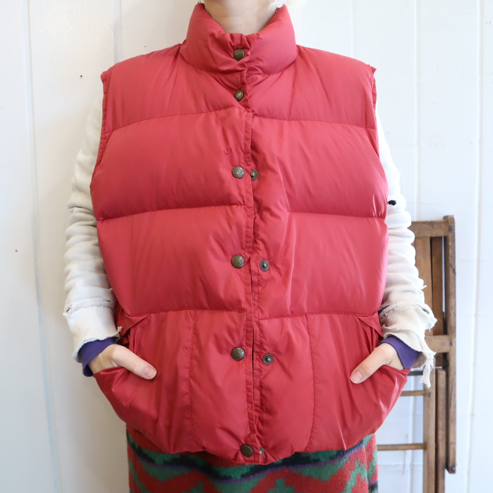 L.L.Bean pinkred down vest [l-4755]
