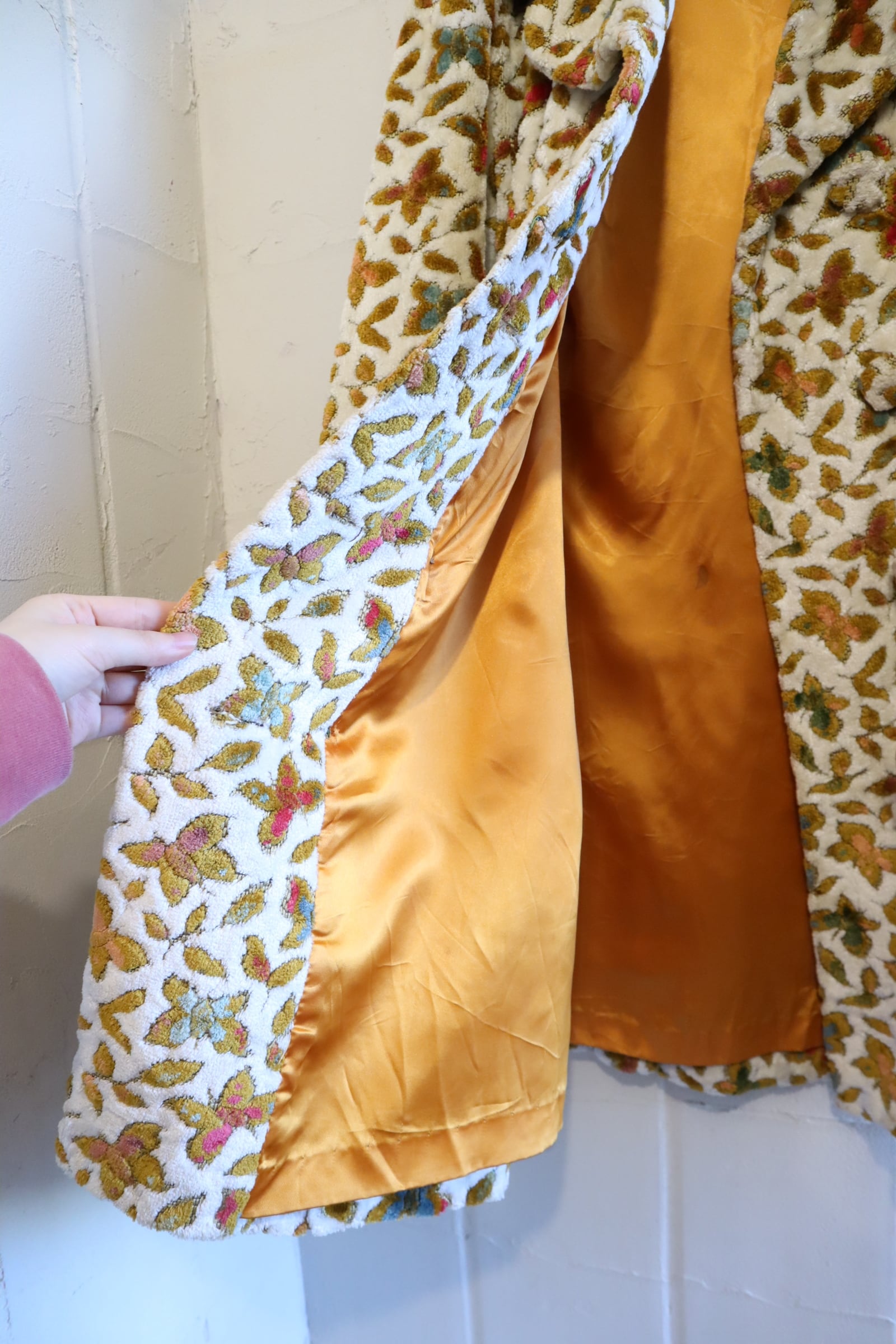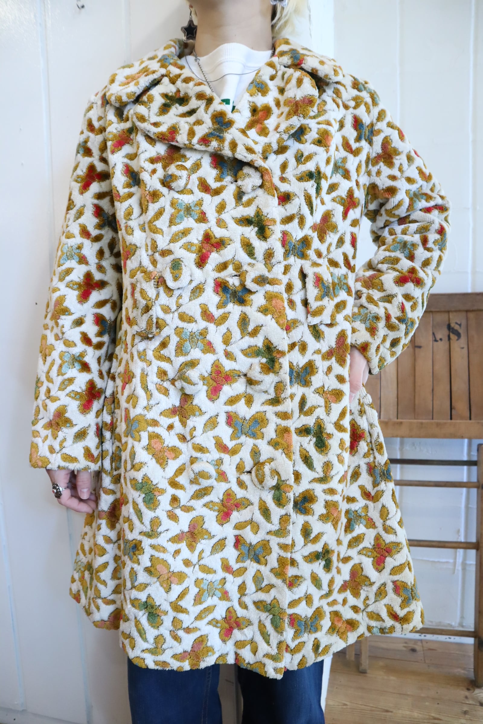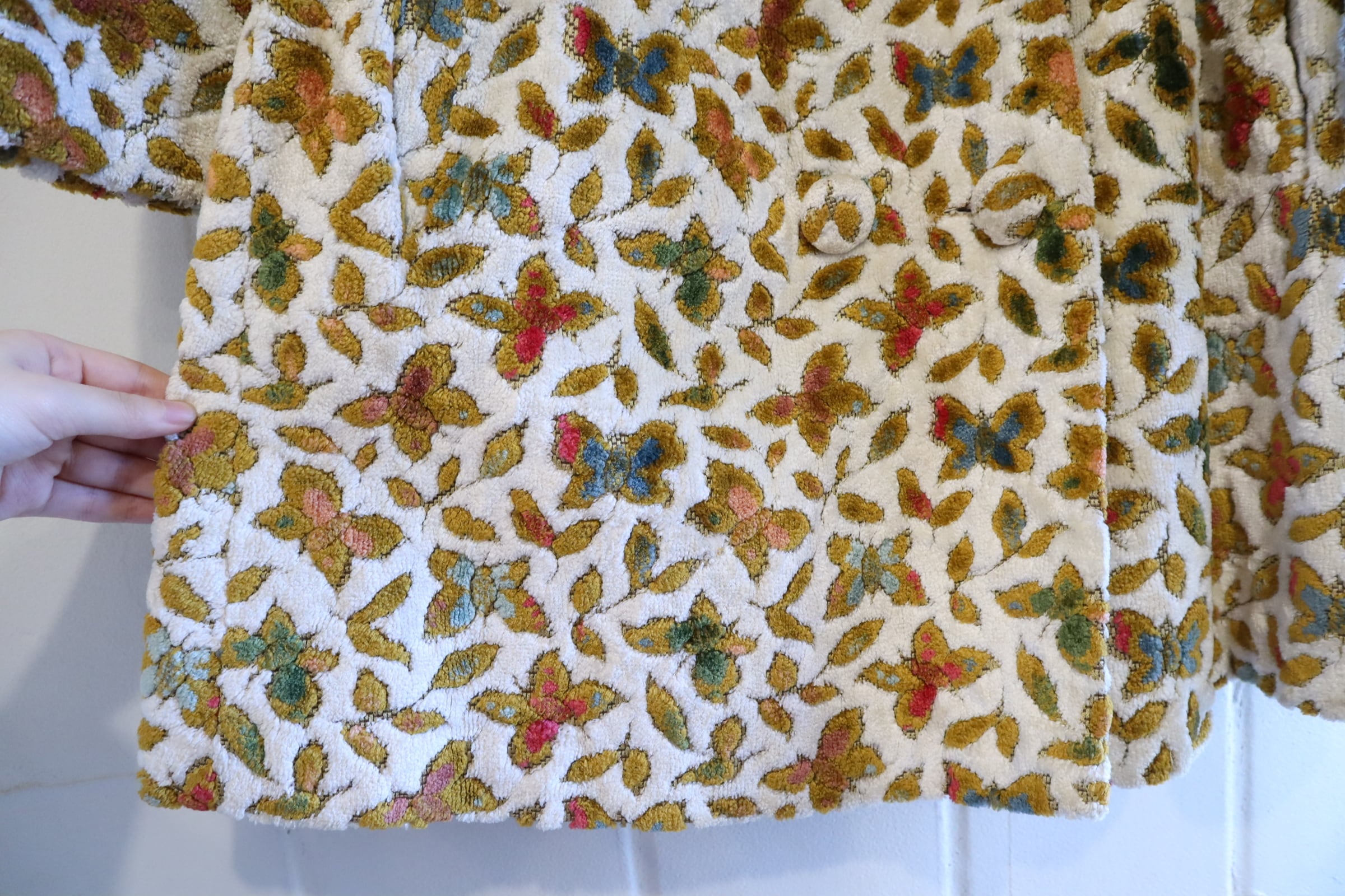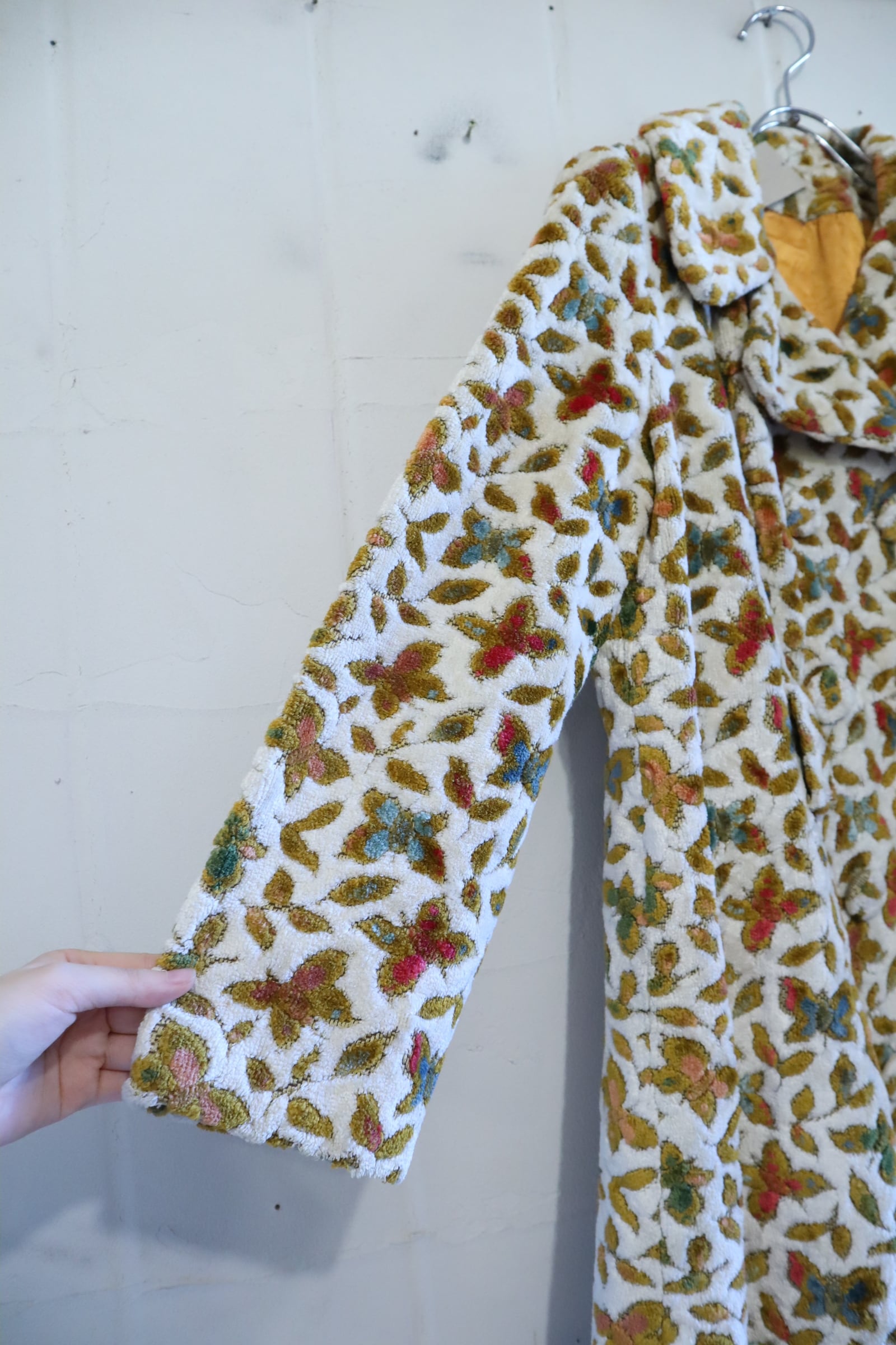 蝶々とリーフの柄がとっても素敵なビンテージゴブランコート。