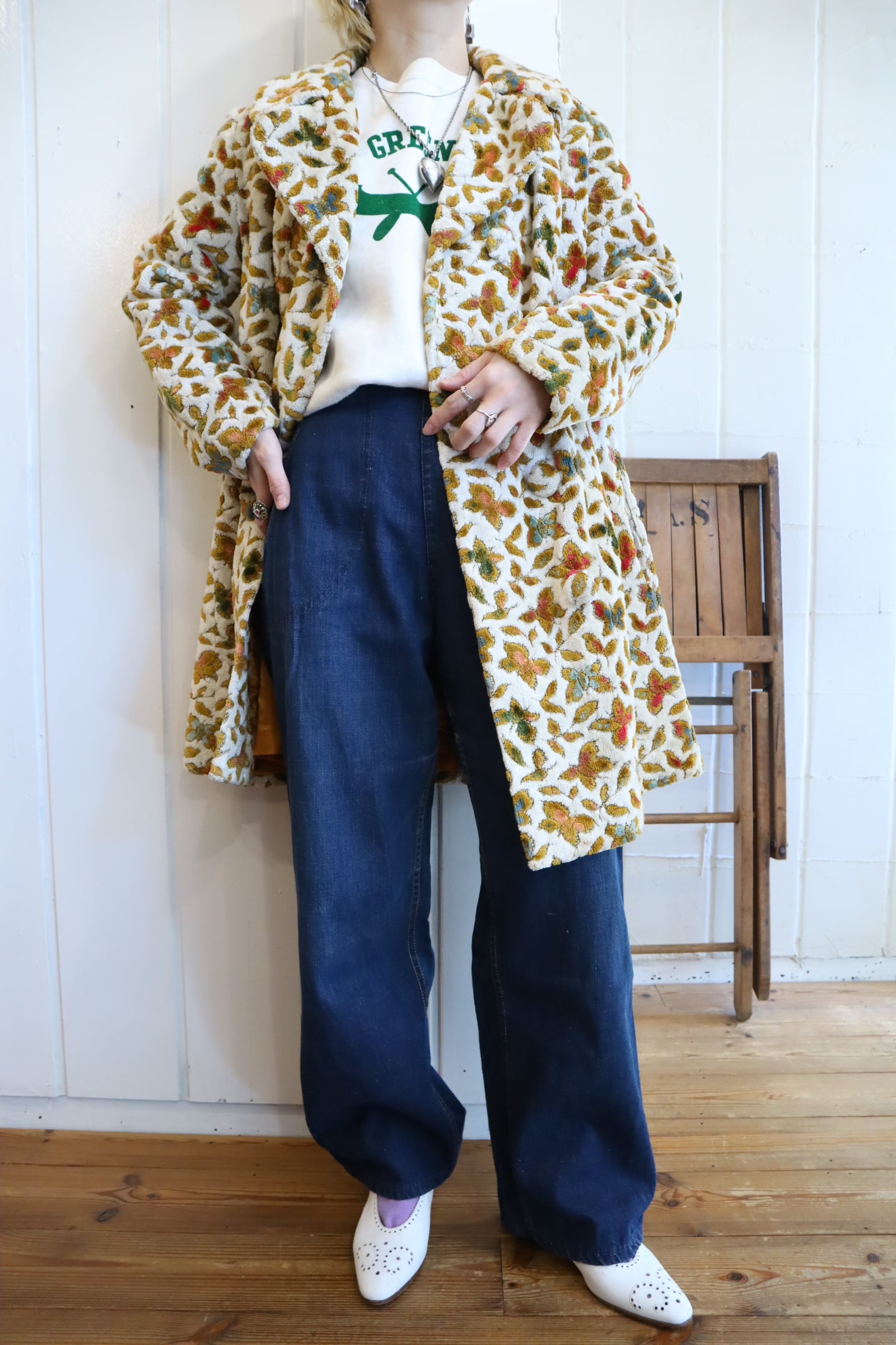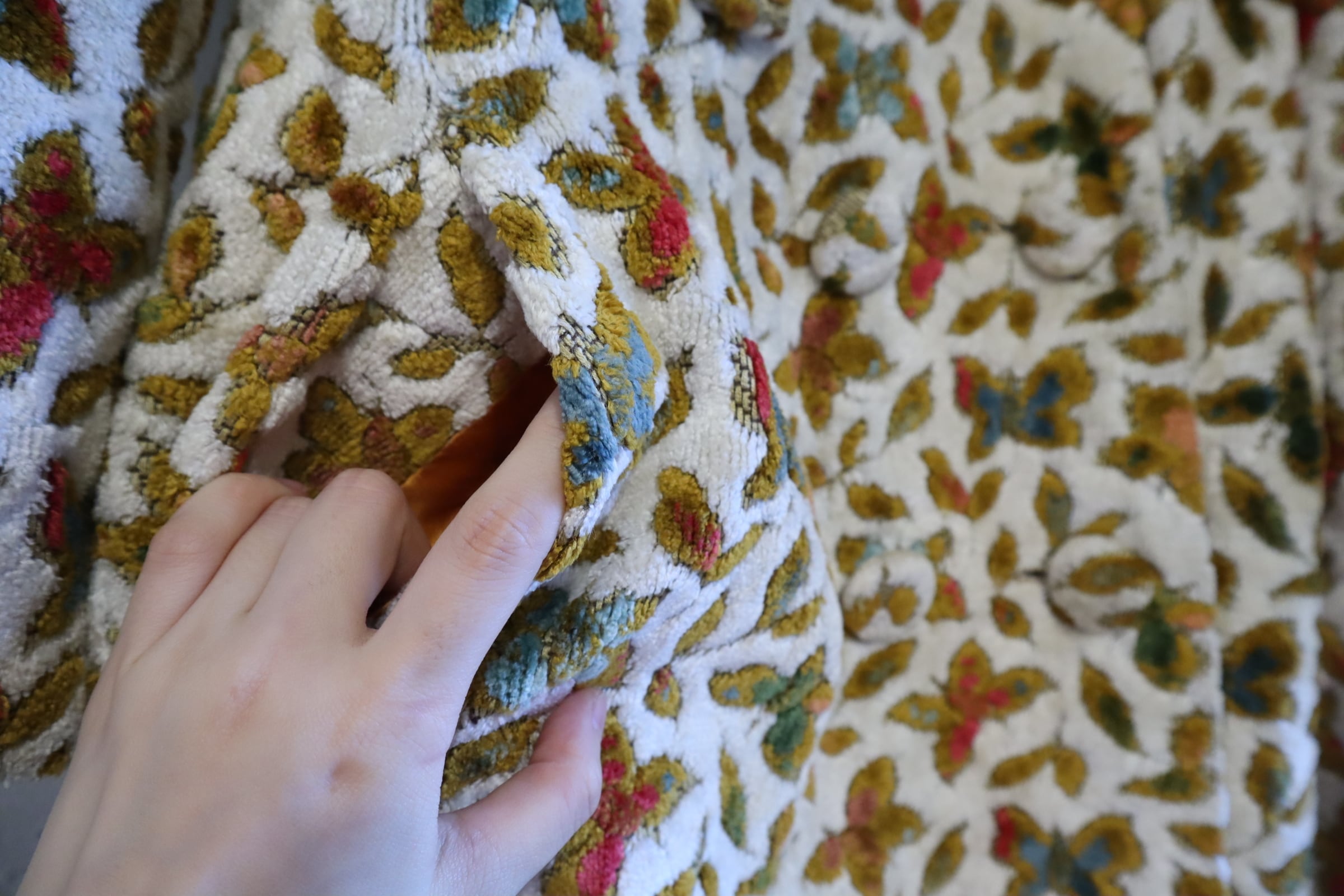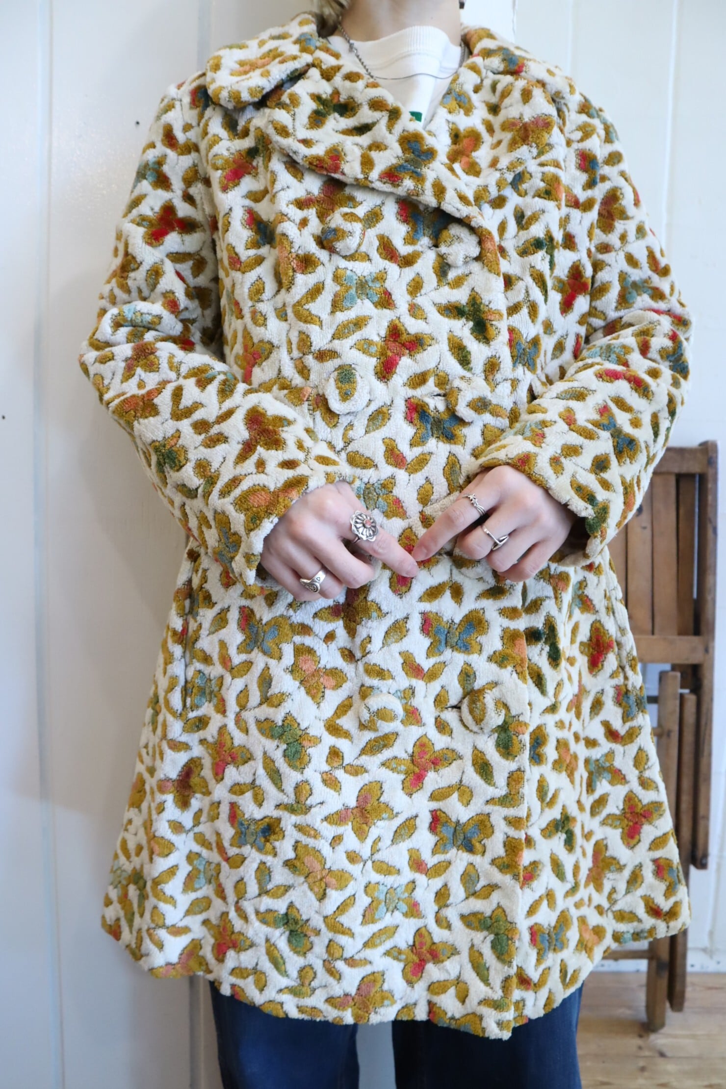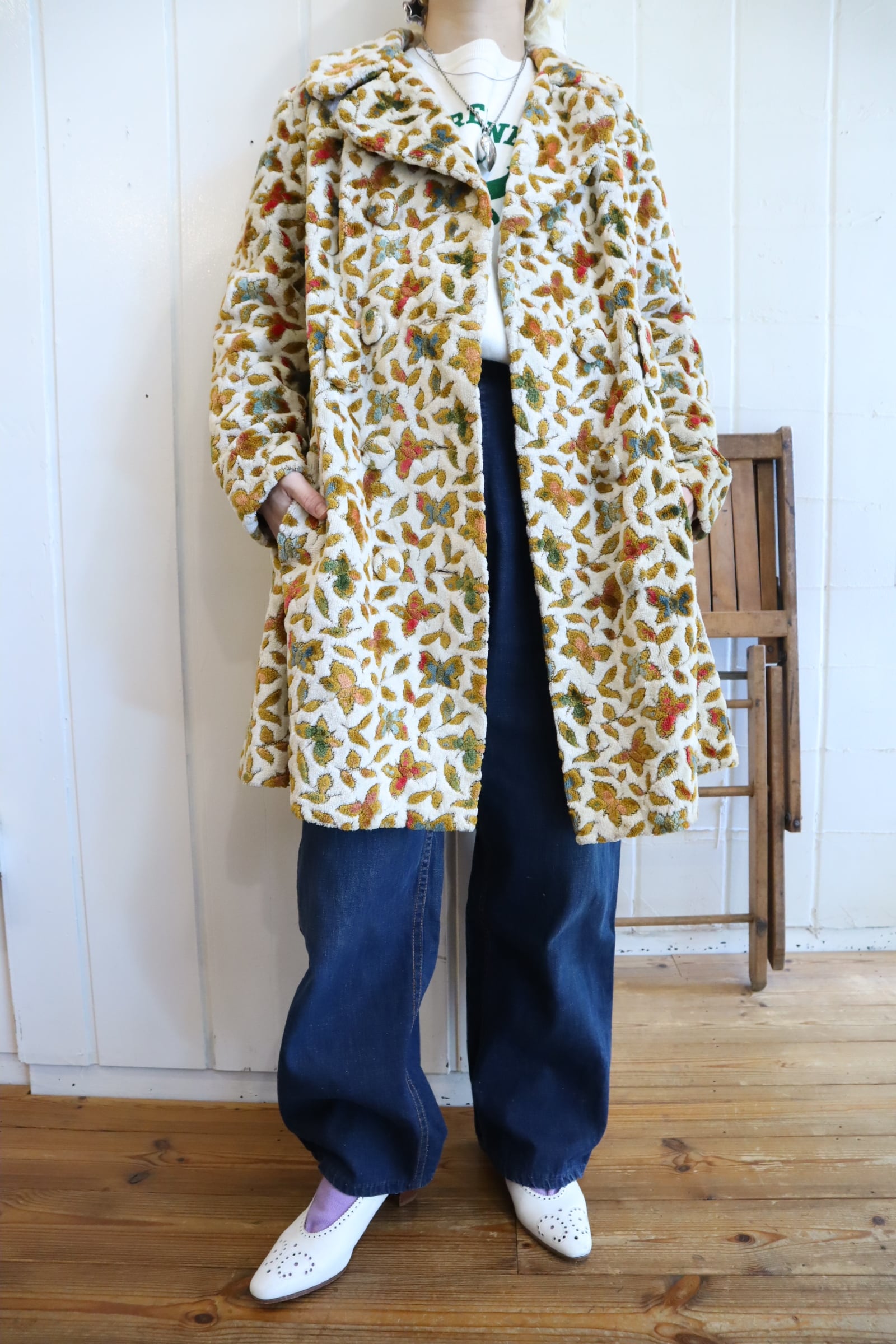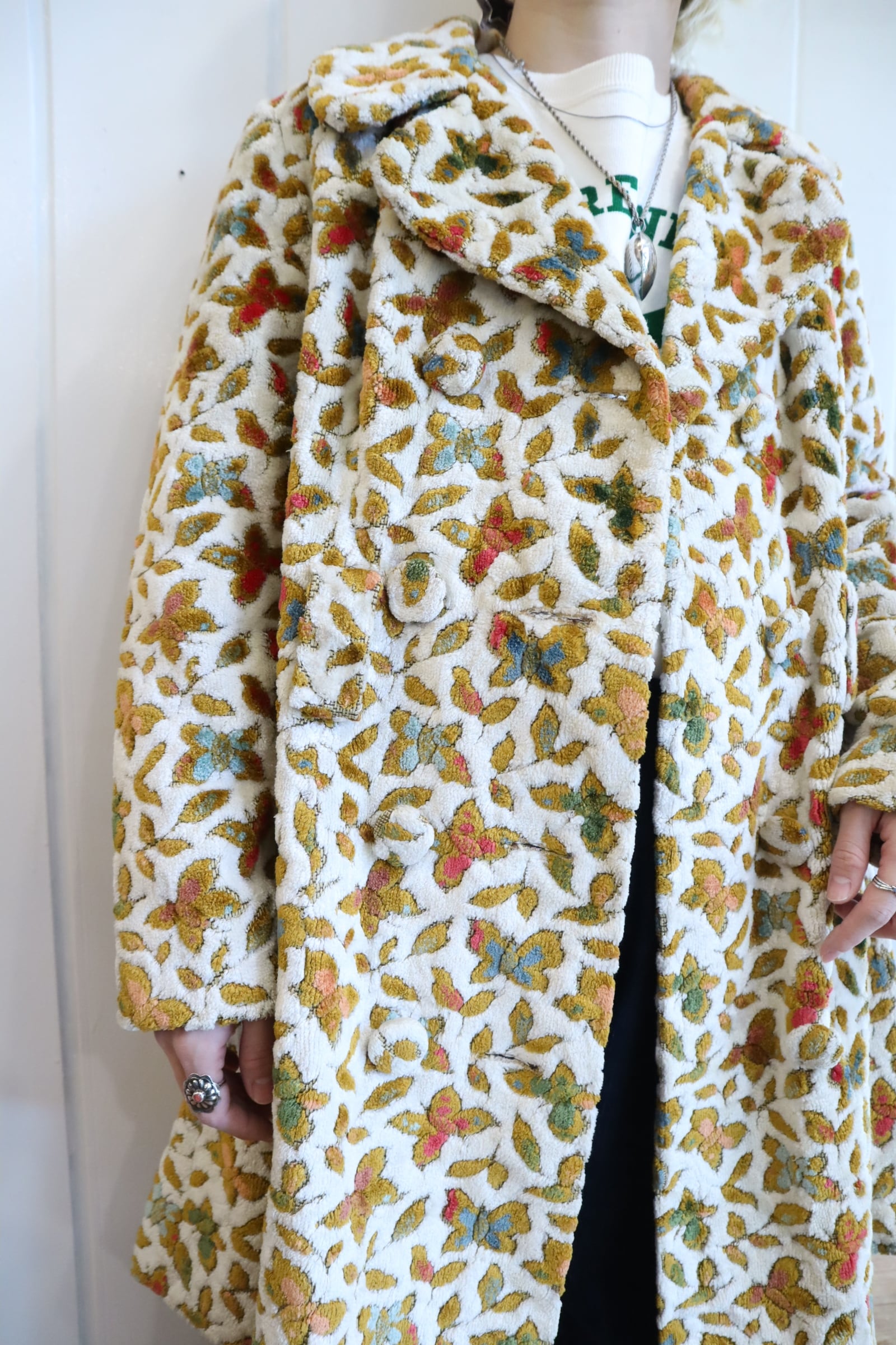 蝶々とリーフの柄がとっても素敵なビンテージゴブランコート。