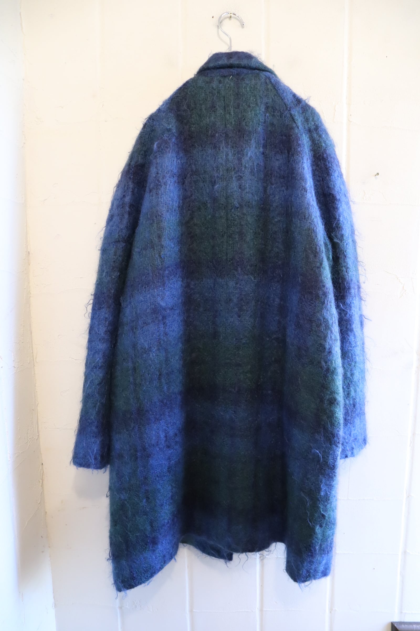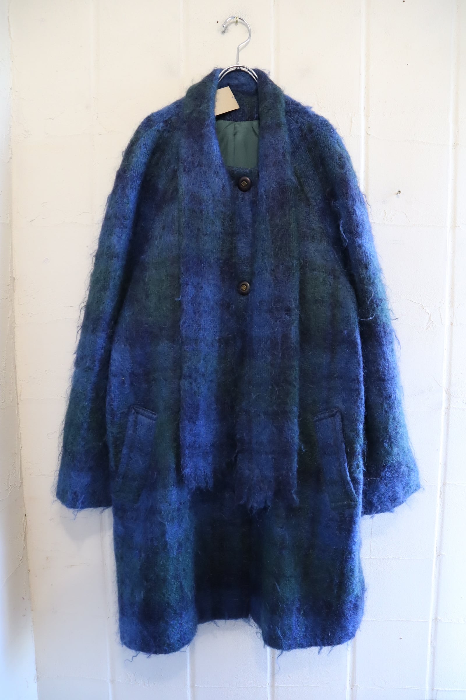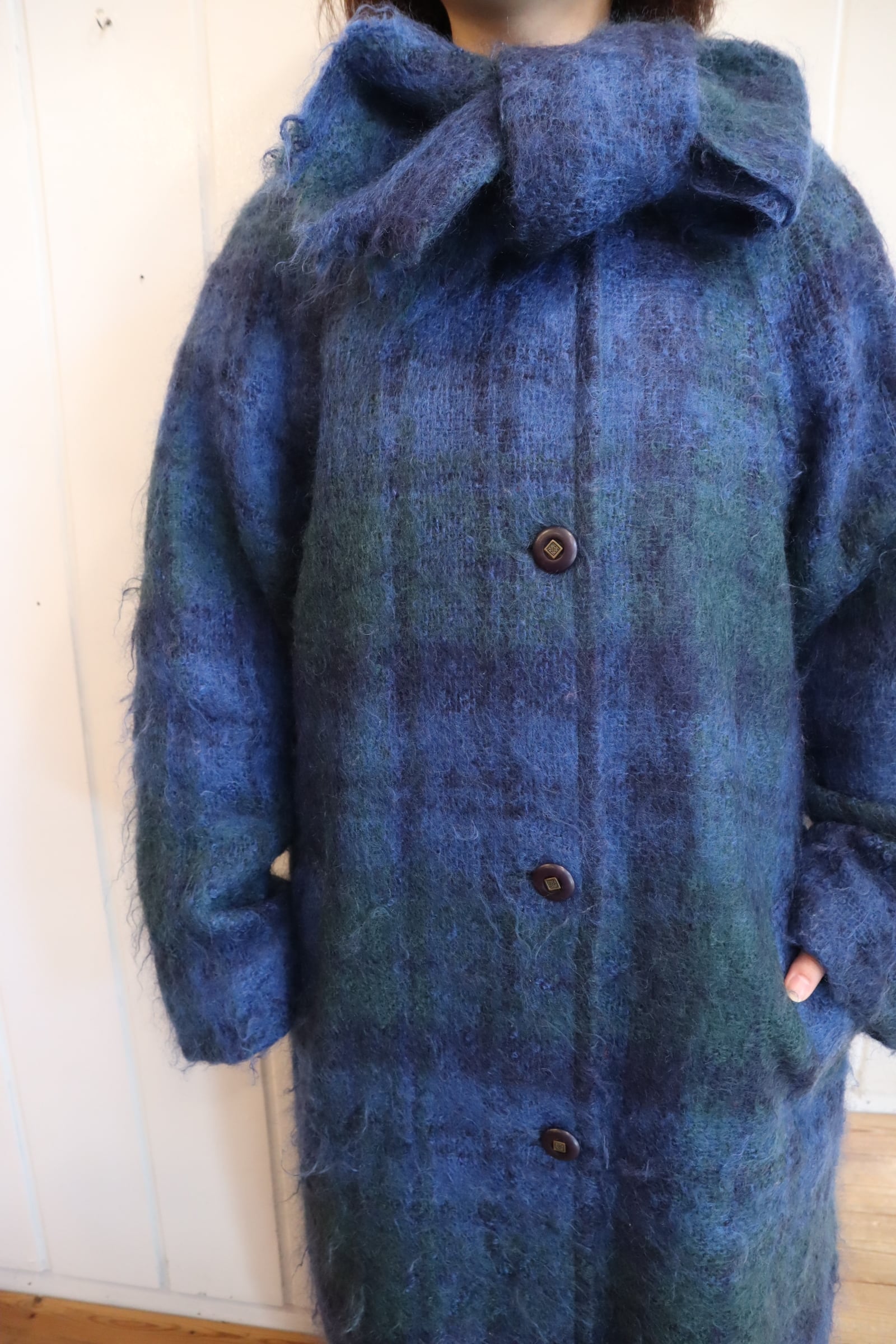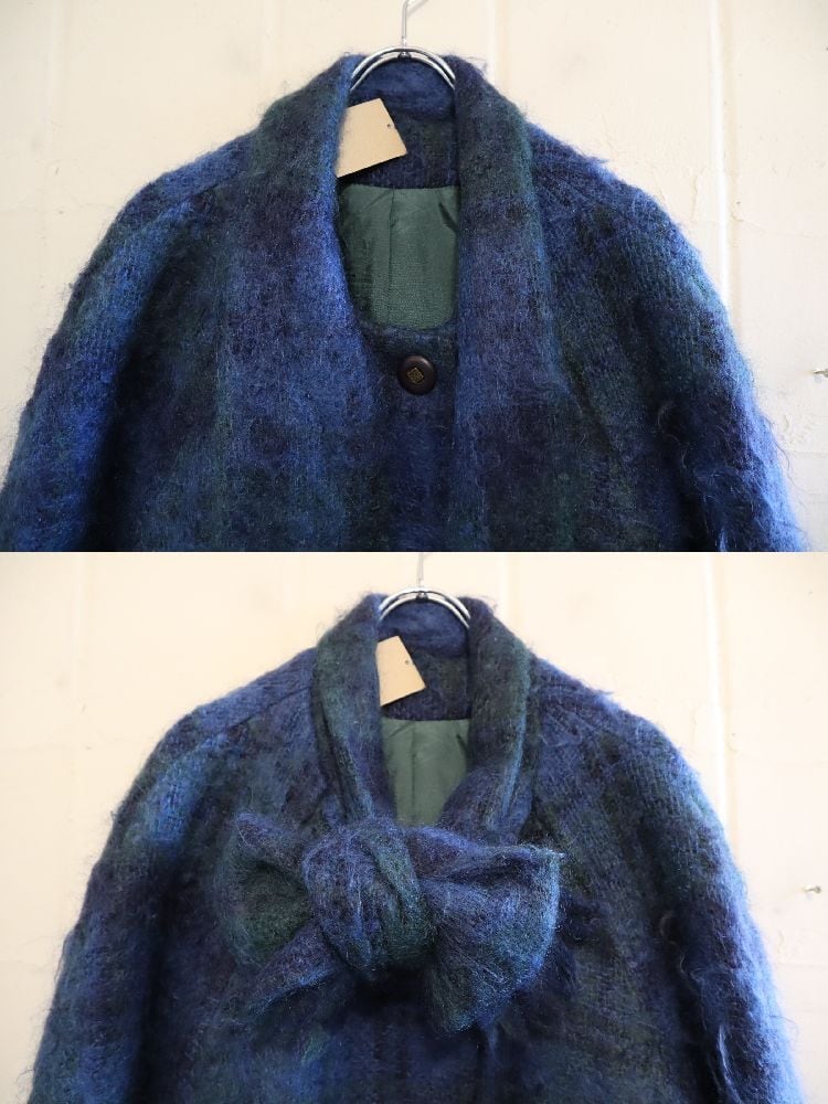 blue×green muffler collar mohair wool coat [l-4771]
