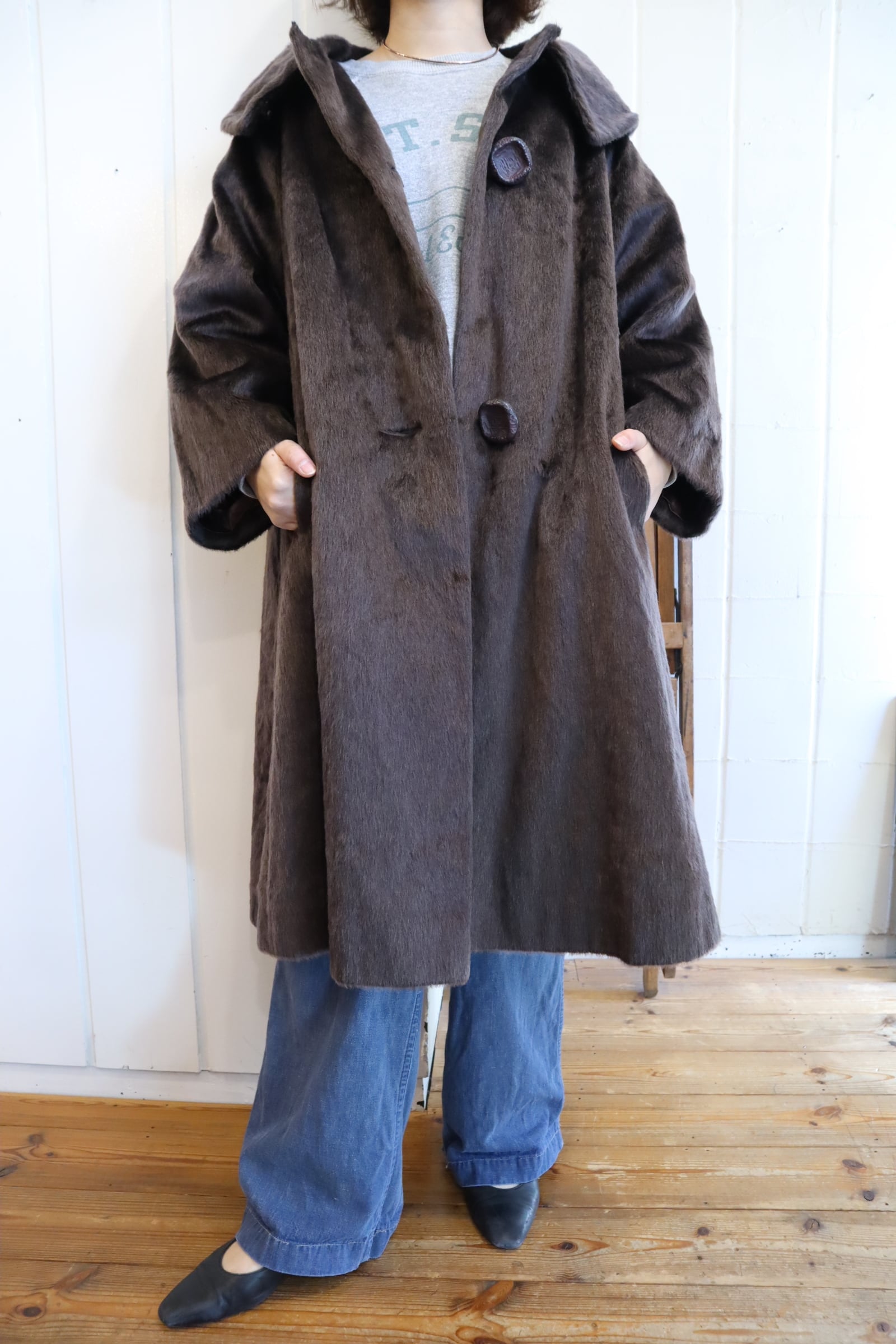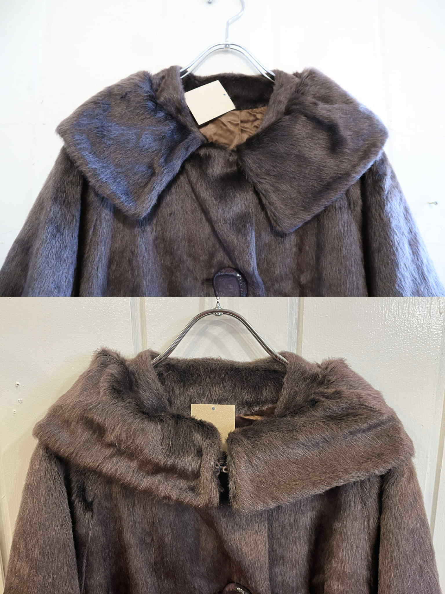 ビンテージ特有の上質なフェイクファー素材のコートです。