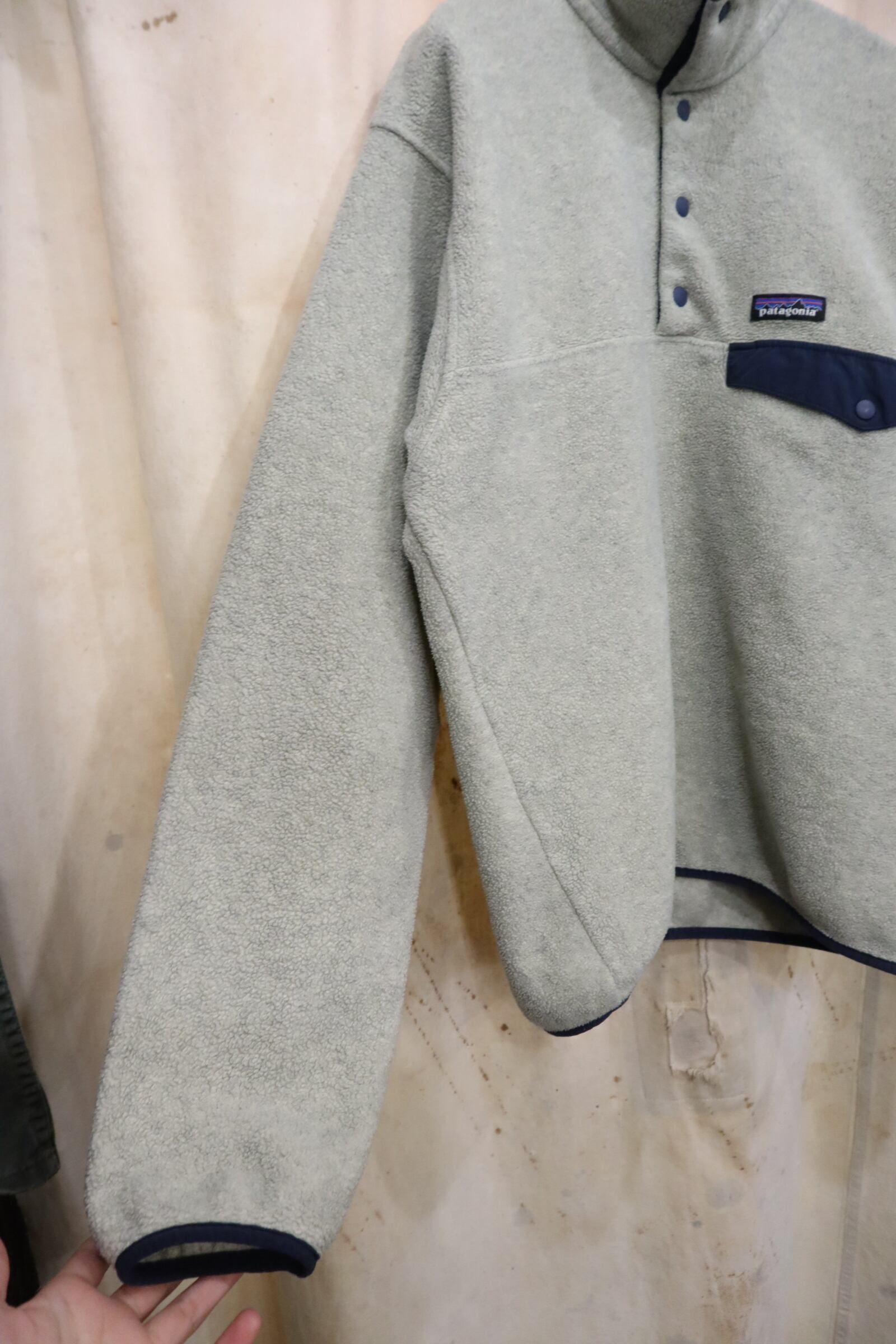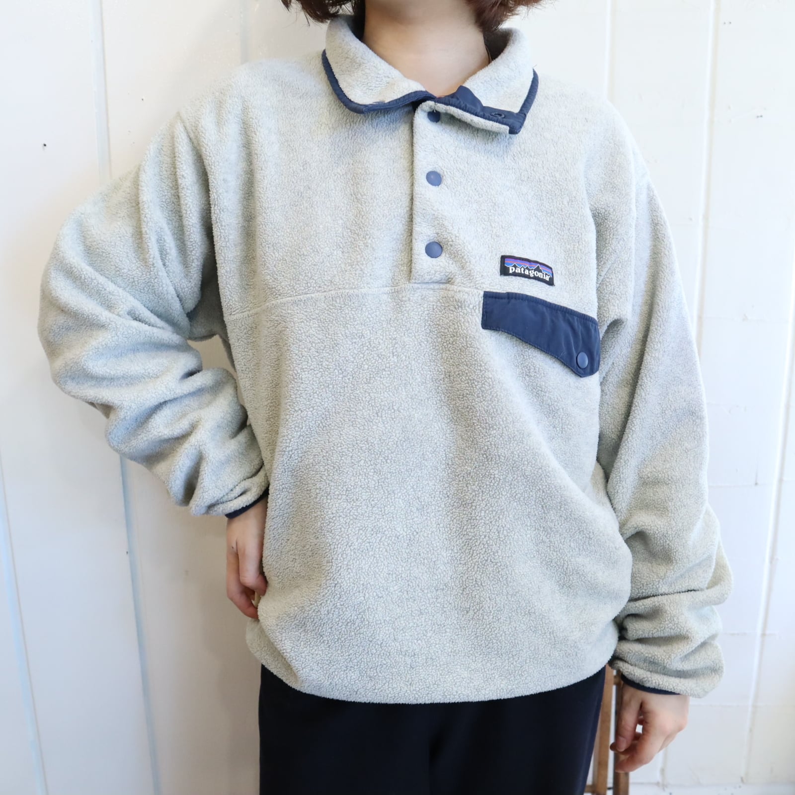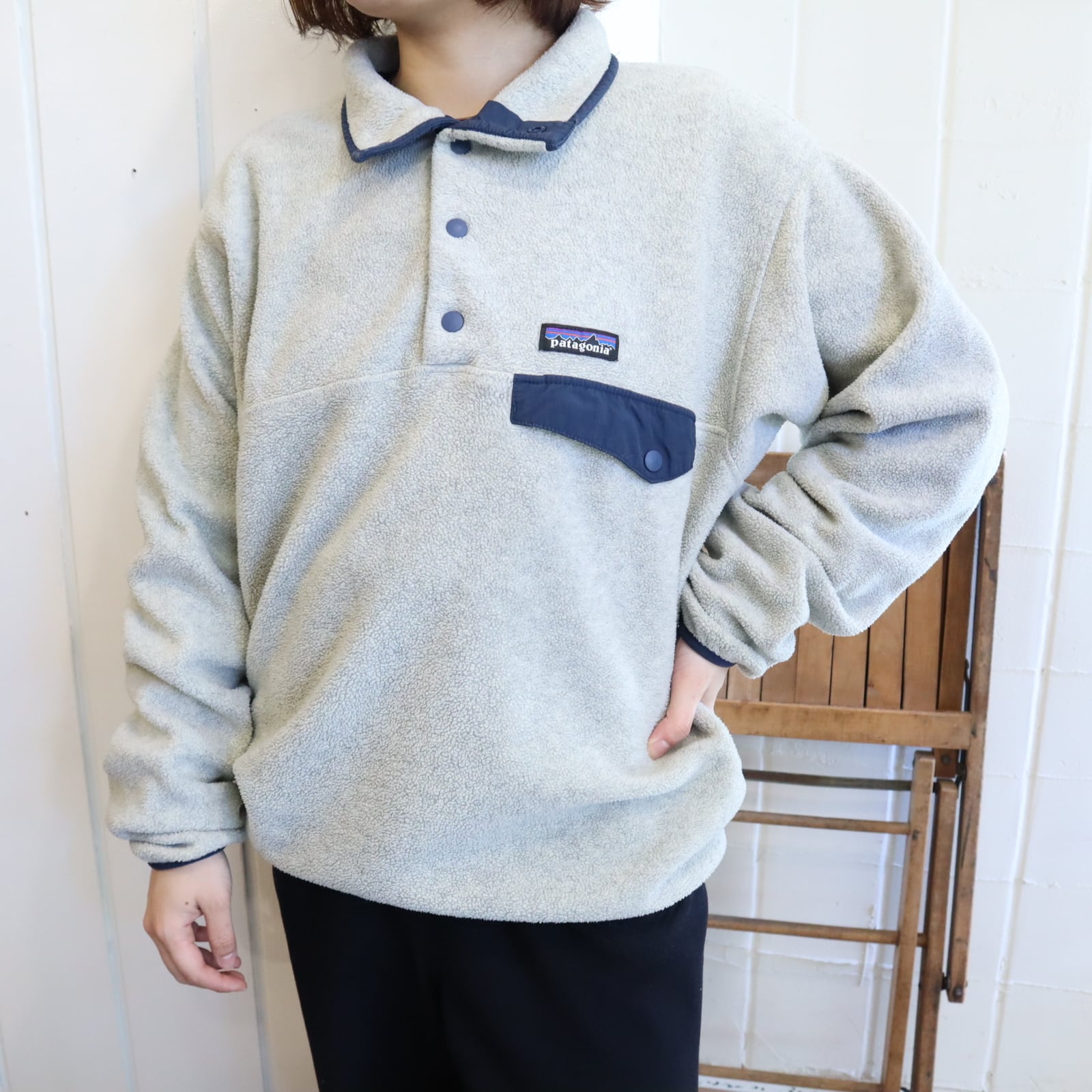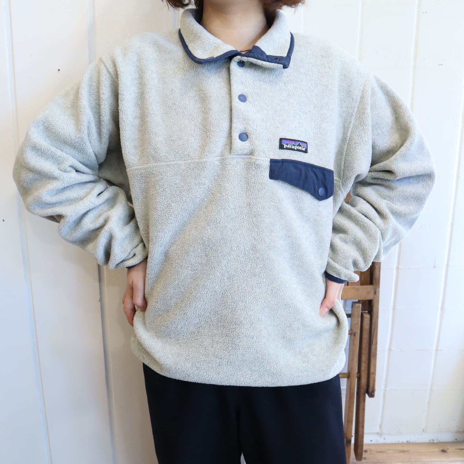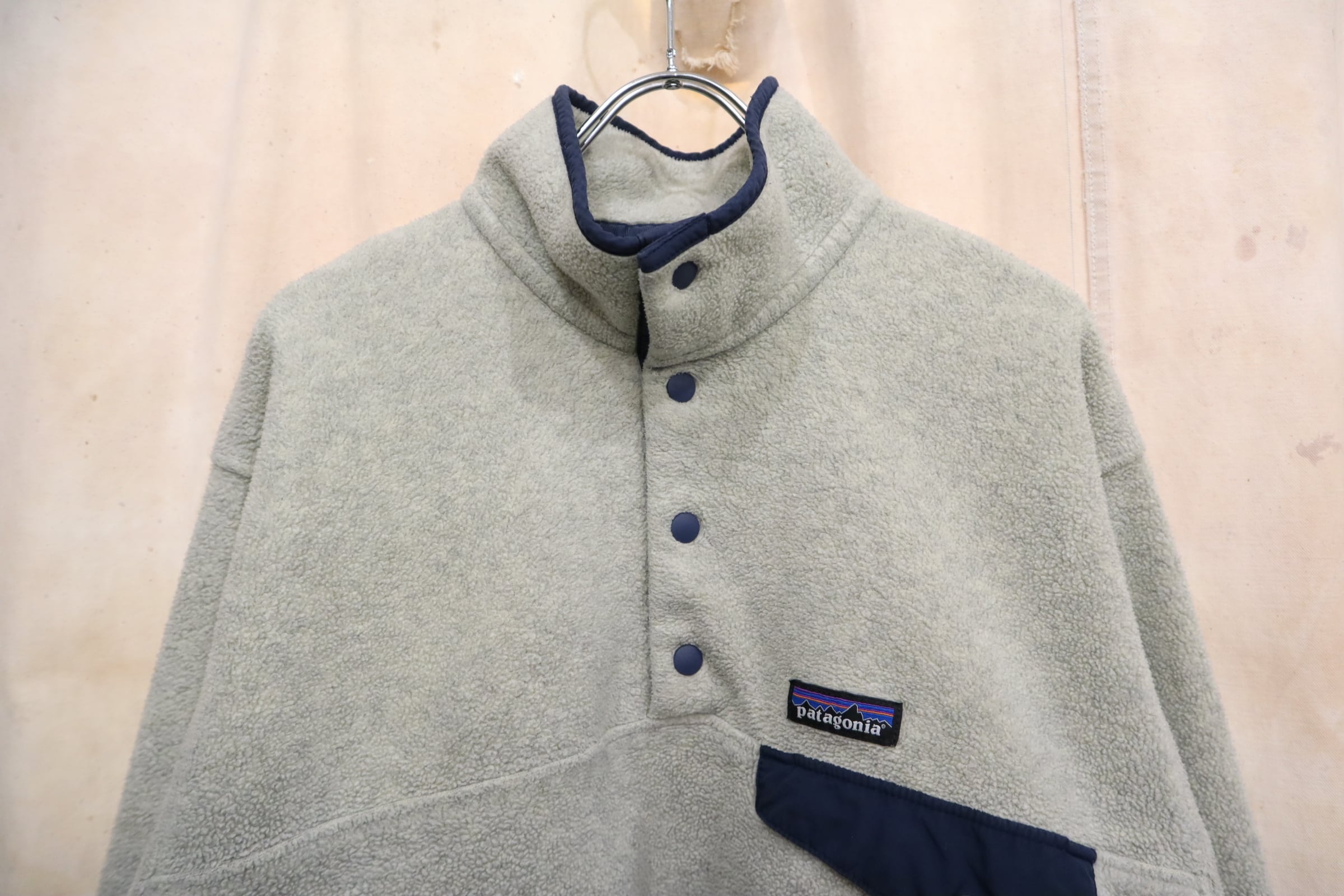 Patagonia lightgray×navy pullover snap-t fleece [l-4774]