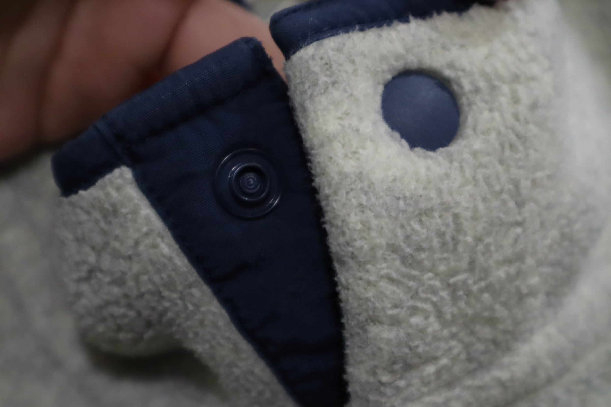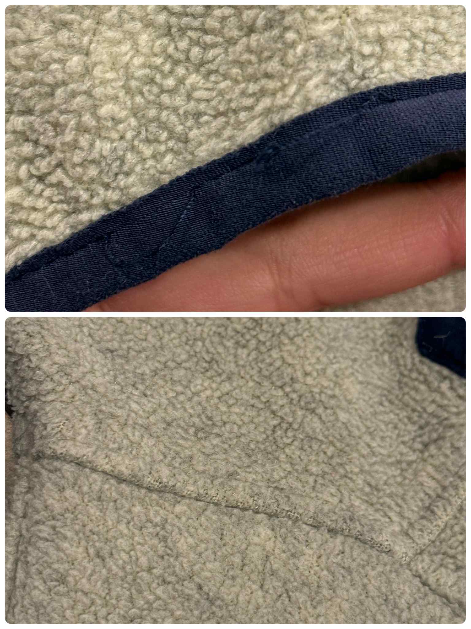 リブに糸のホツレ、縫い目付近にやや生地の薄れがございますが、あまり気にならないかと思います。