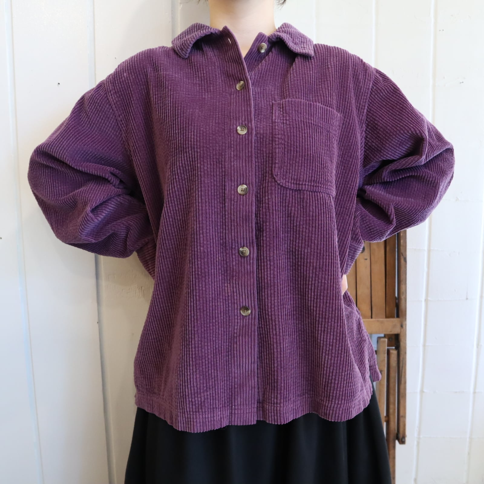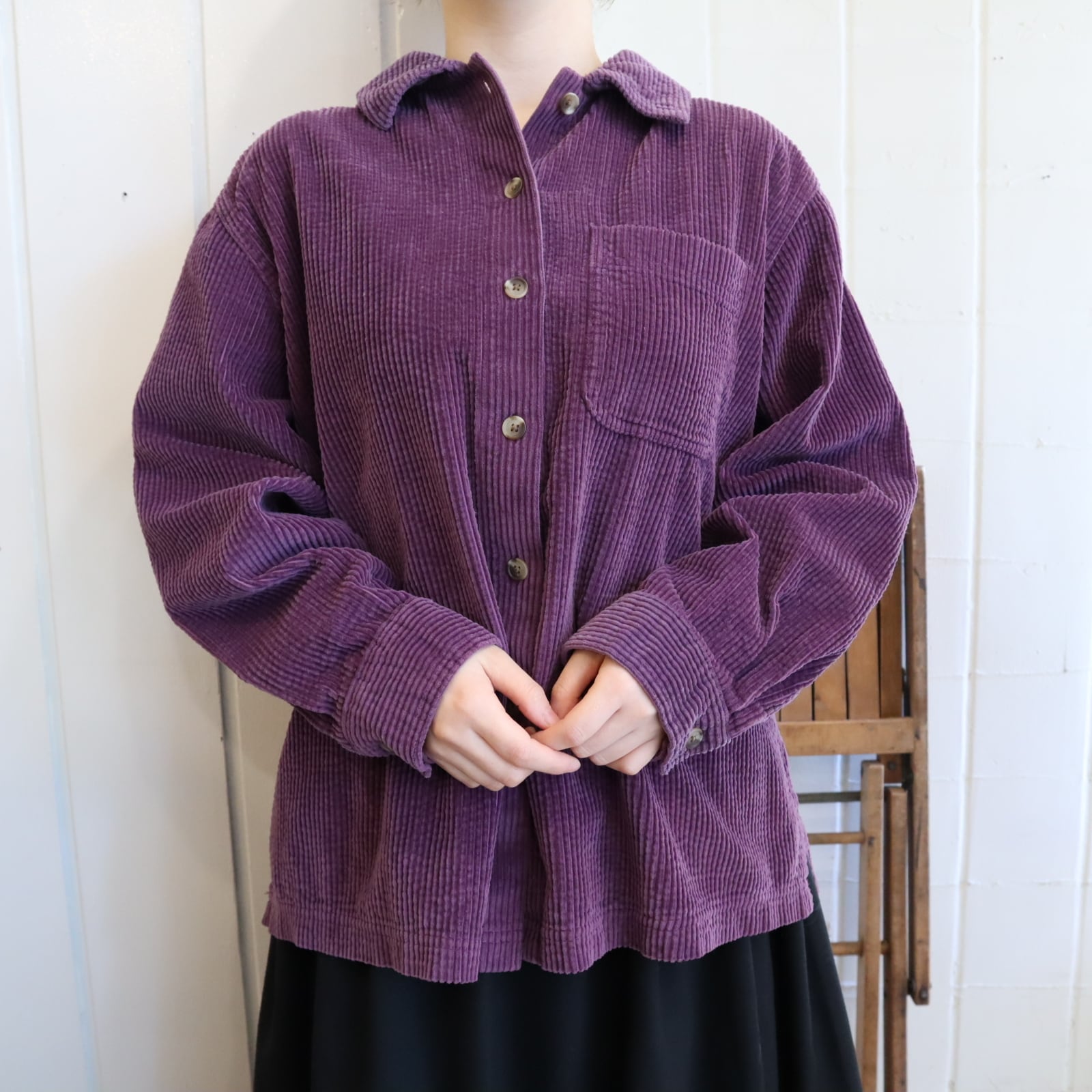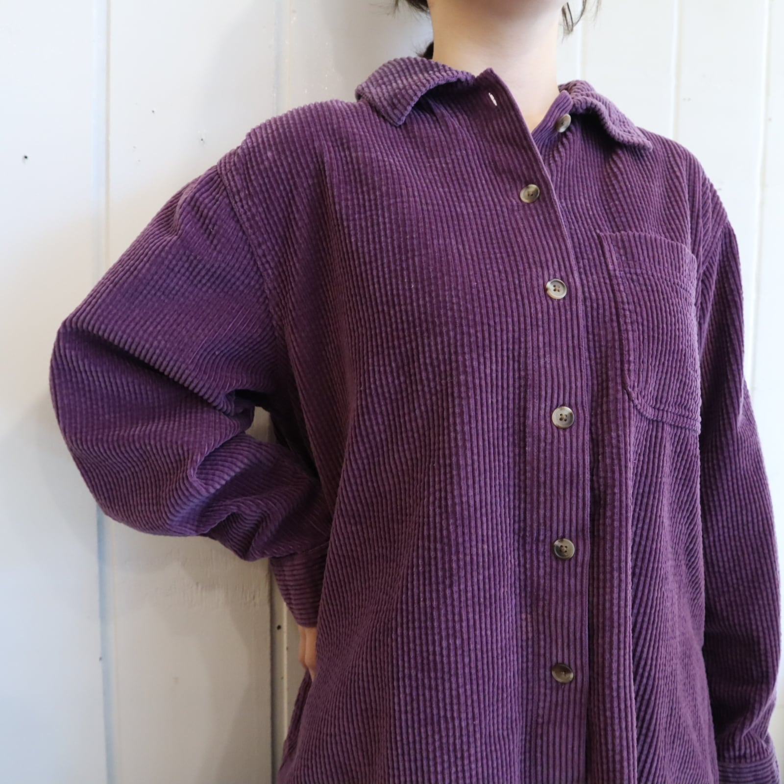 L.L.Bean purple plain corduroy shirt [l-4776]