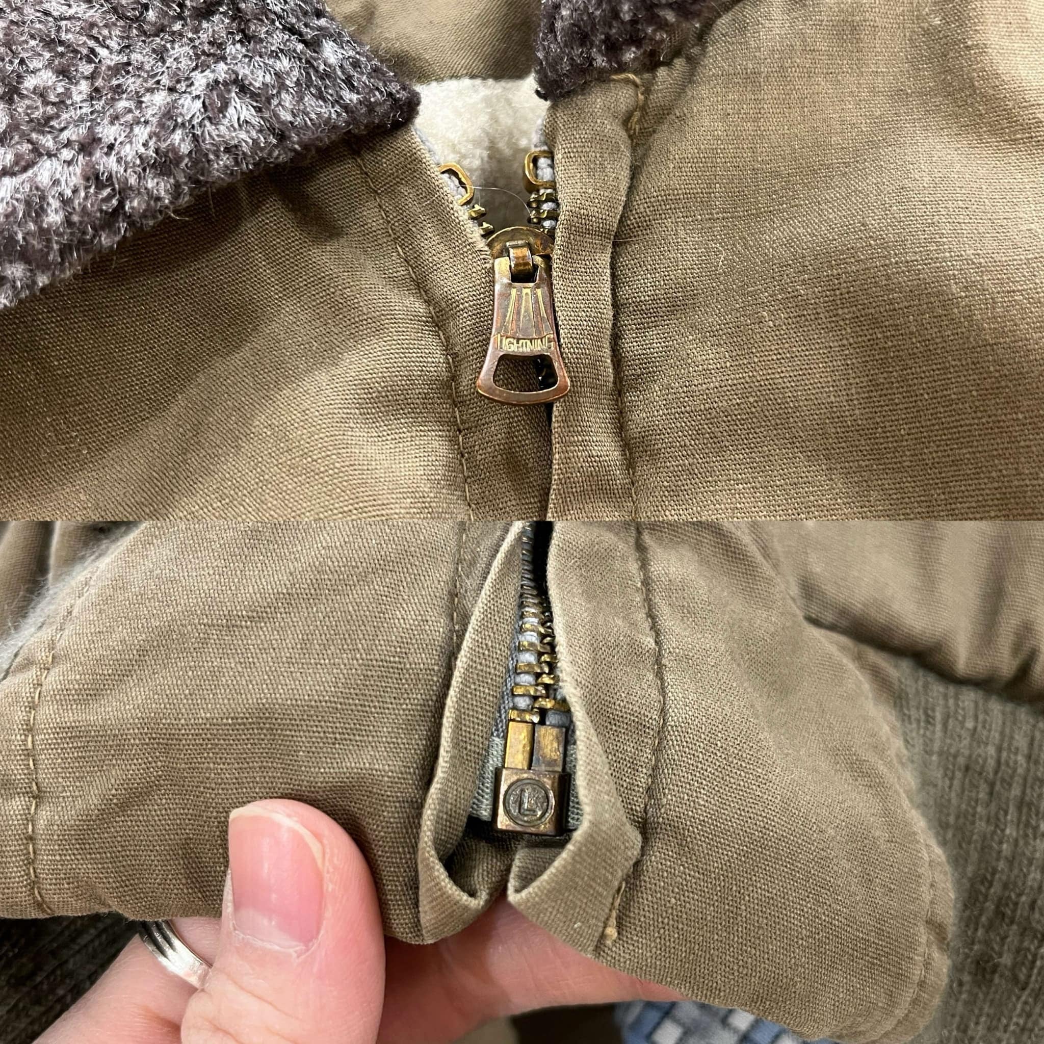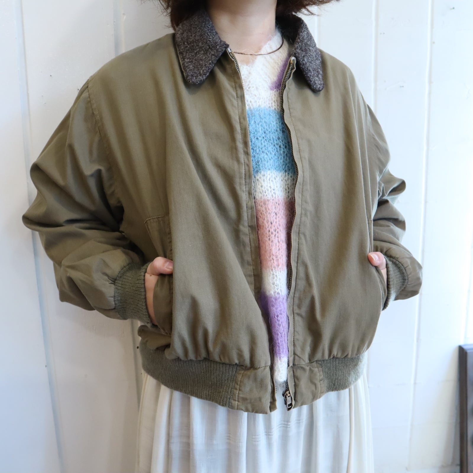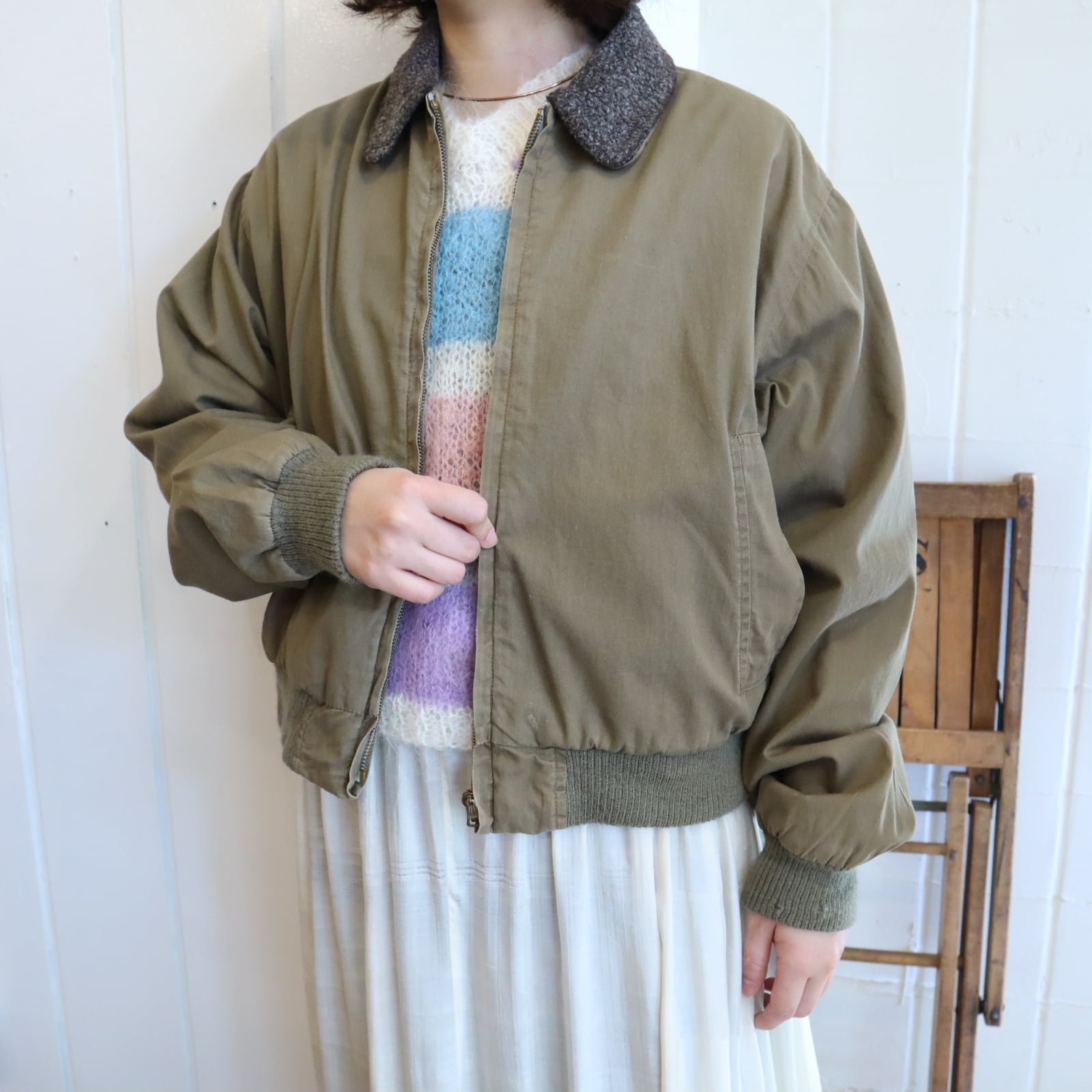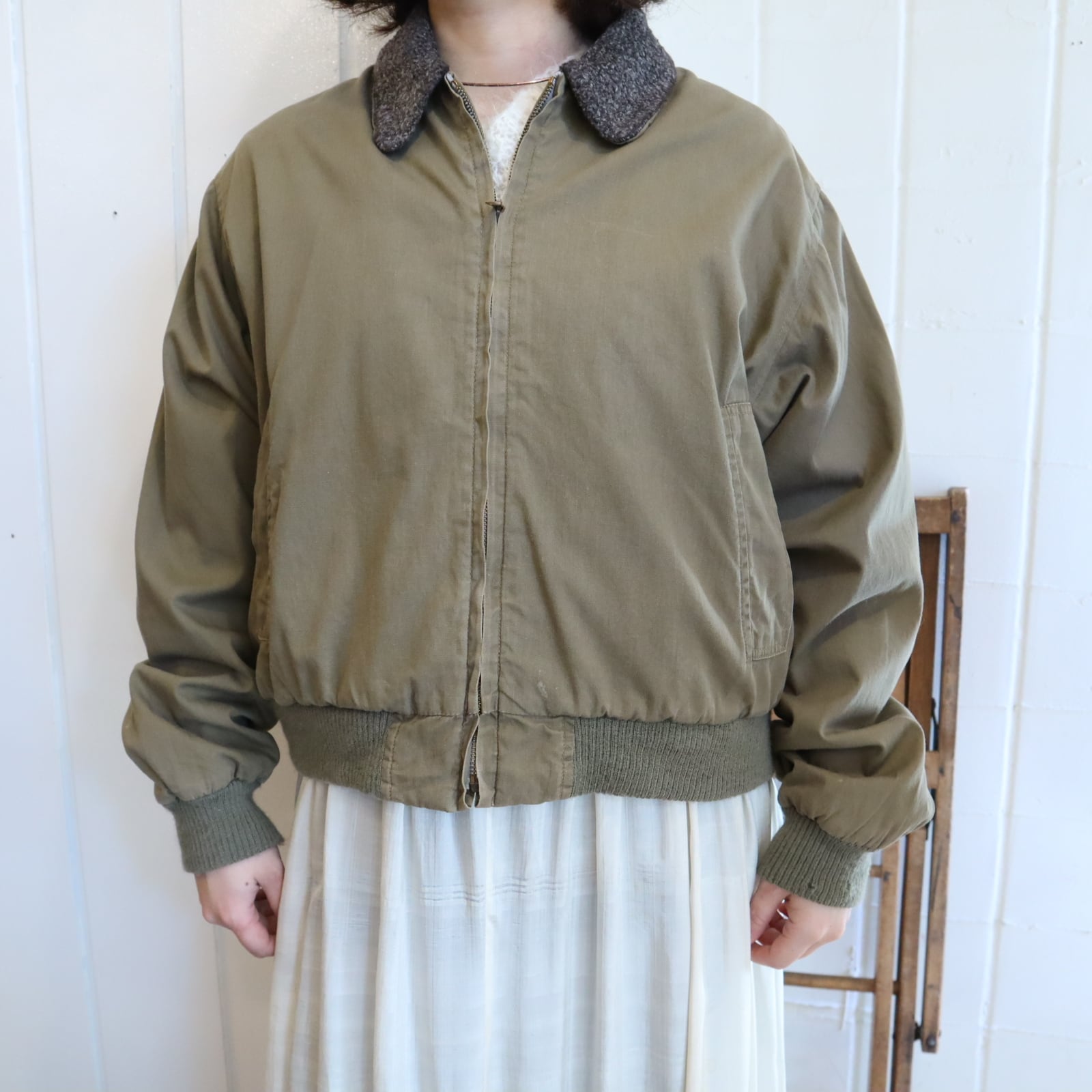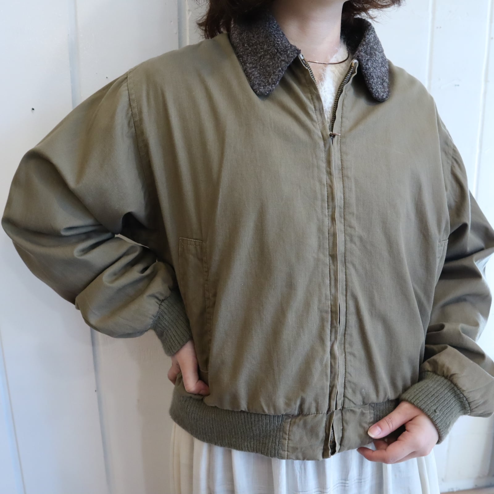 40s khaki×gray lining boa jacket [l-4779]