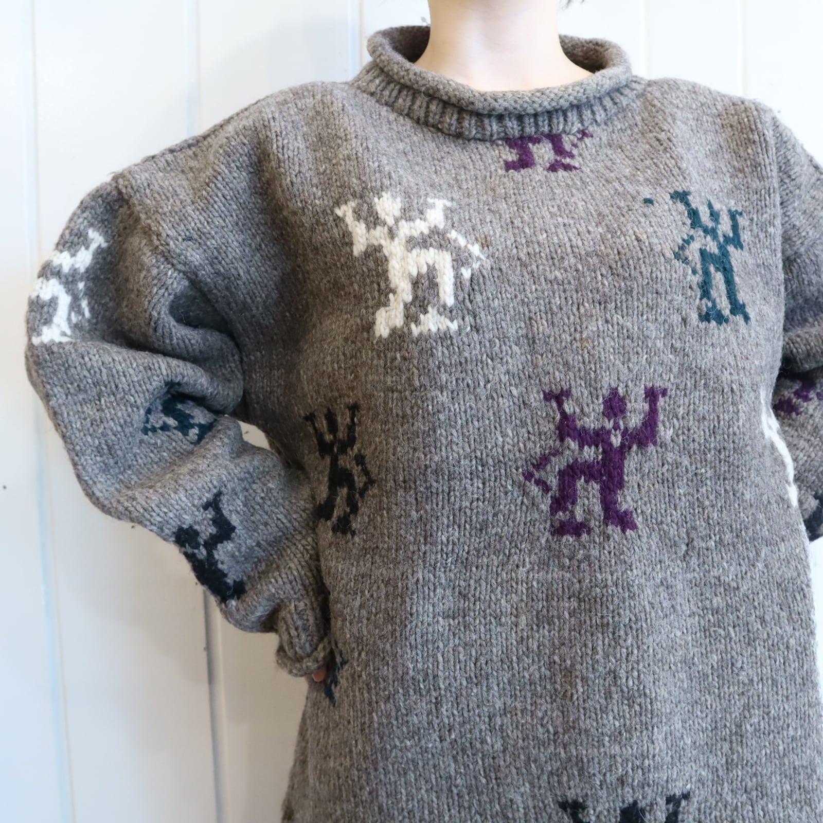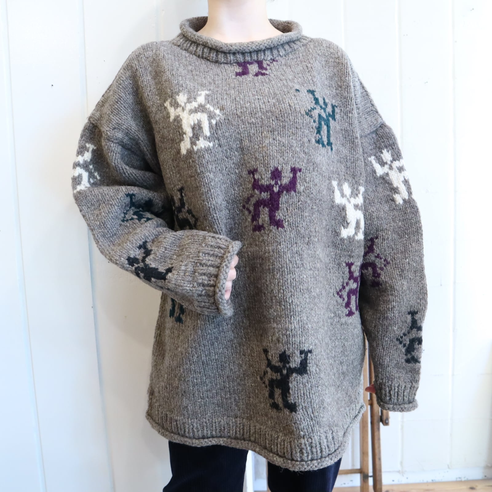 ワンピースのように着られるサイズ感が可愛いエクアドルニットです。