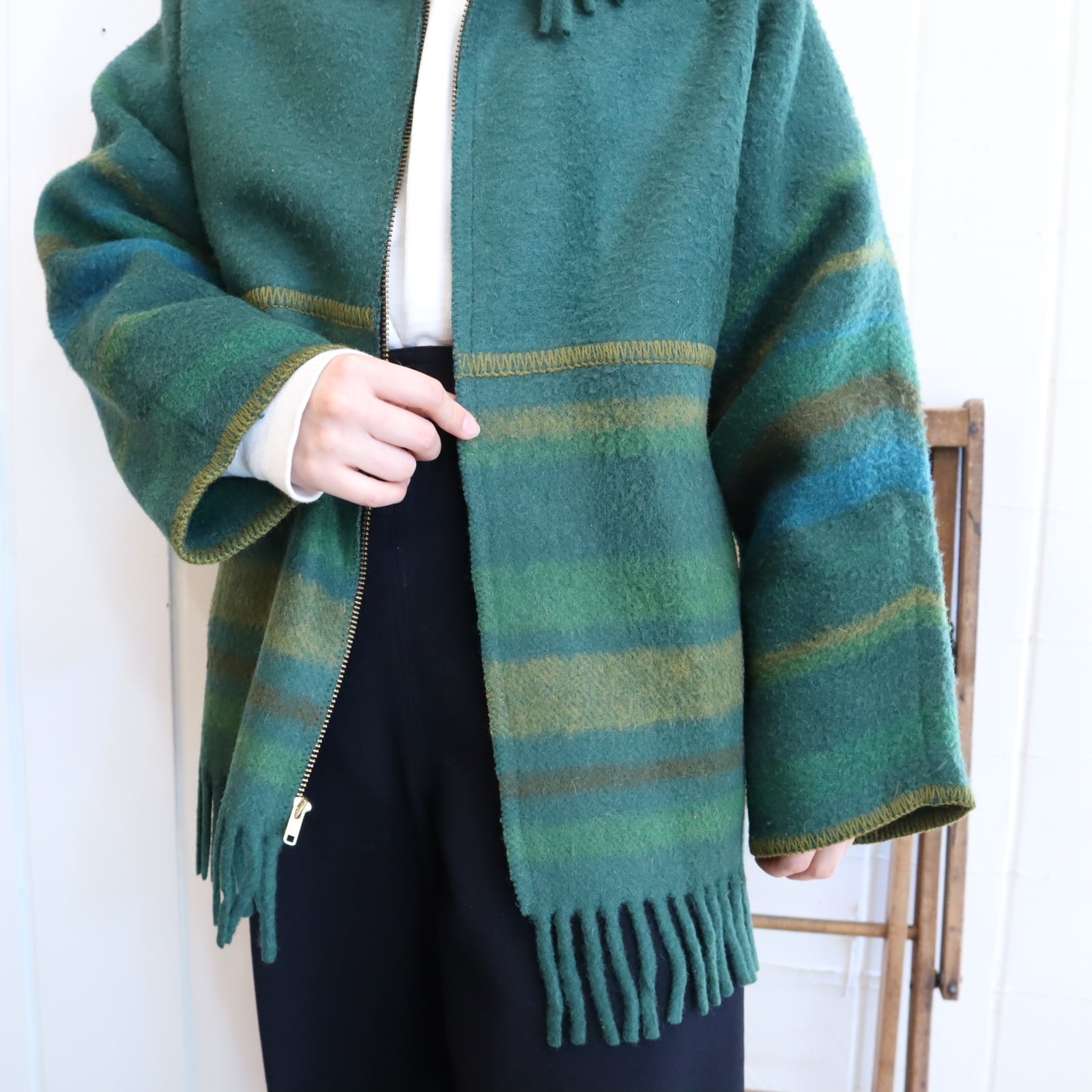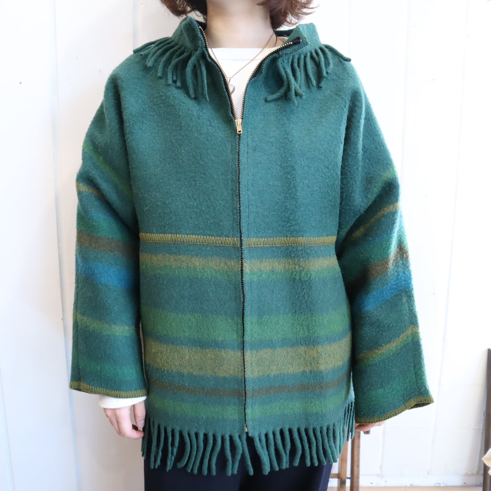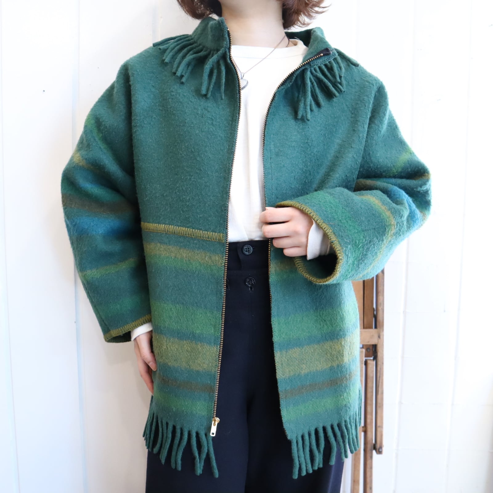 カラーリングや同生地で形成されたフリンジデザインが素敵な60-70sウールジャケット*