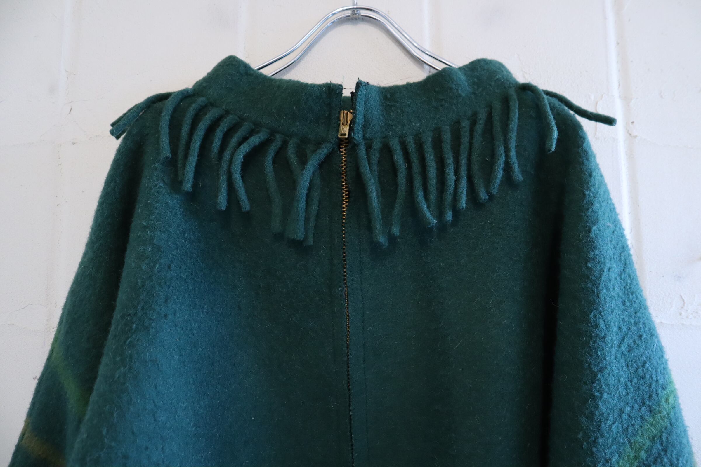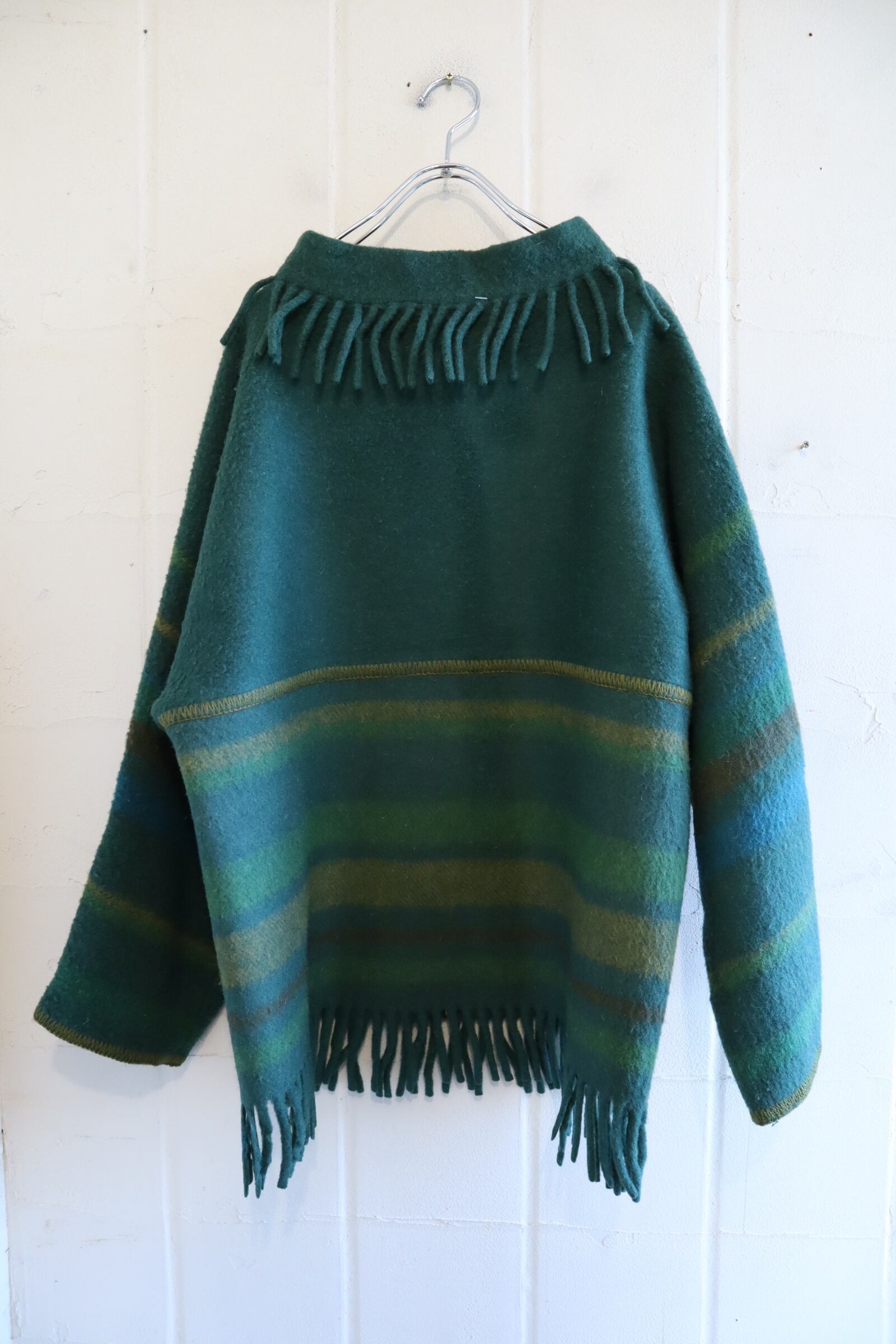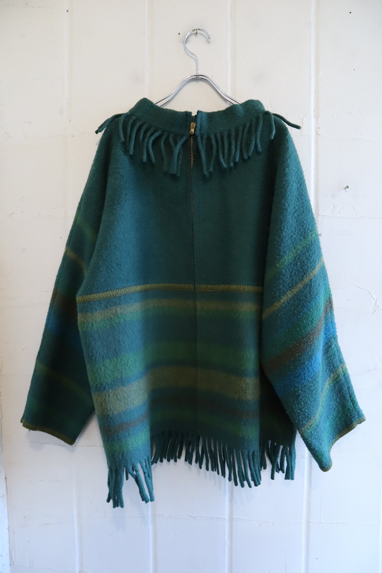 カラーリングや同生地で形成されたフリンジデザインが素敵な60-70sウールジャケット*