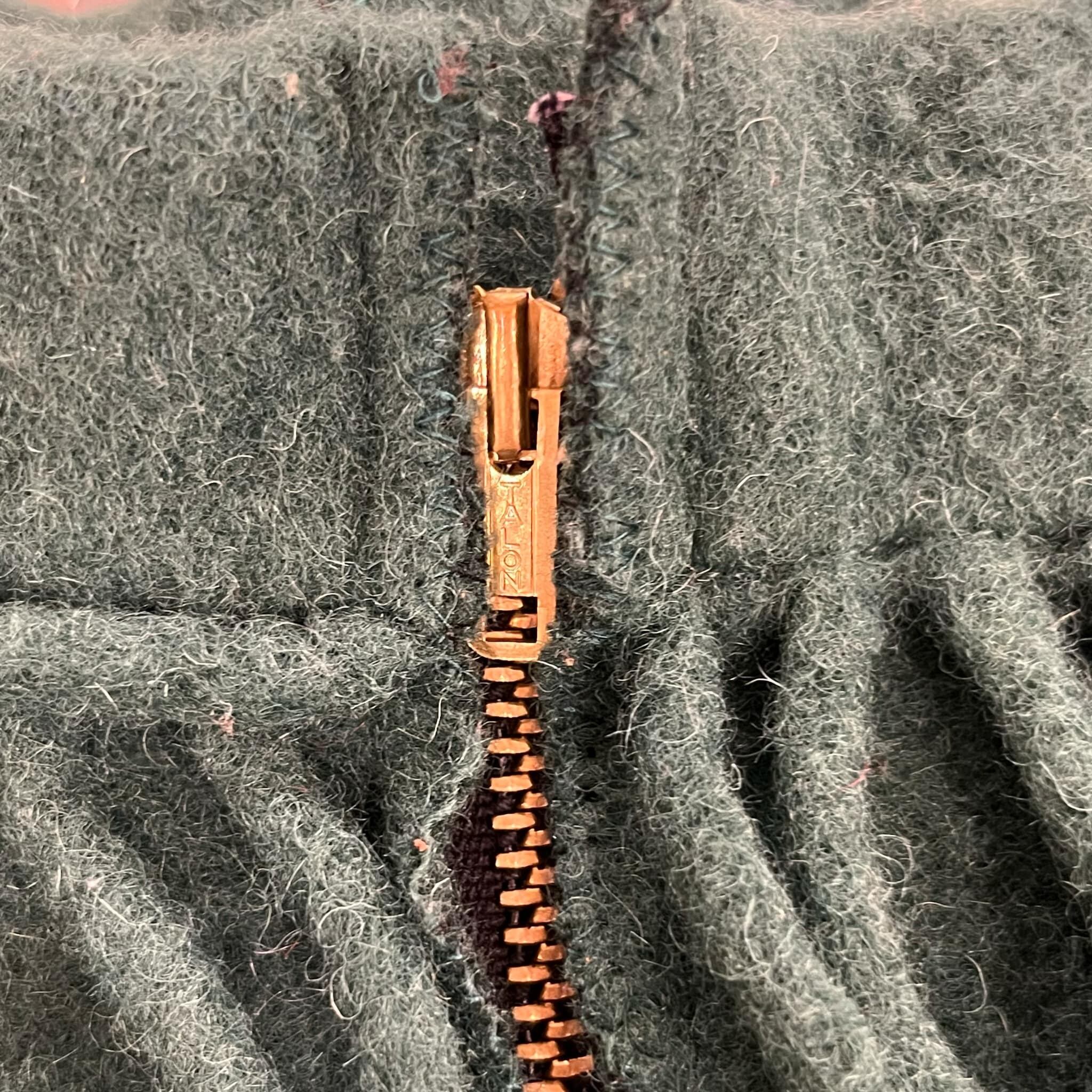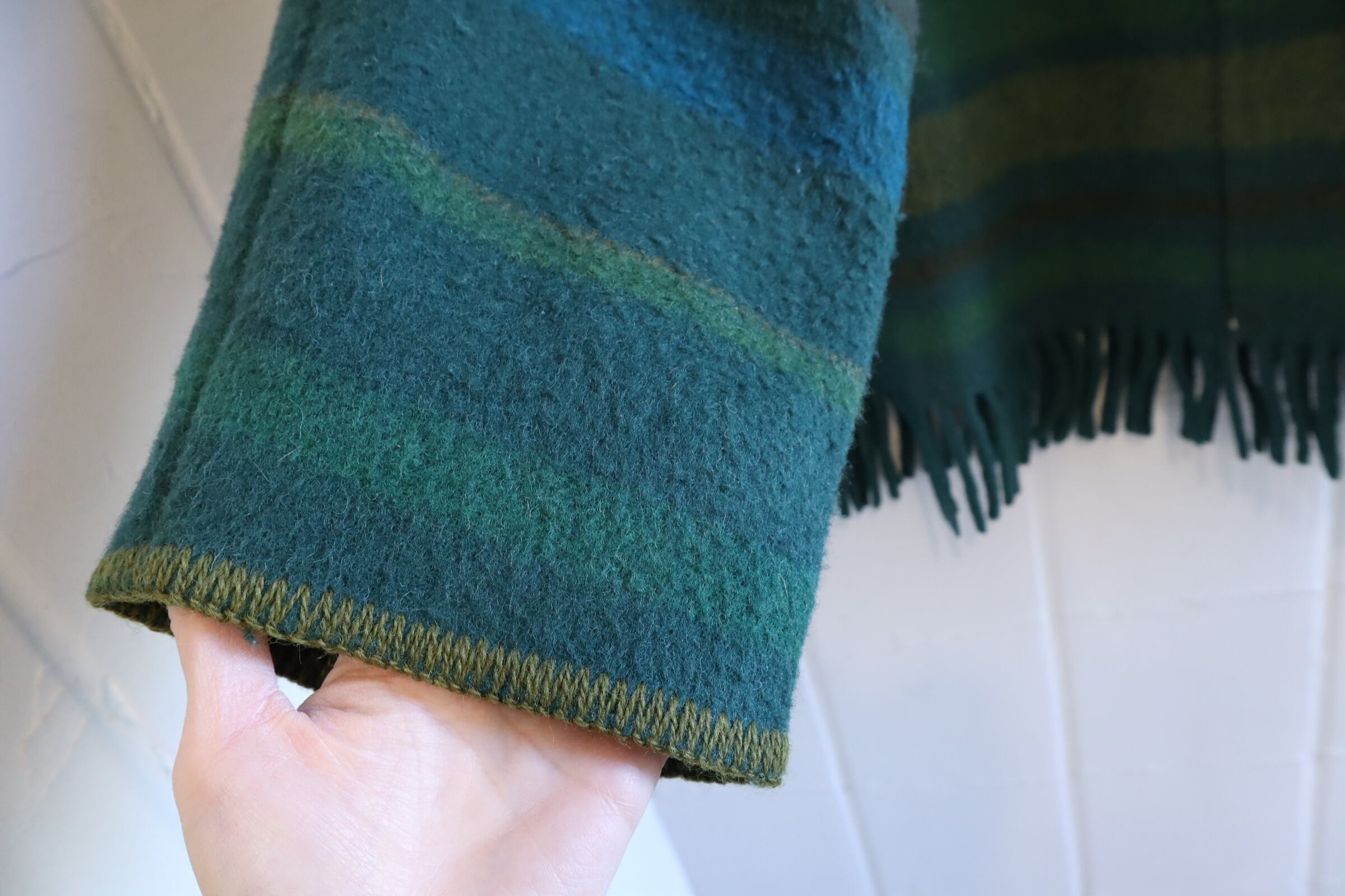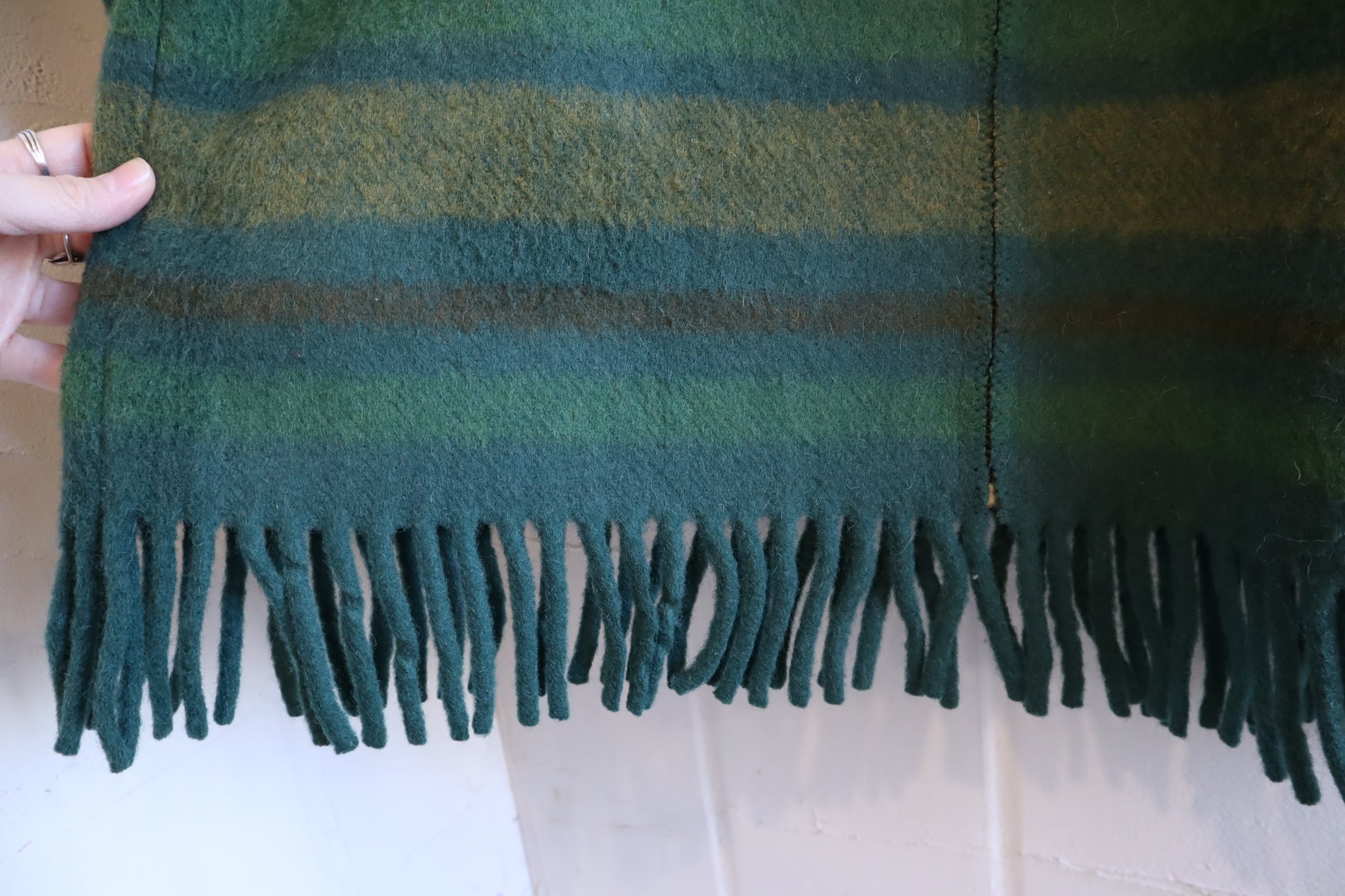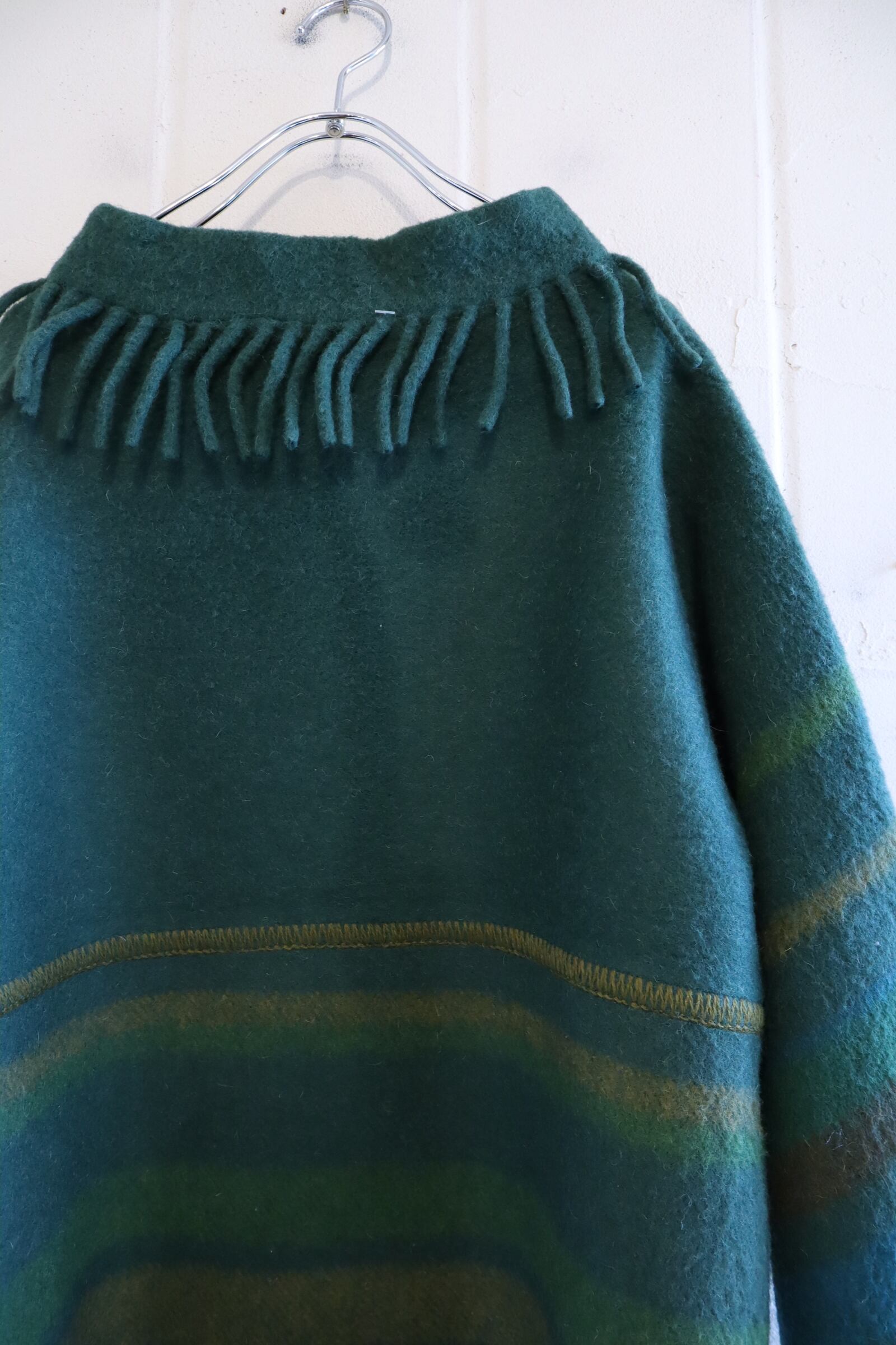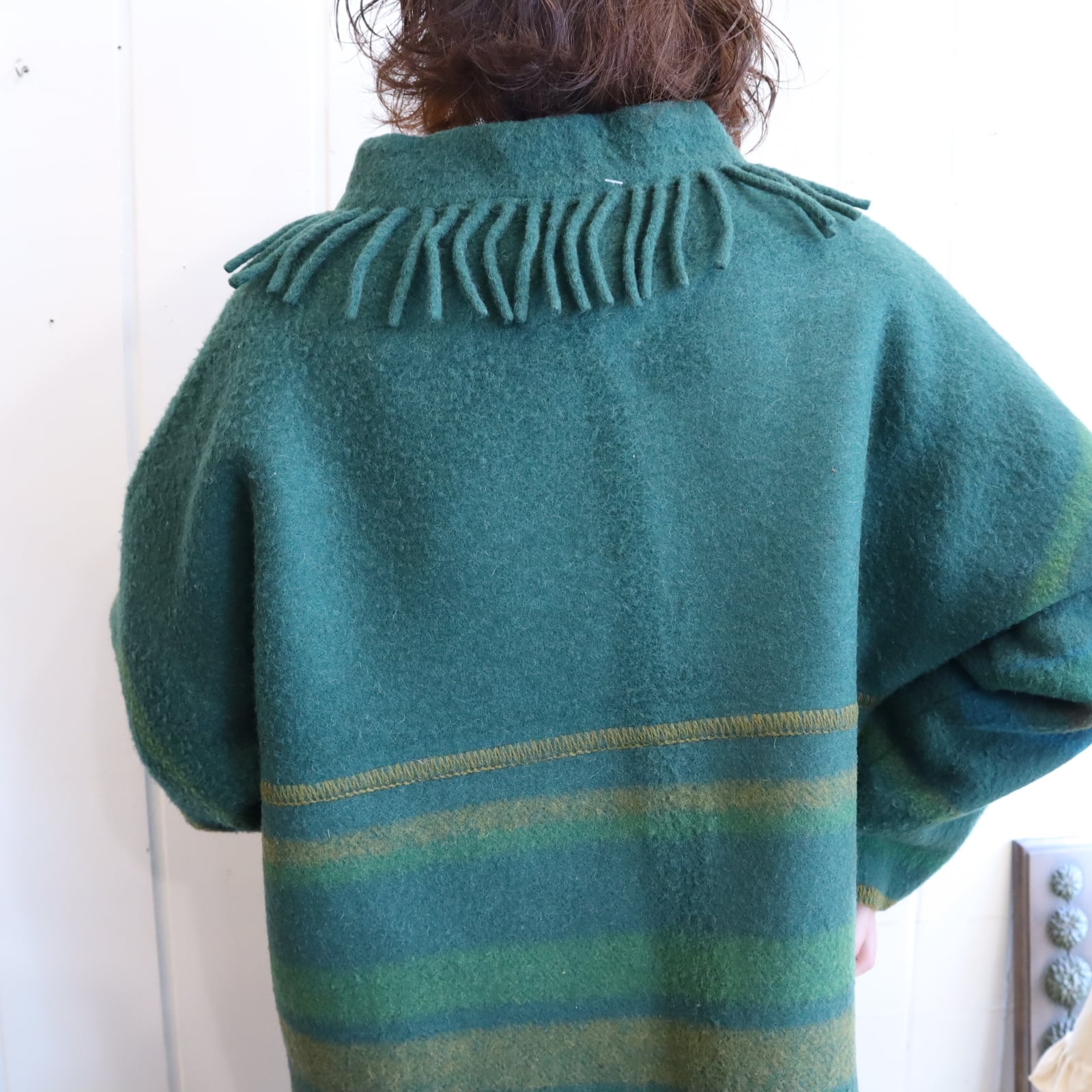 60-70s dullgreen×yellow border fringe wool jacket [l-4783]