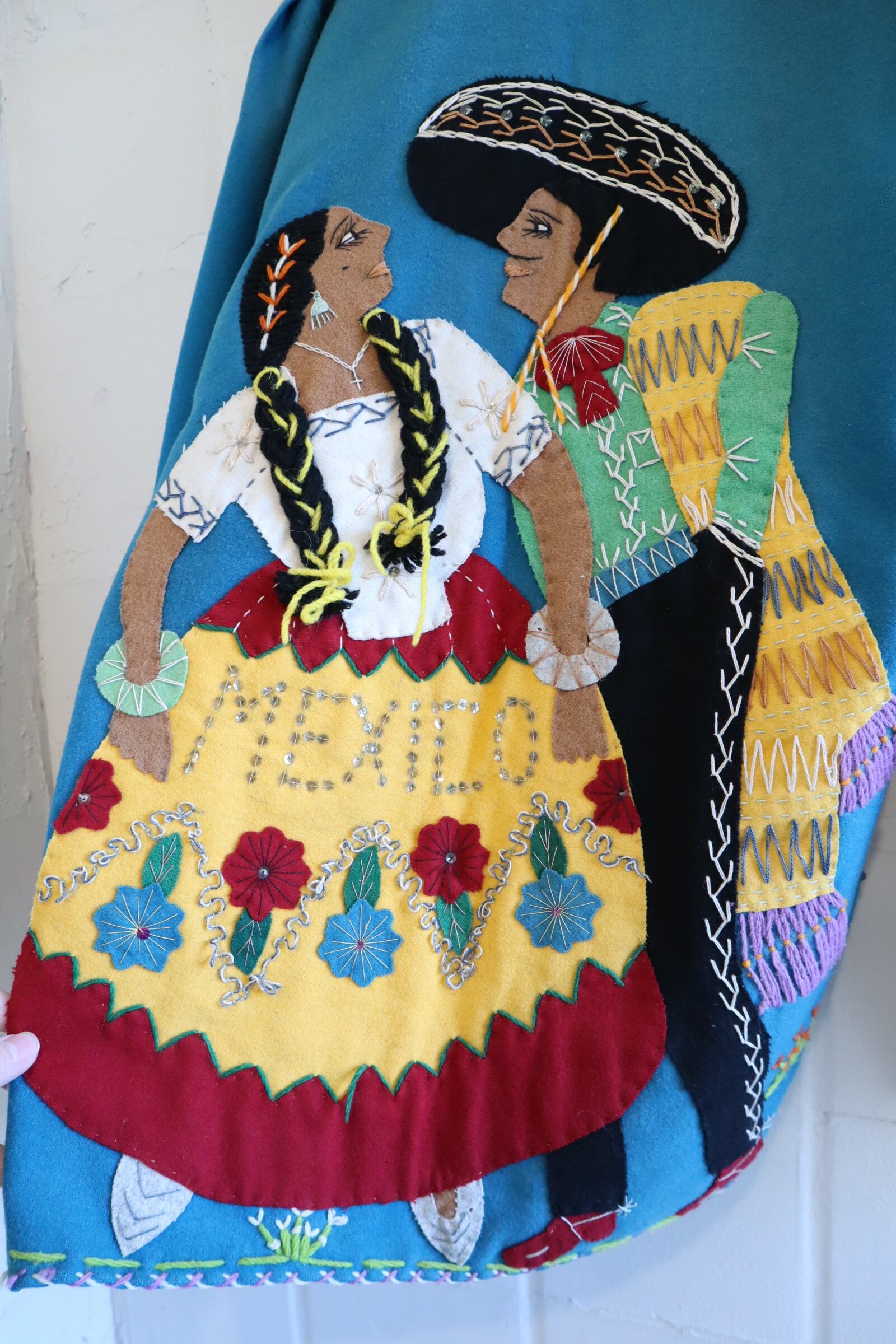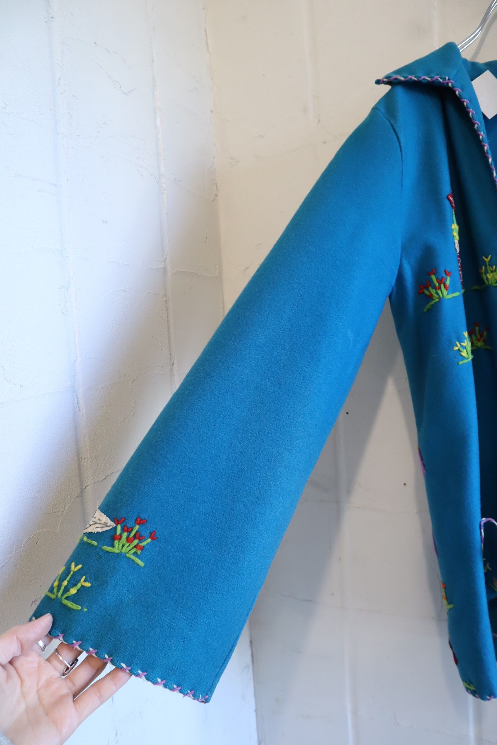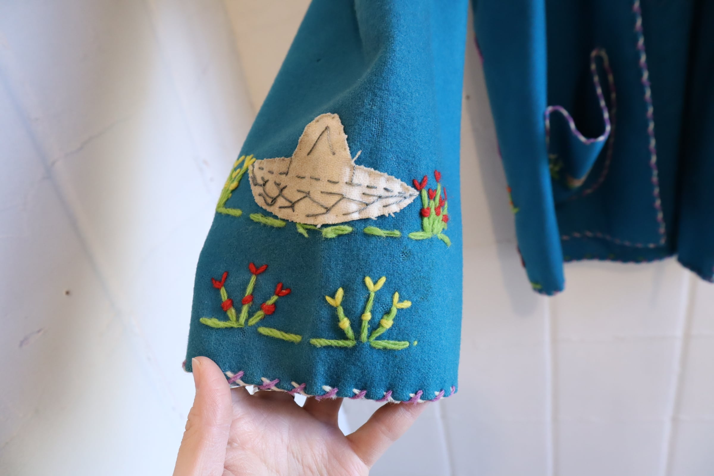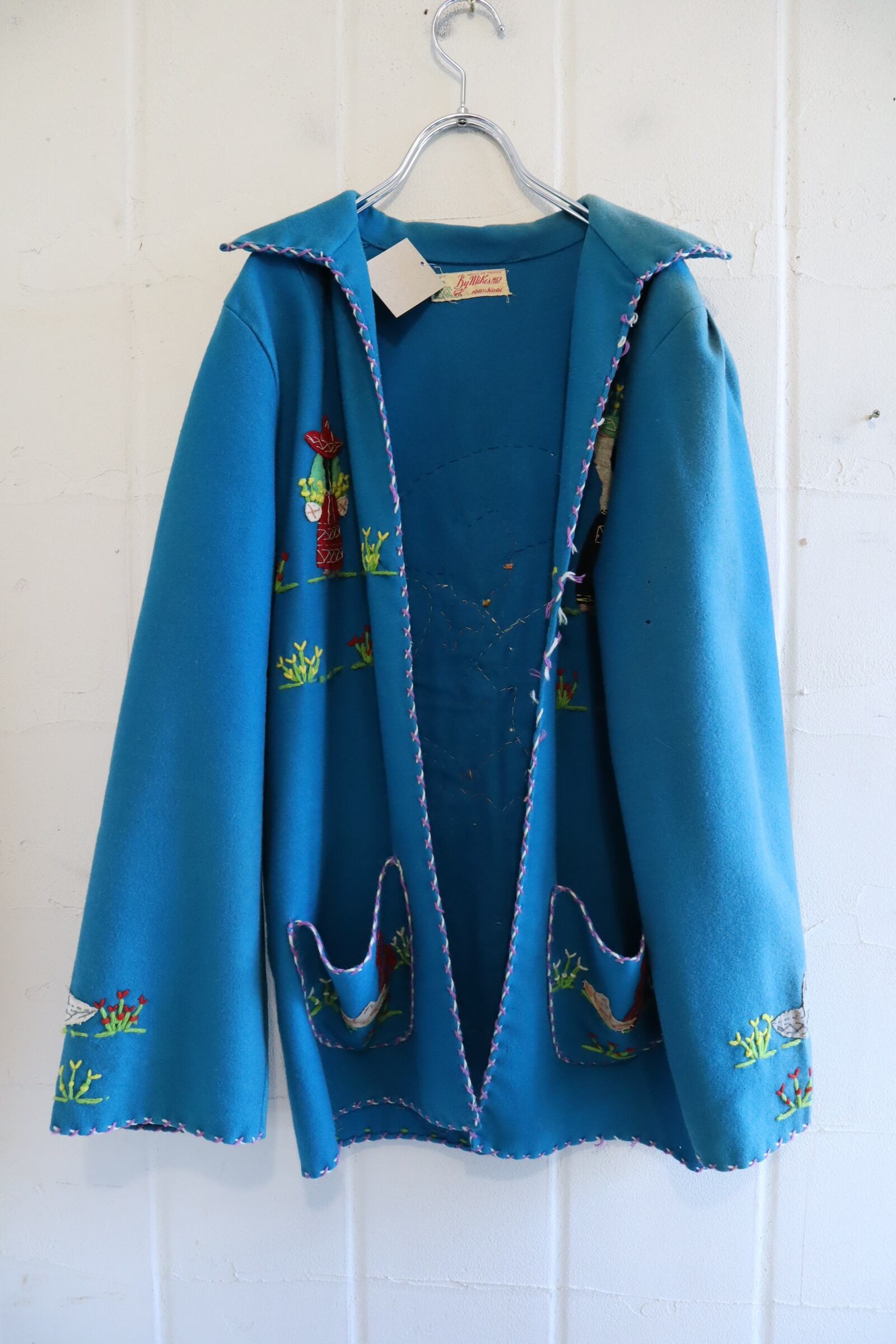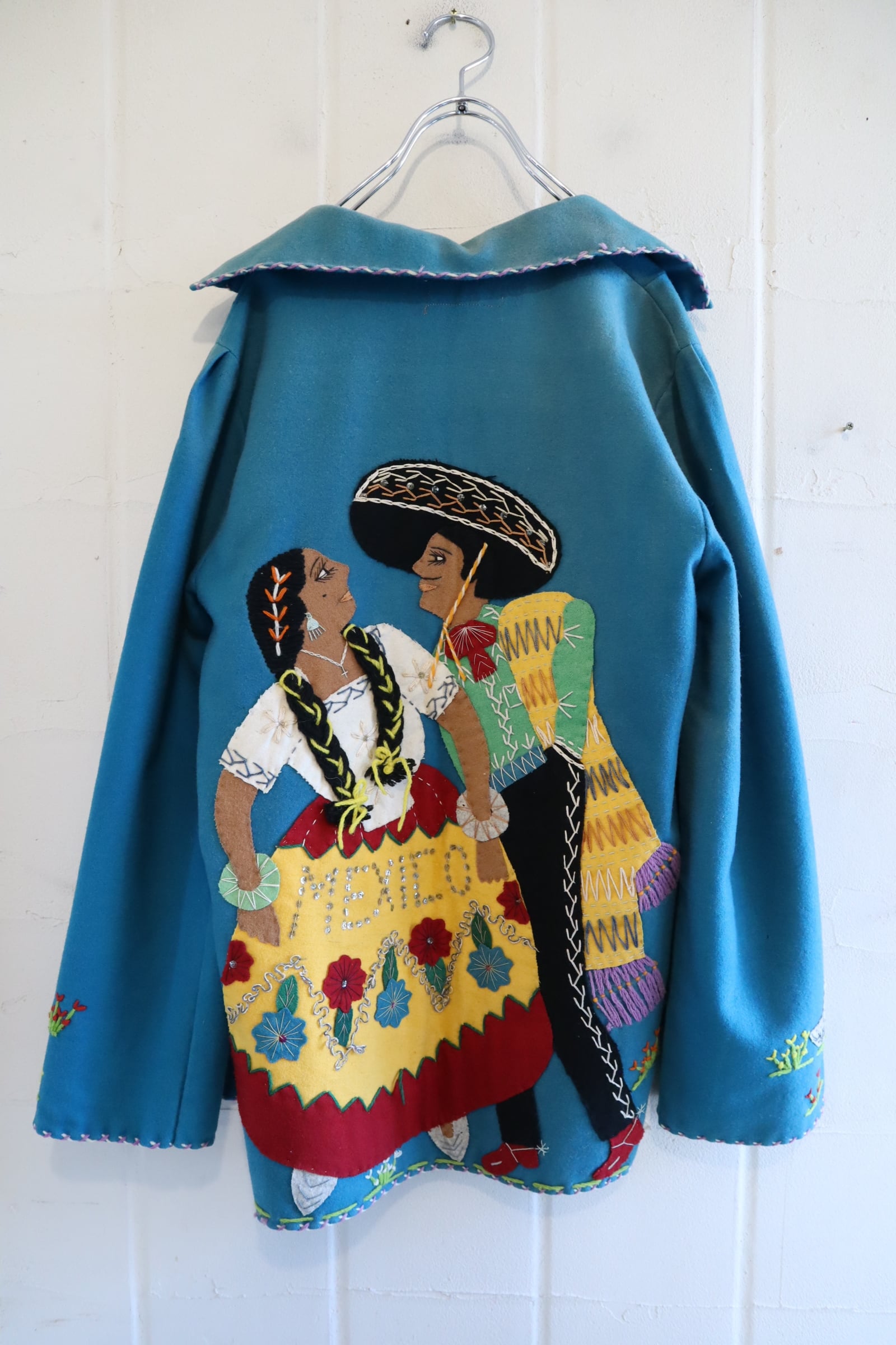 50s turquoiseblue×colorful human&flower Mexican jacket [l-4784]
