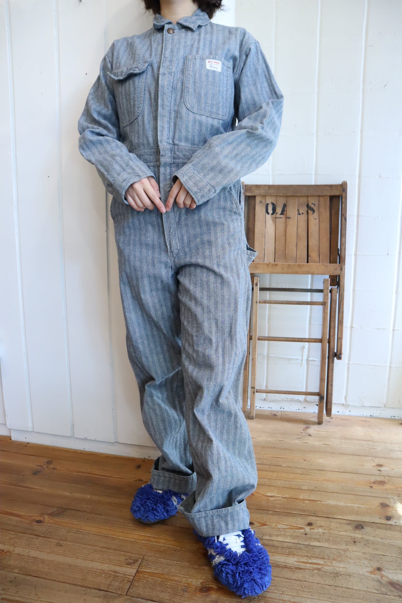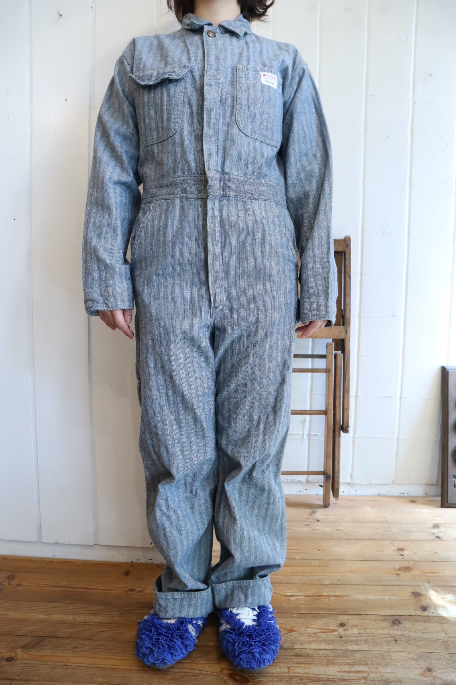 60s BIGMAC blue herringbone jumpsuit [l-4791]