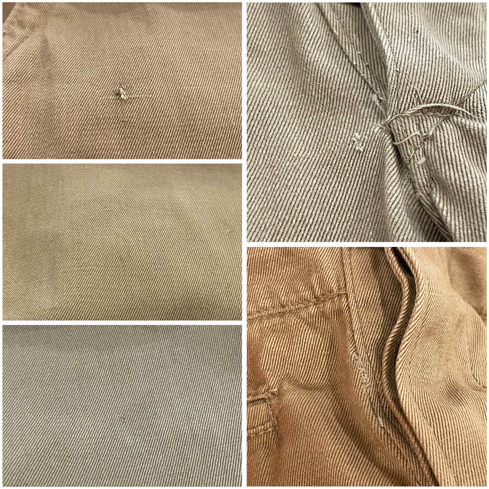 素材特有のキズや一部リペア跡、いくつかシミや汚れが見受けられますが、古着の味として着て頂けるかと思います。
