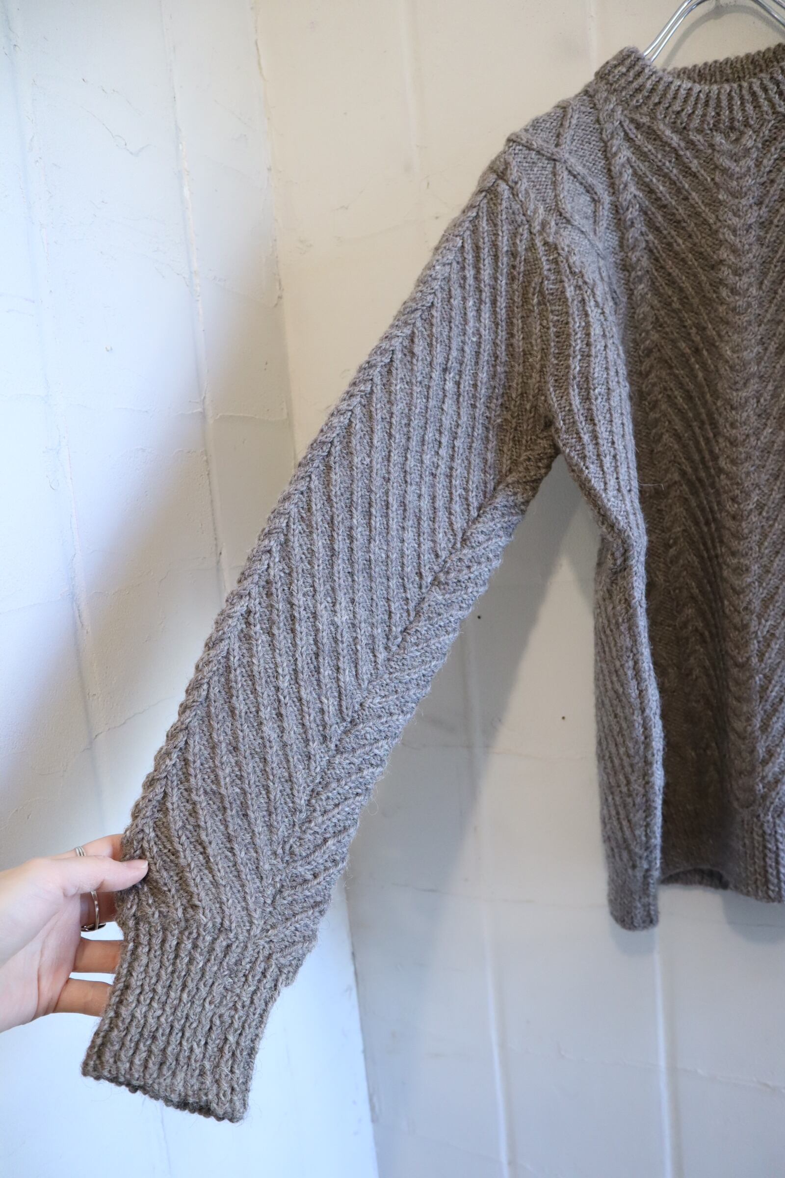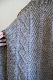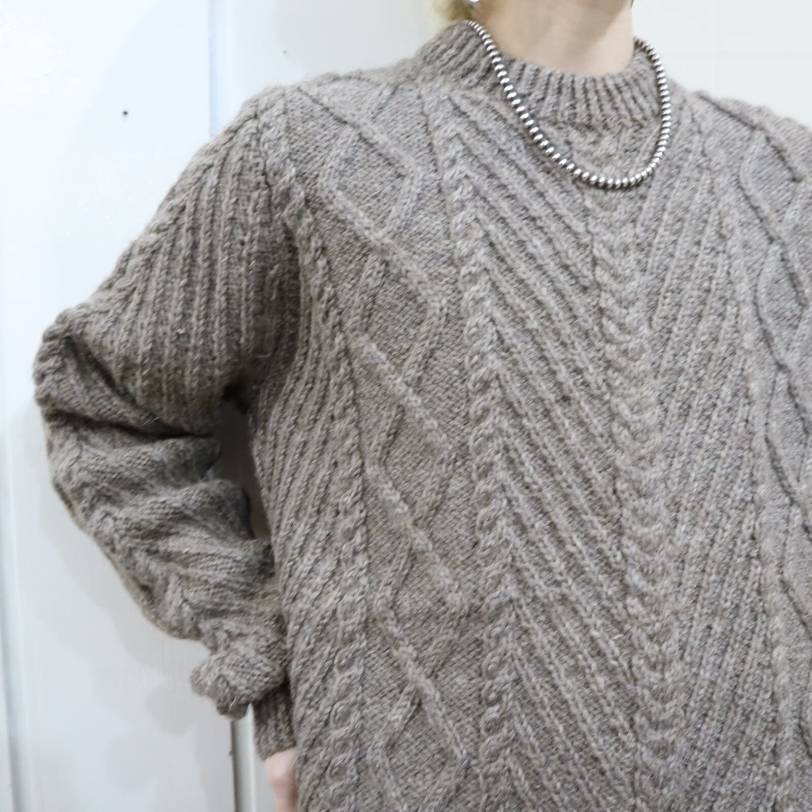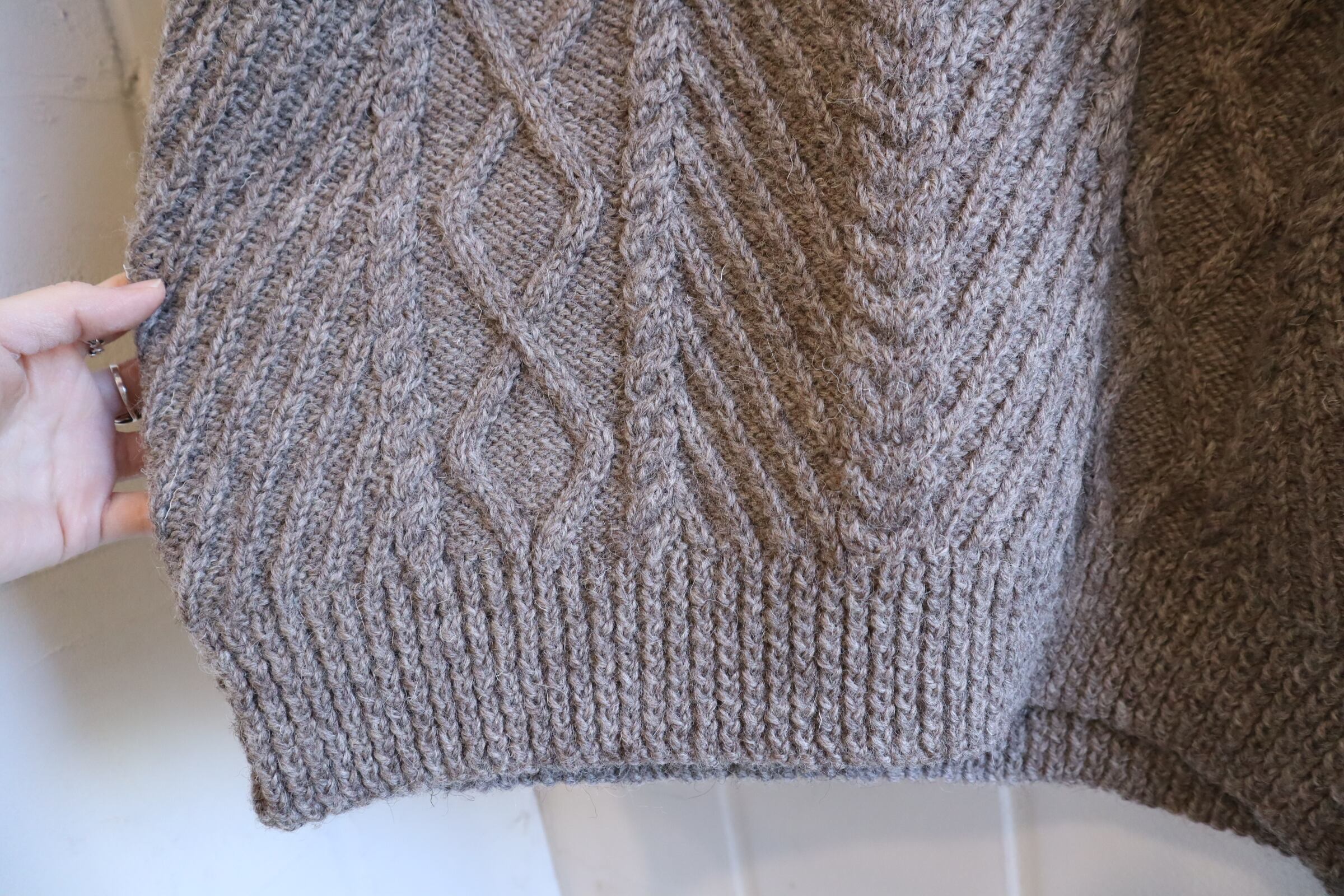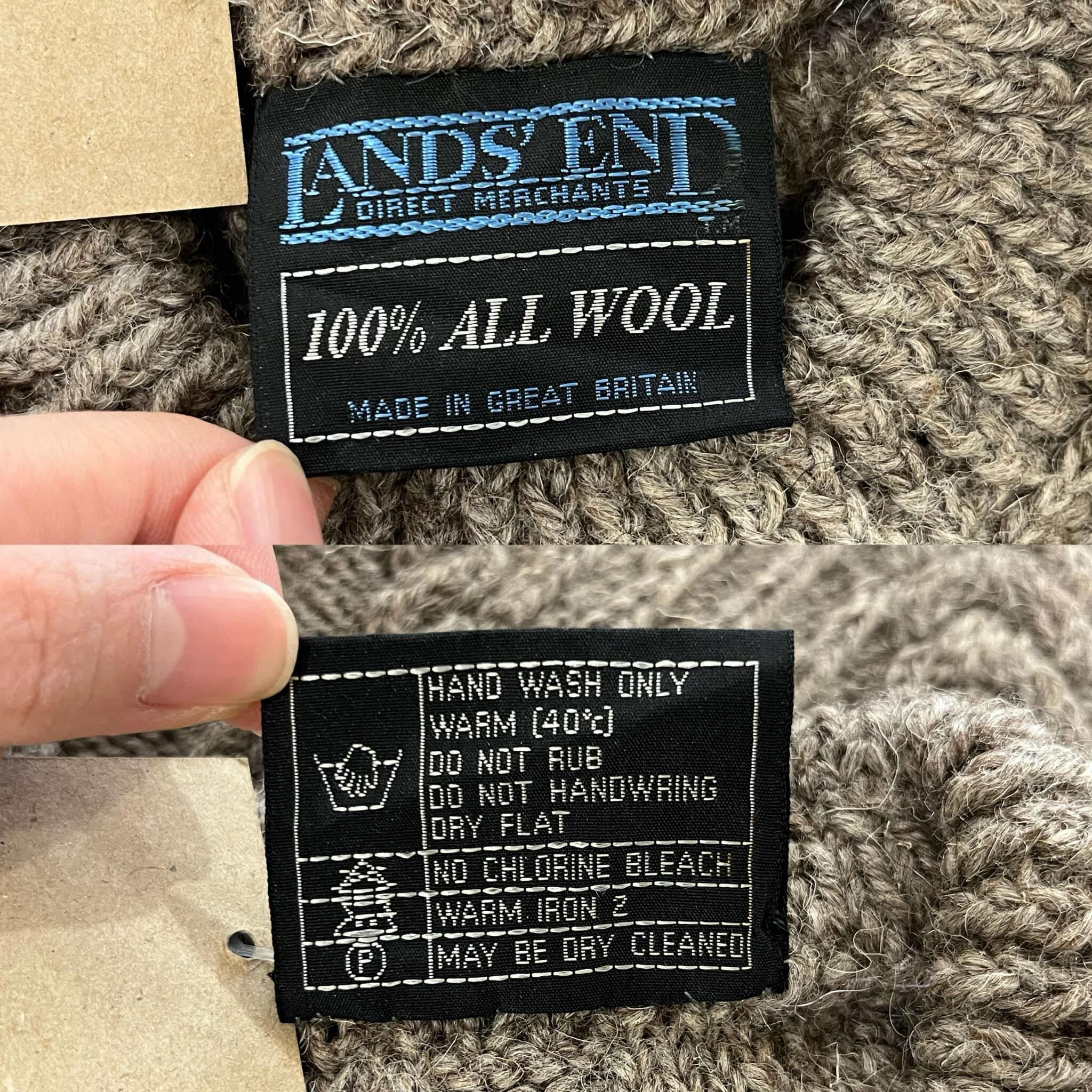 首が詰まったシルエットが特徴的なLANDS’ ENDのフィッシャーマンニットセーター。