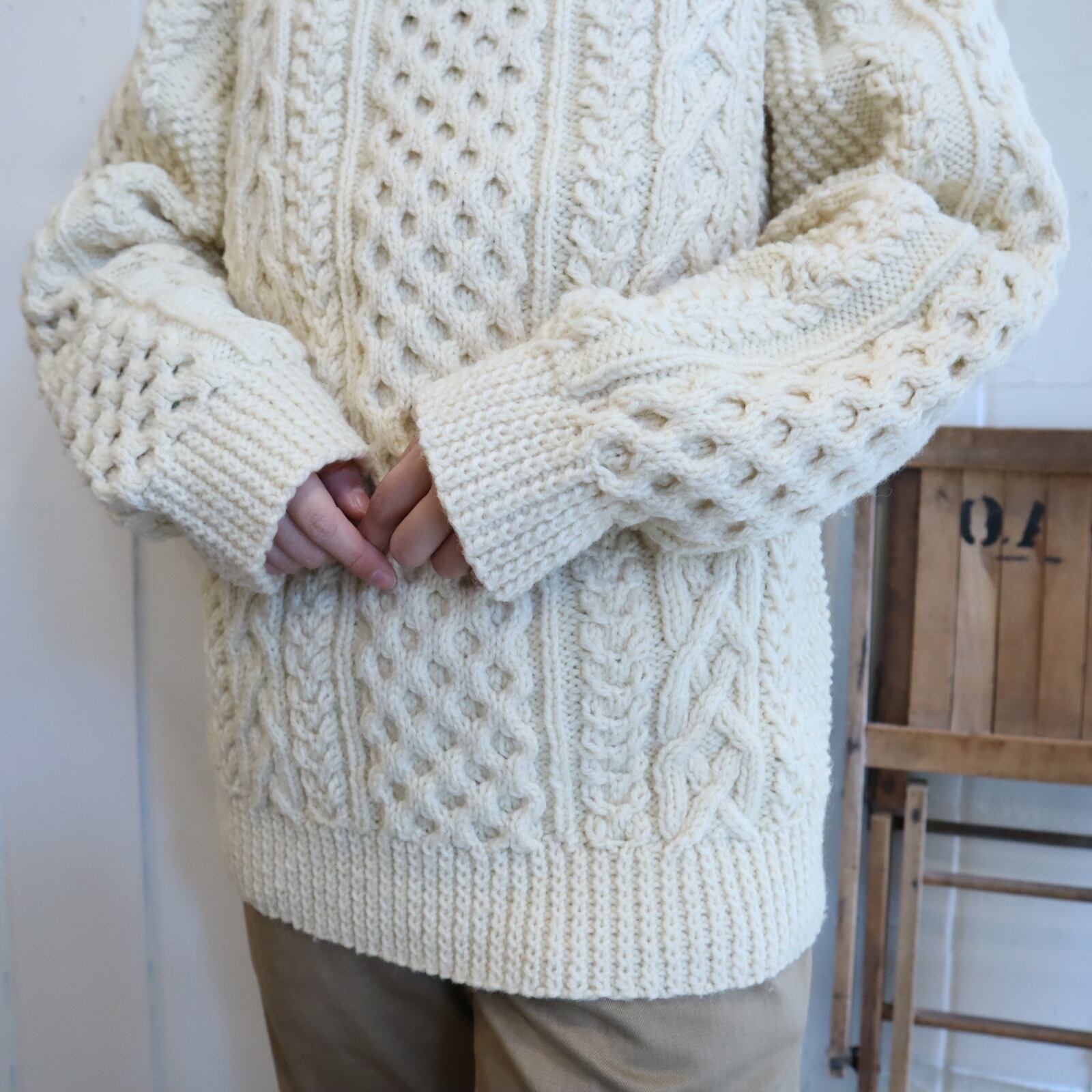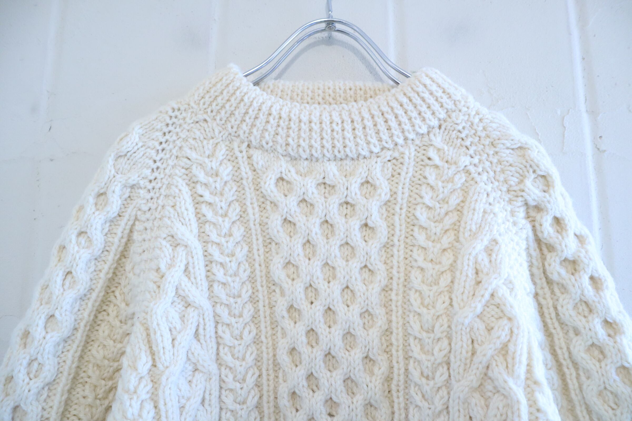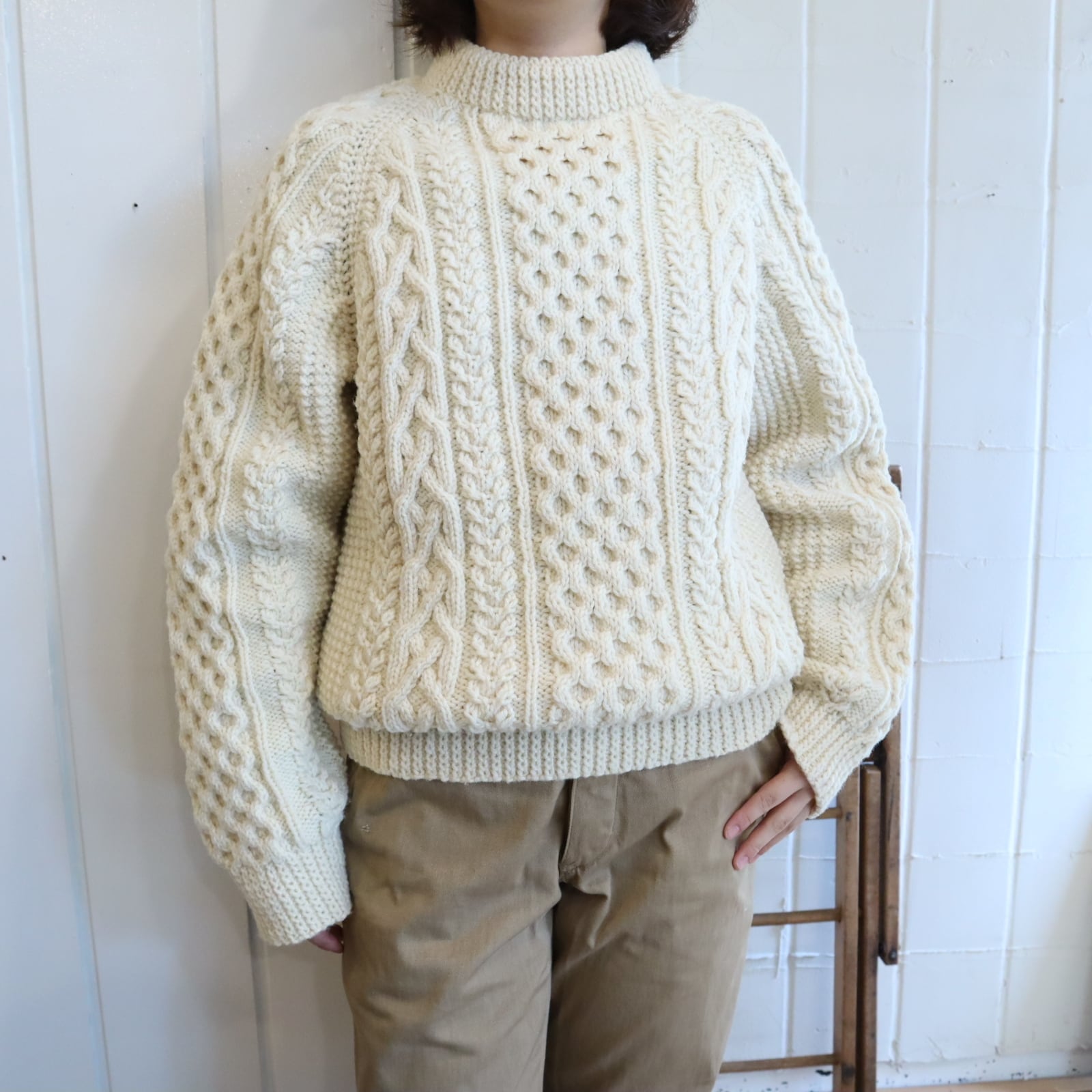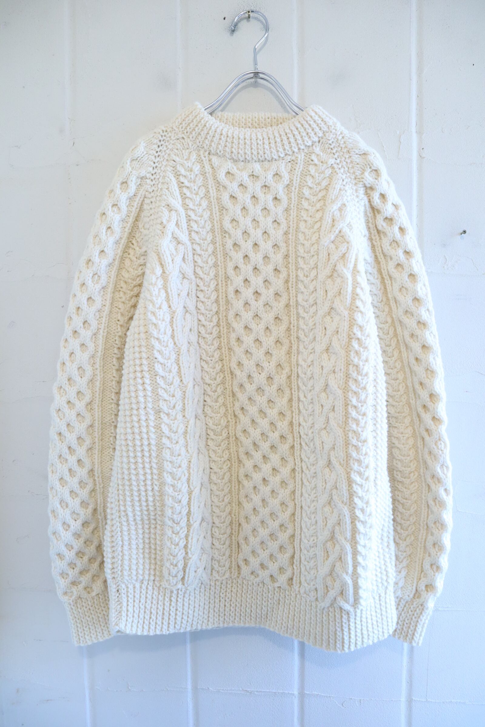 made in IRELAND offwhite fisherman knit pullover [l-4794]