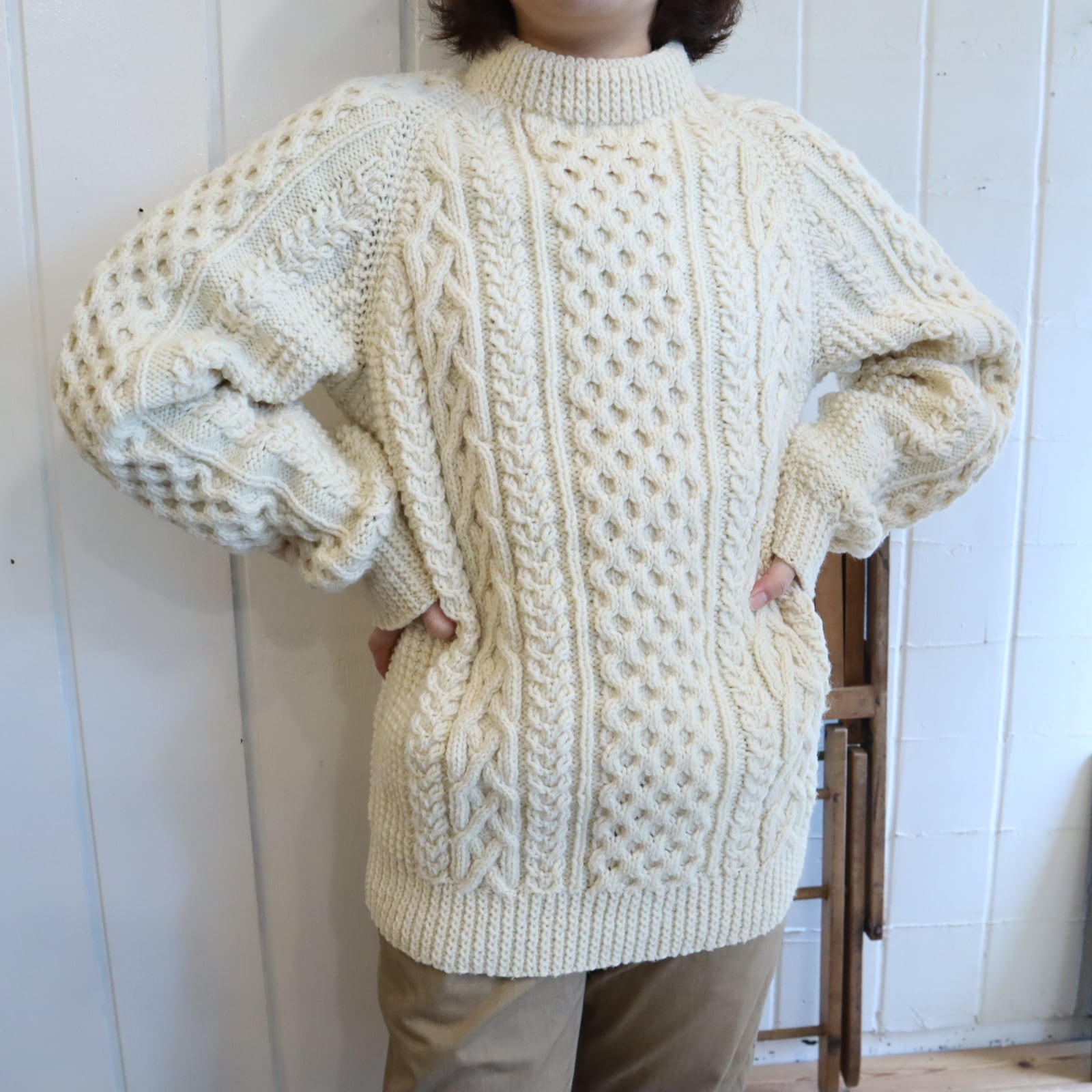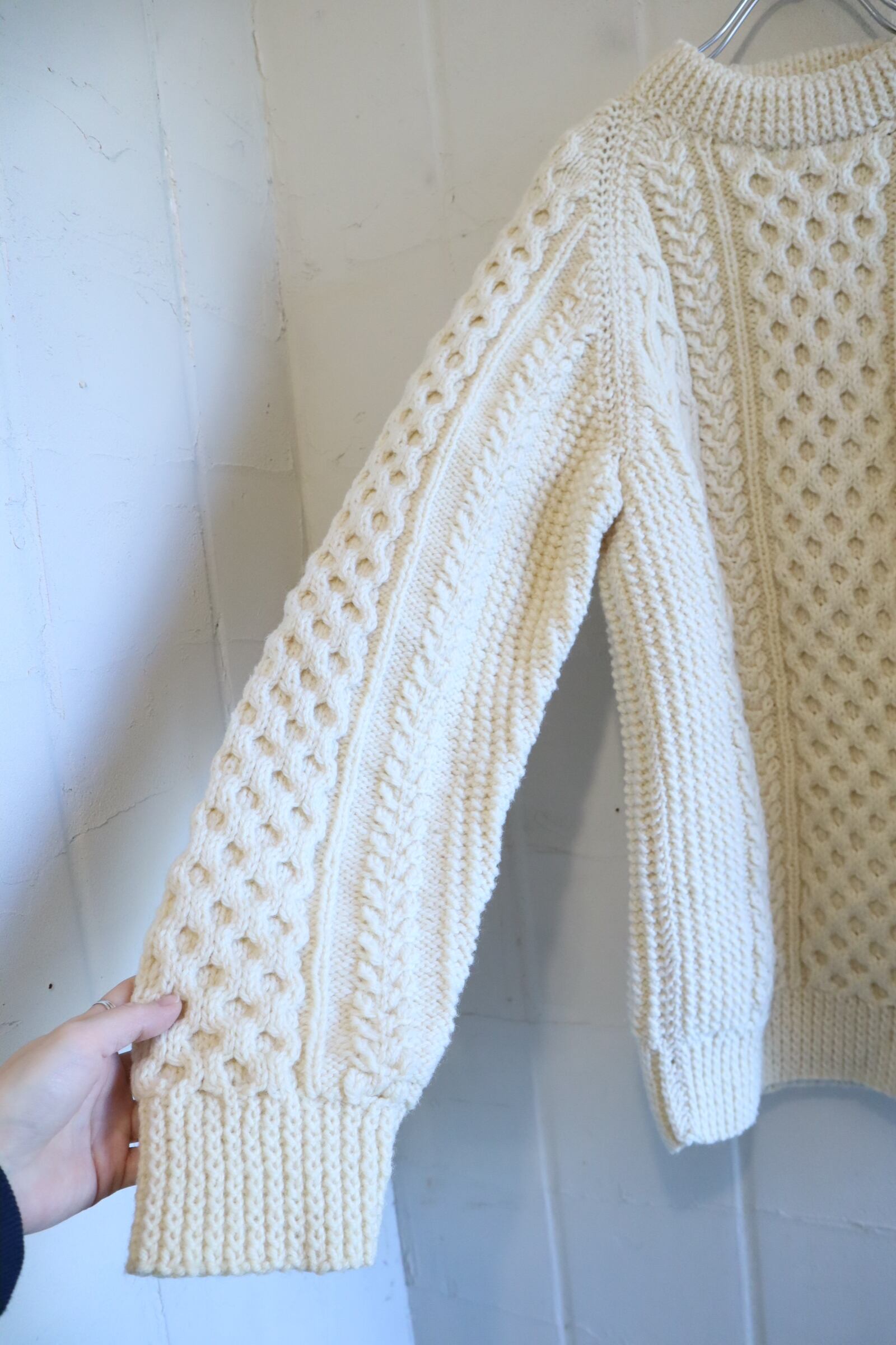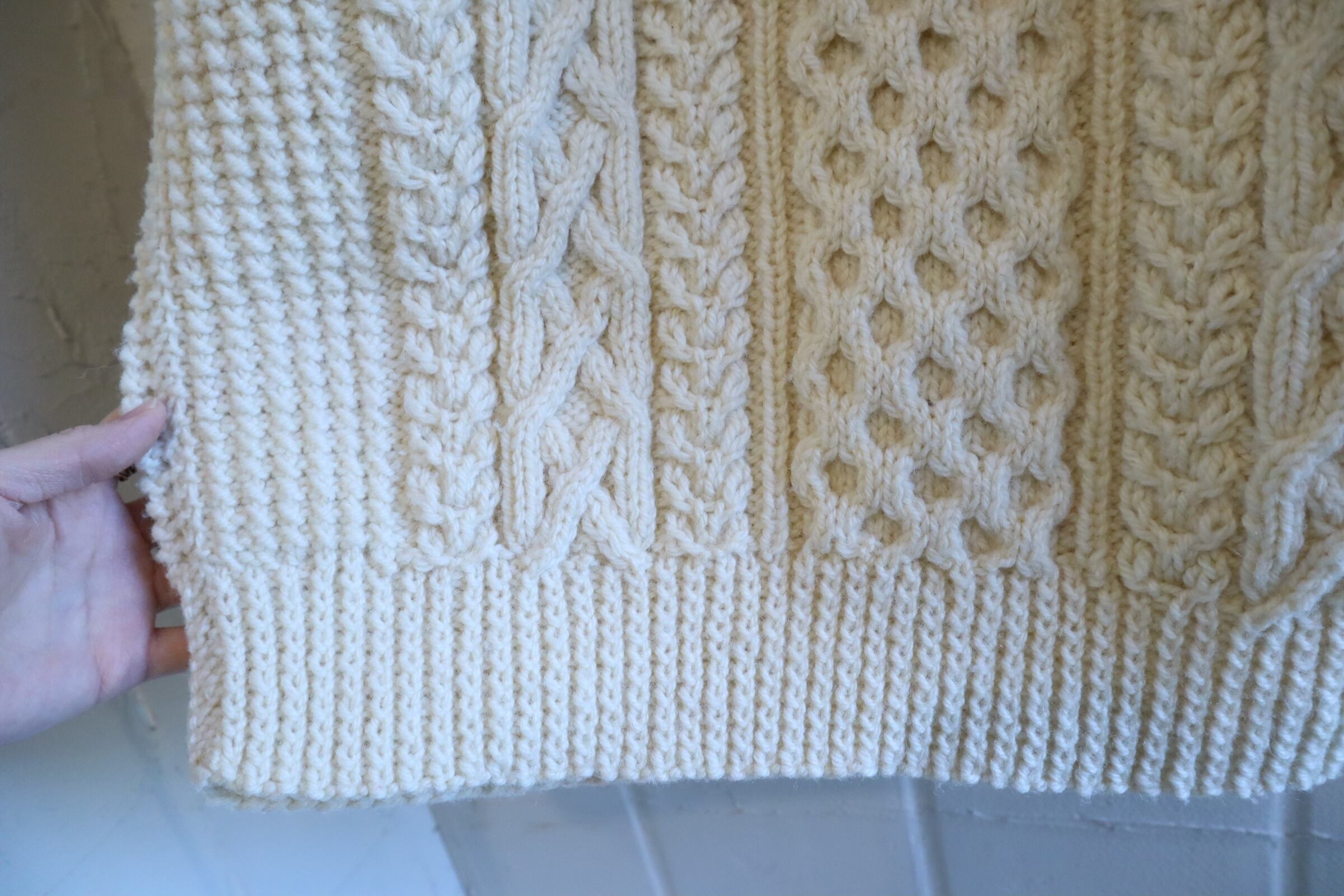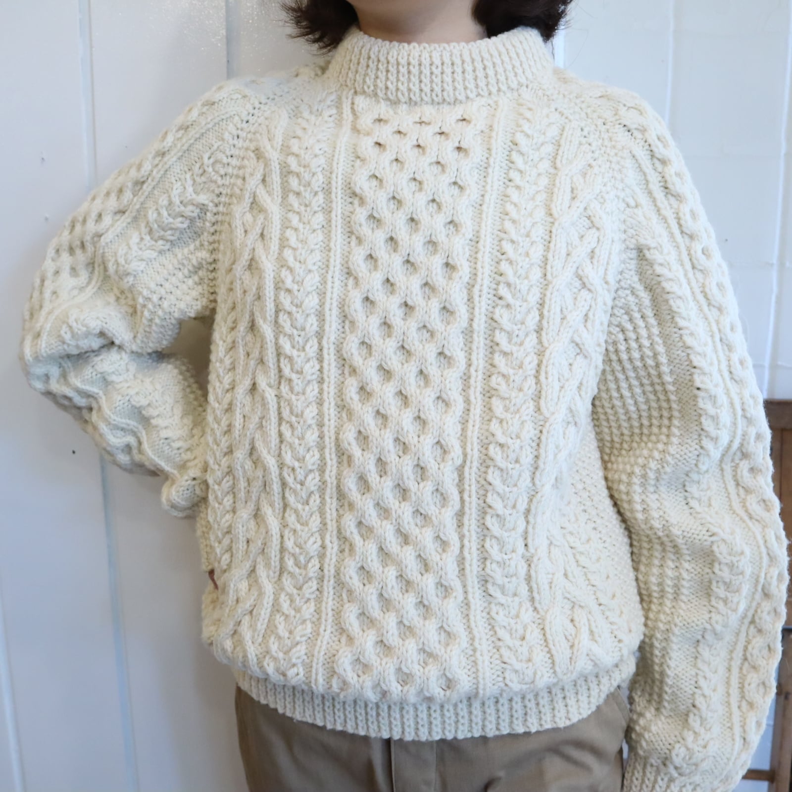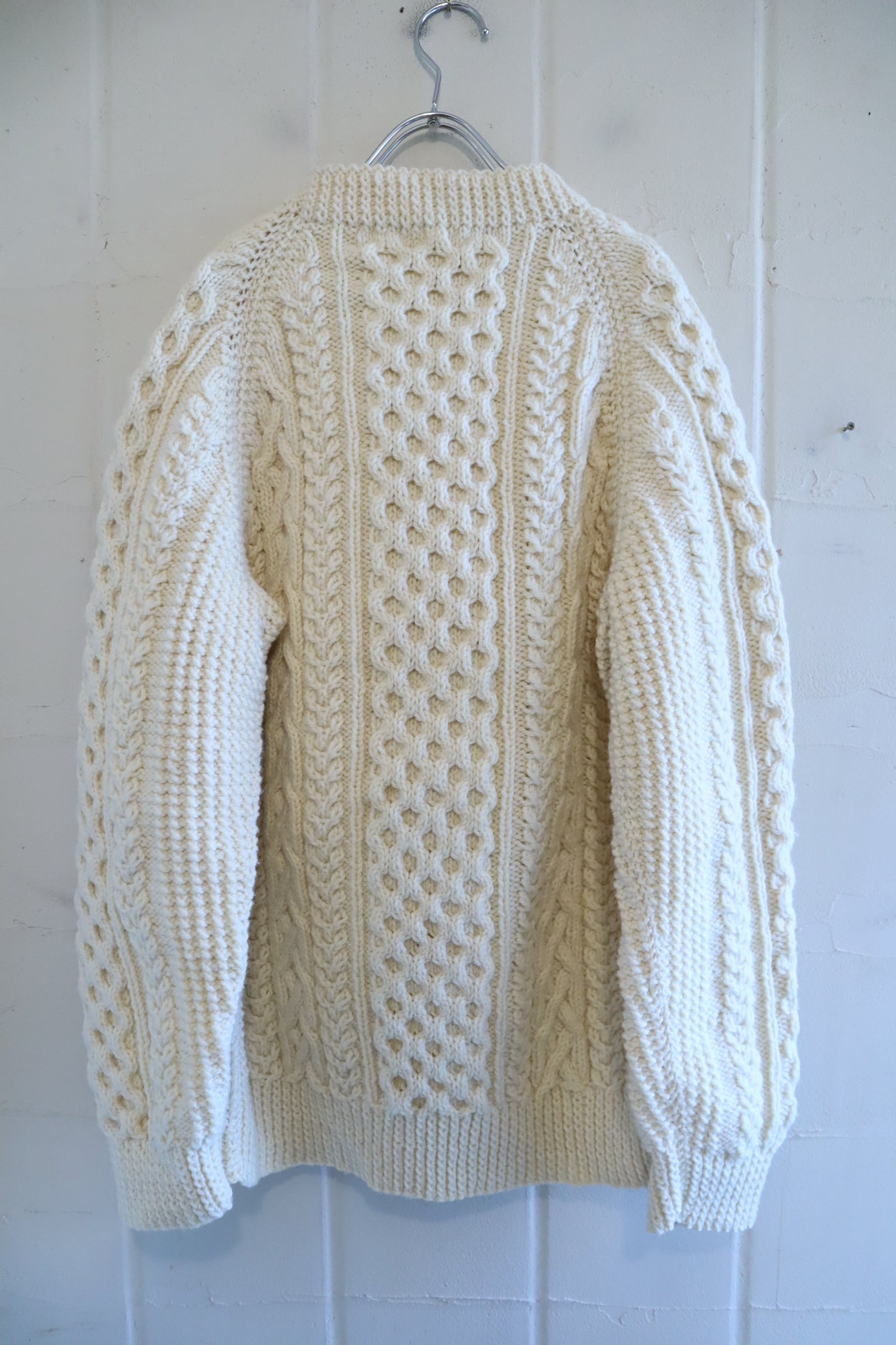 made in IRELAND offwhite fisherman knit pullover [l-4794]