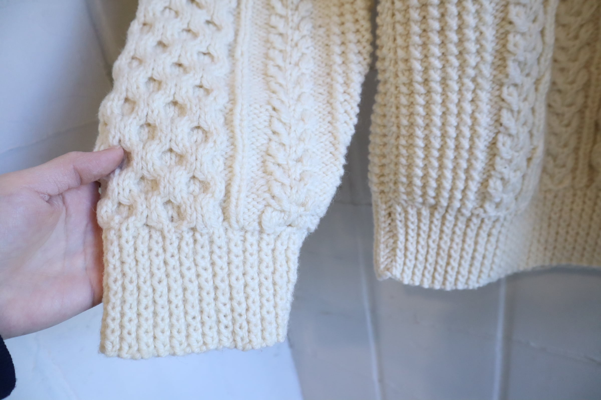 つな編みがとても可愛いフィッシャーマンニットセーター。