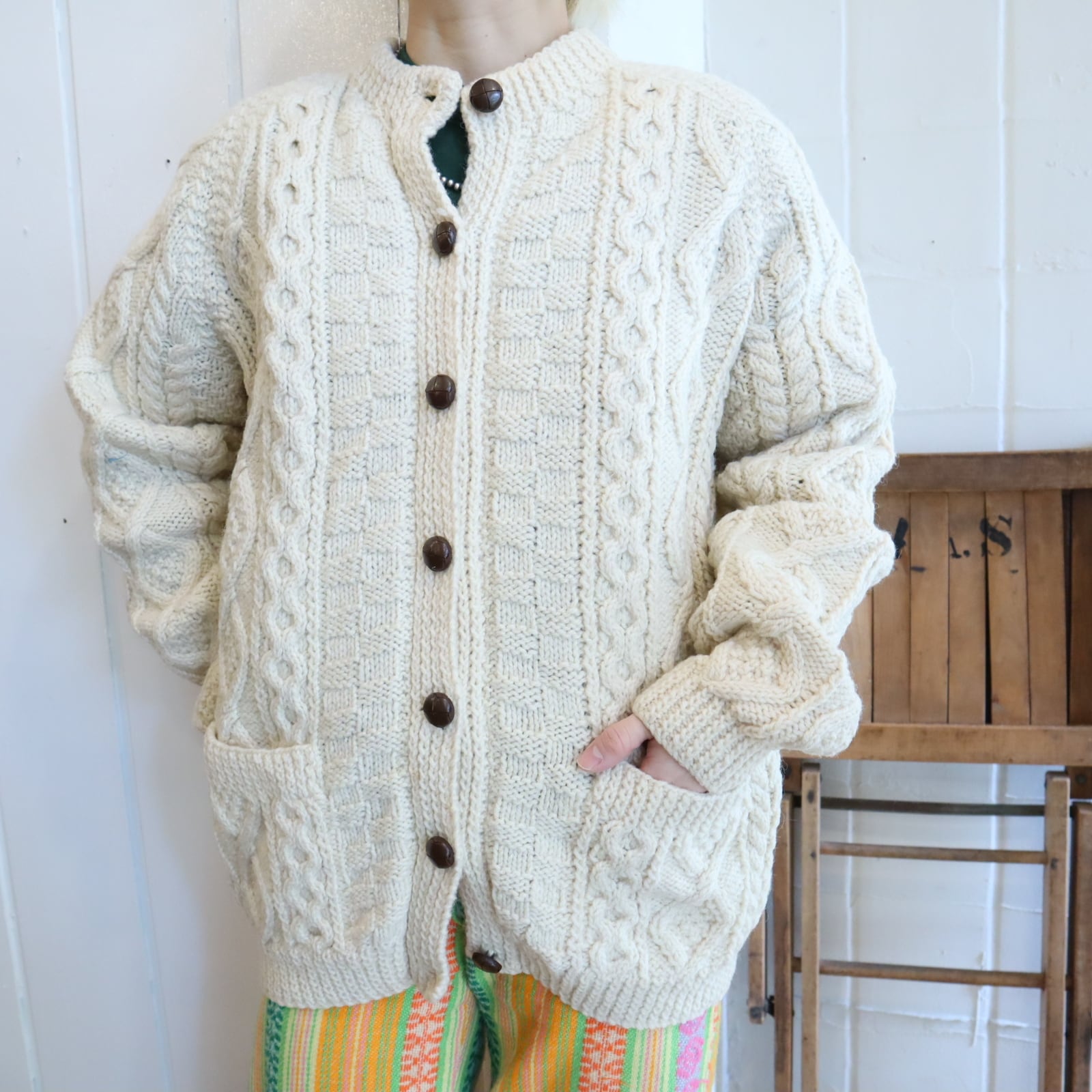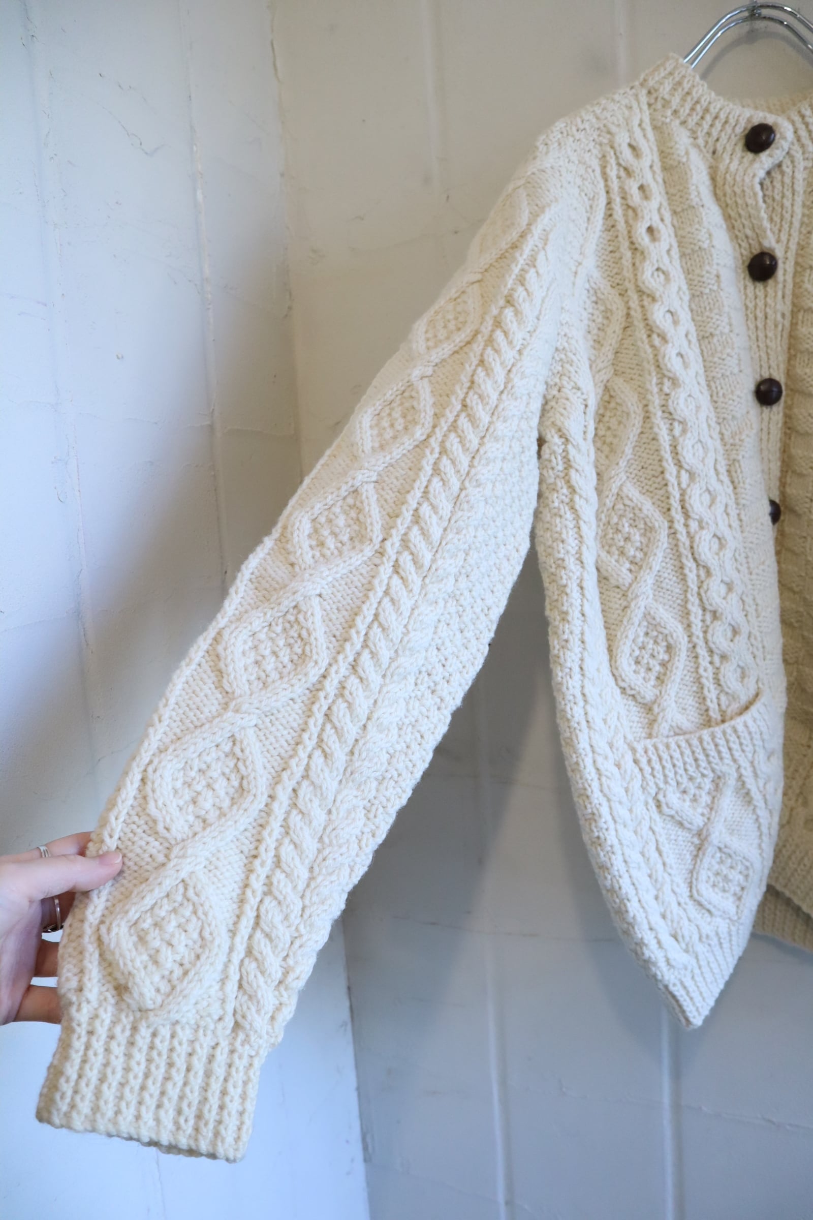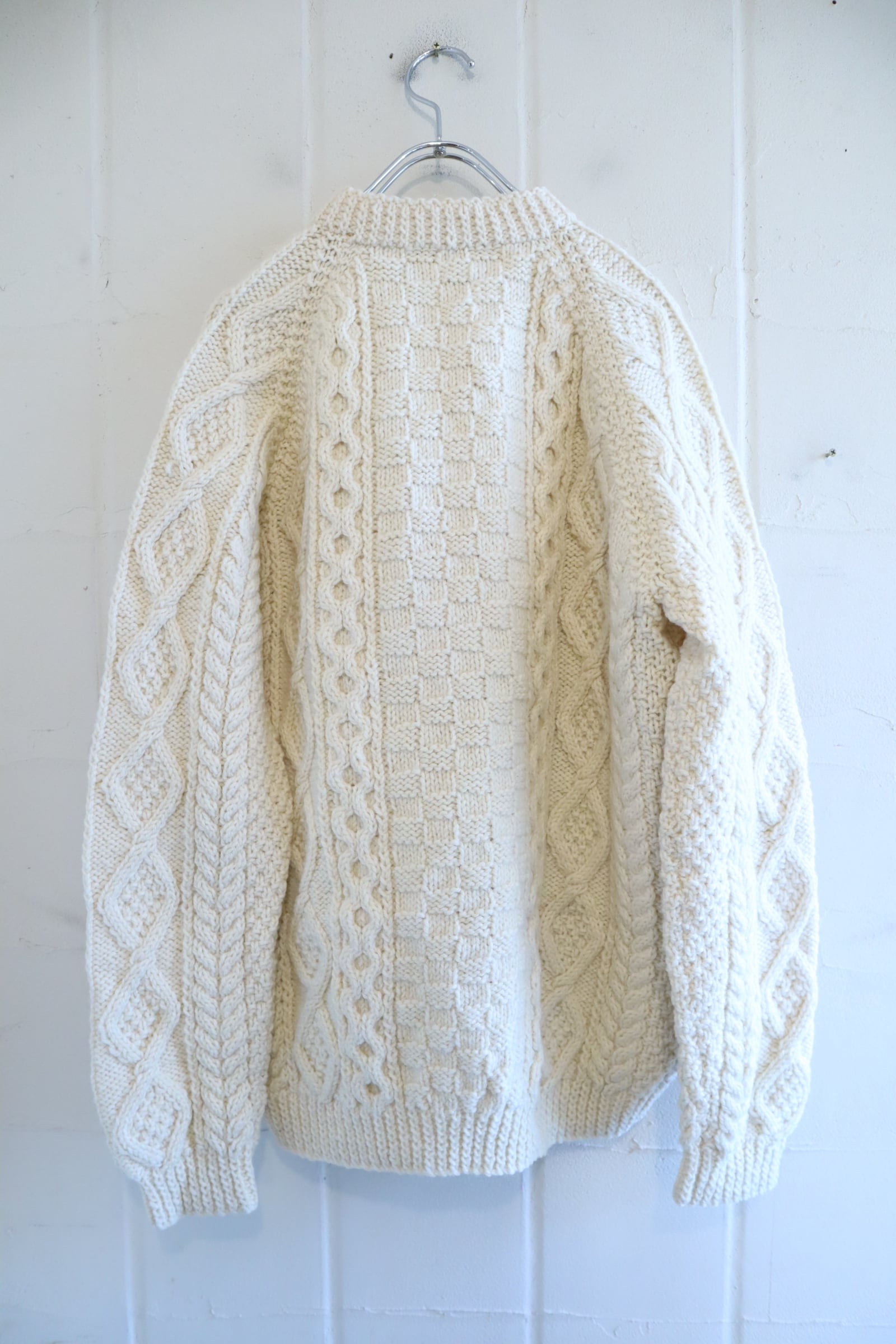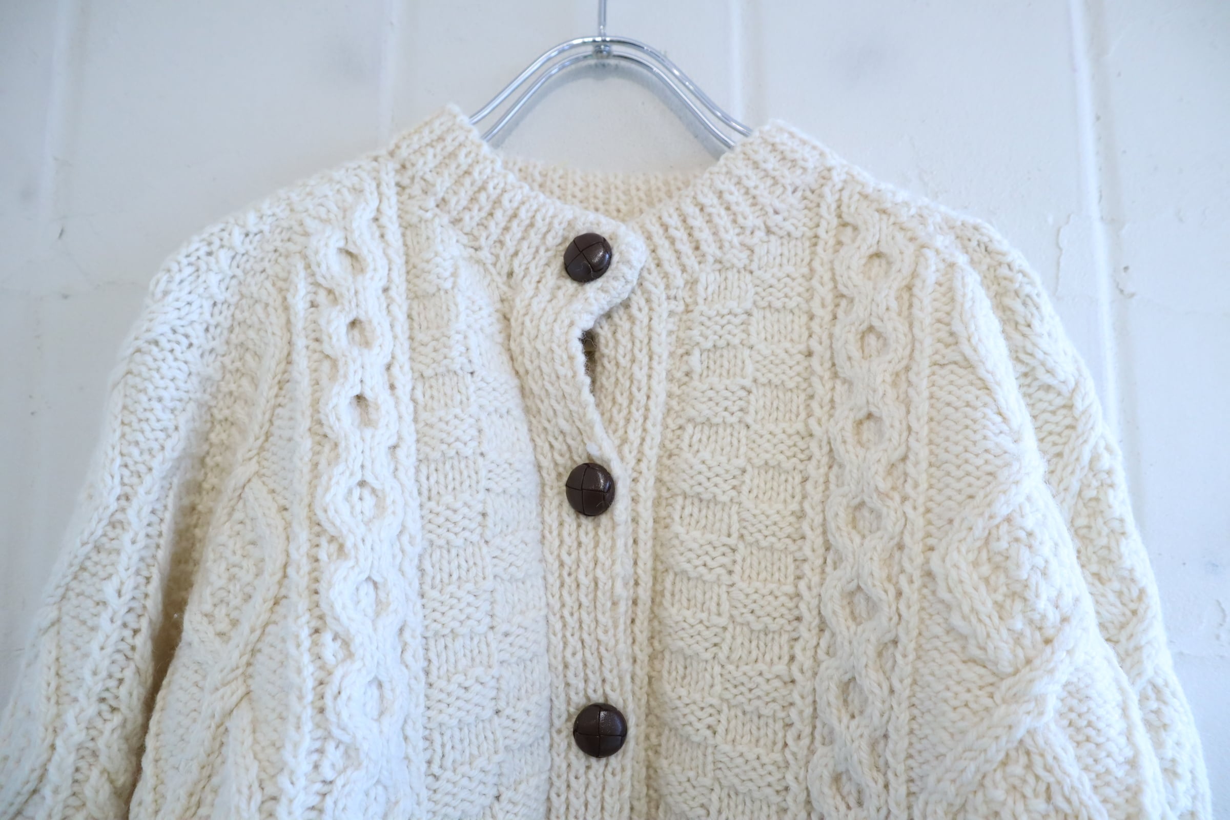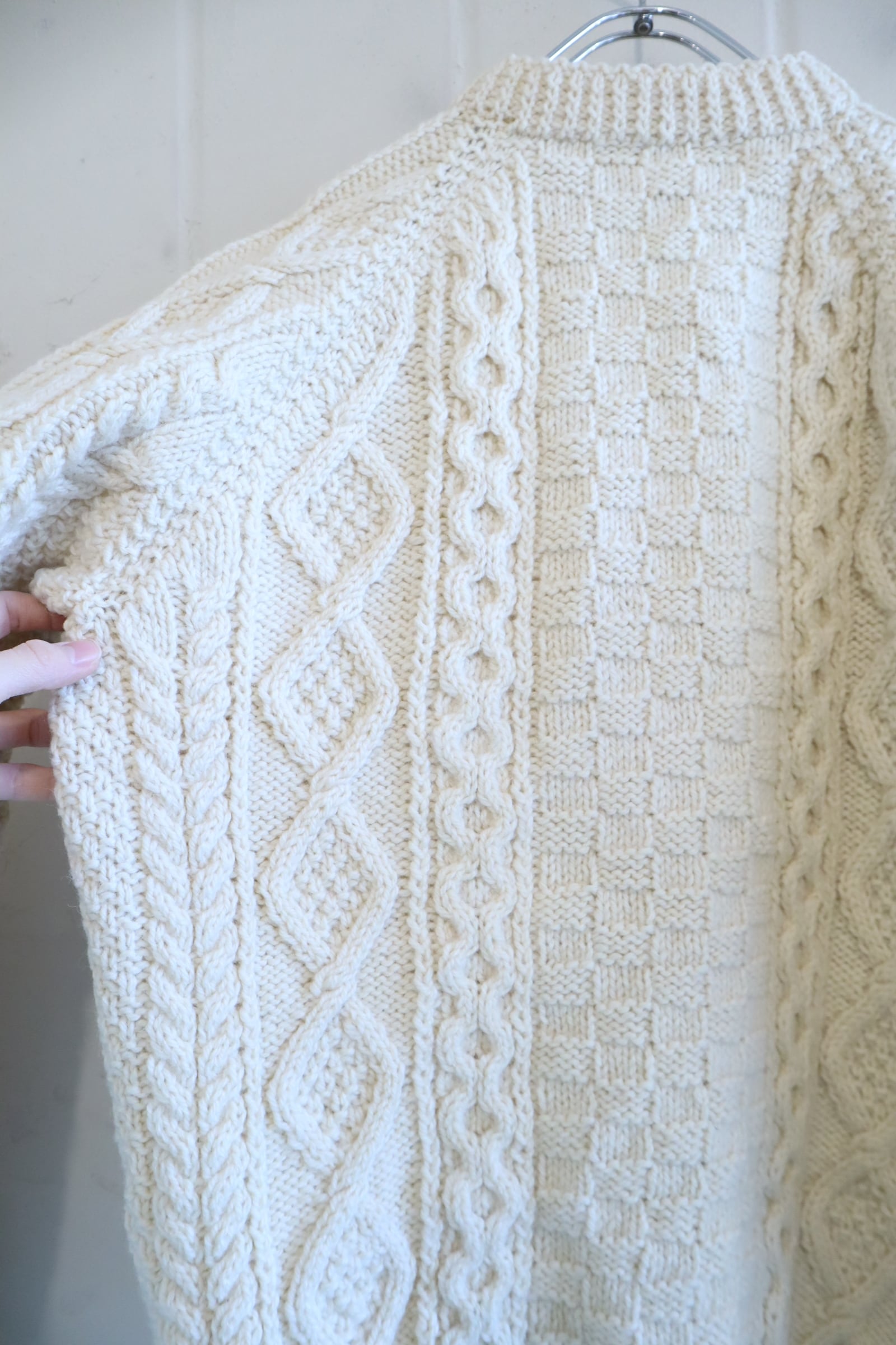 made in IRELAND offwhite fisherman knit cardigan [l-4795]