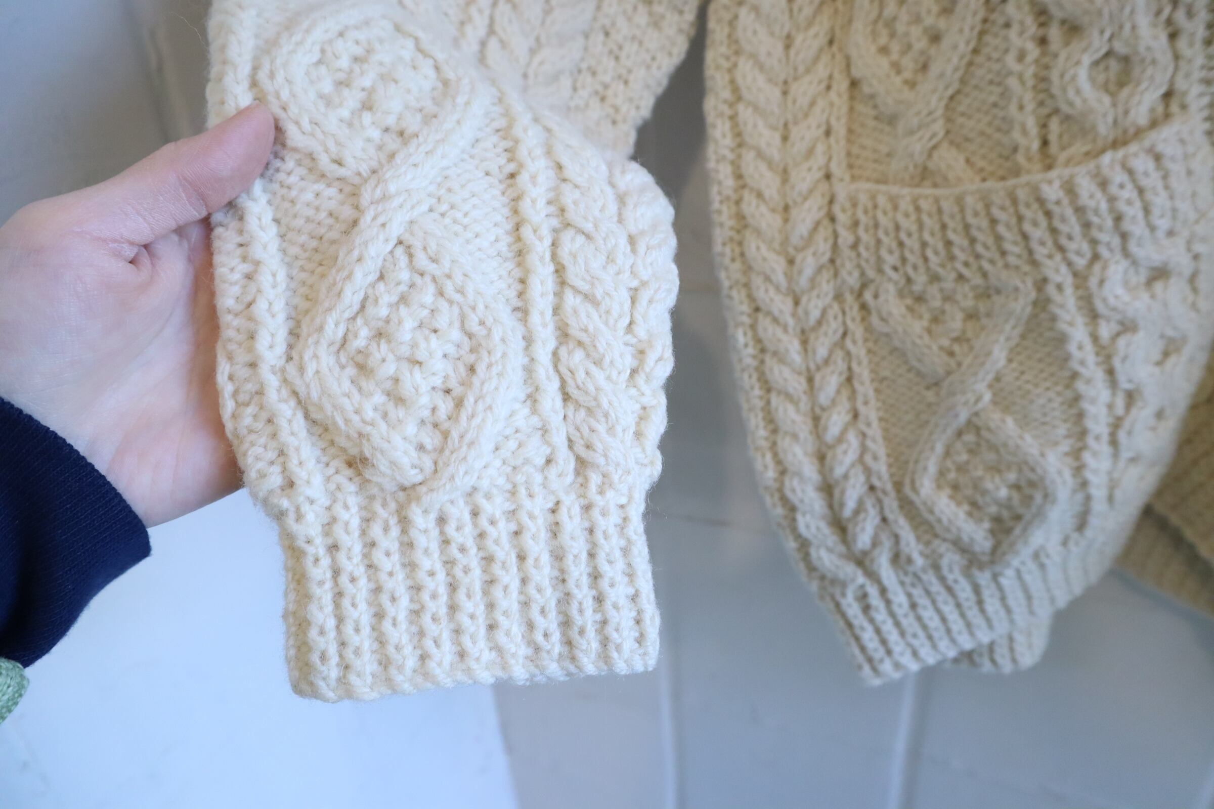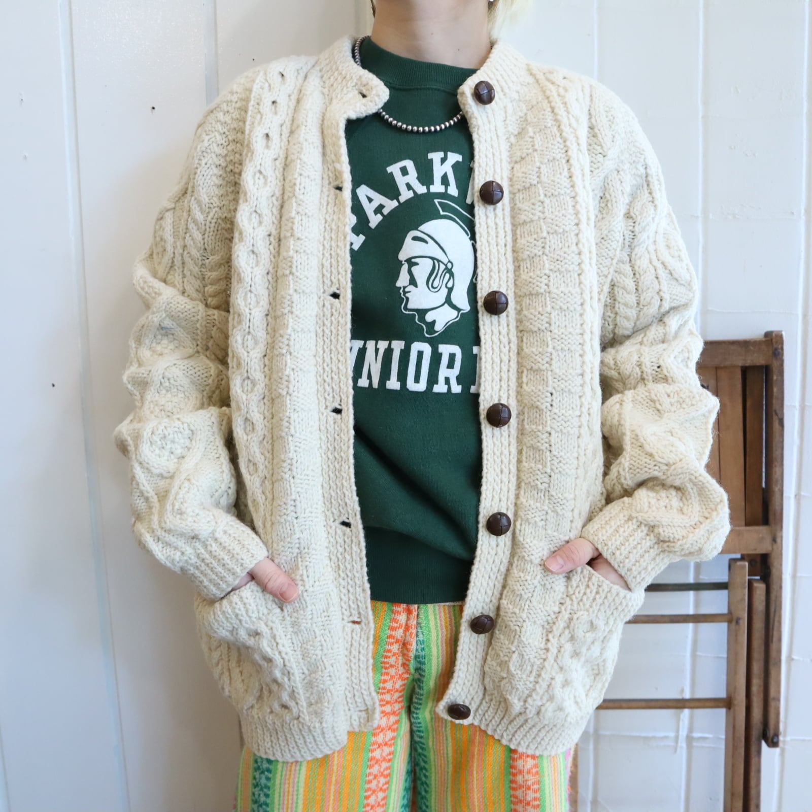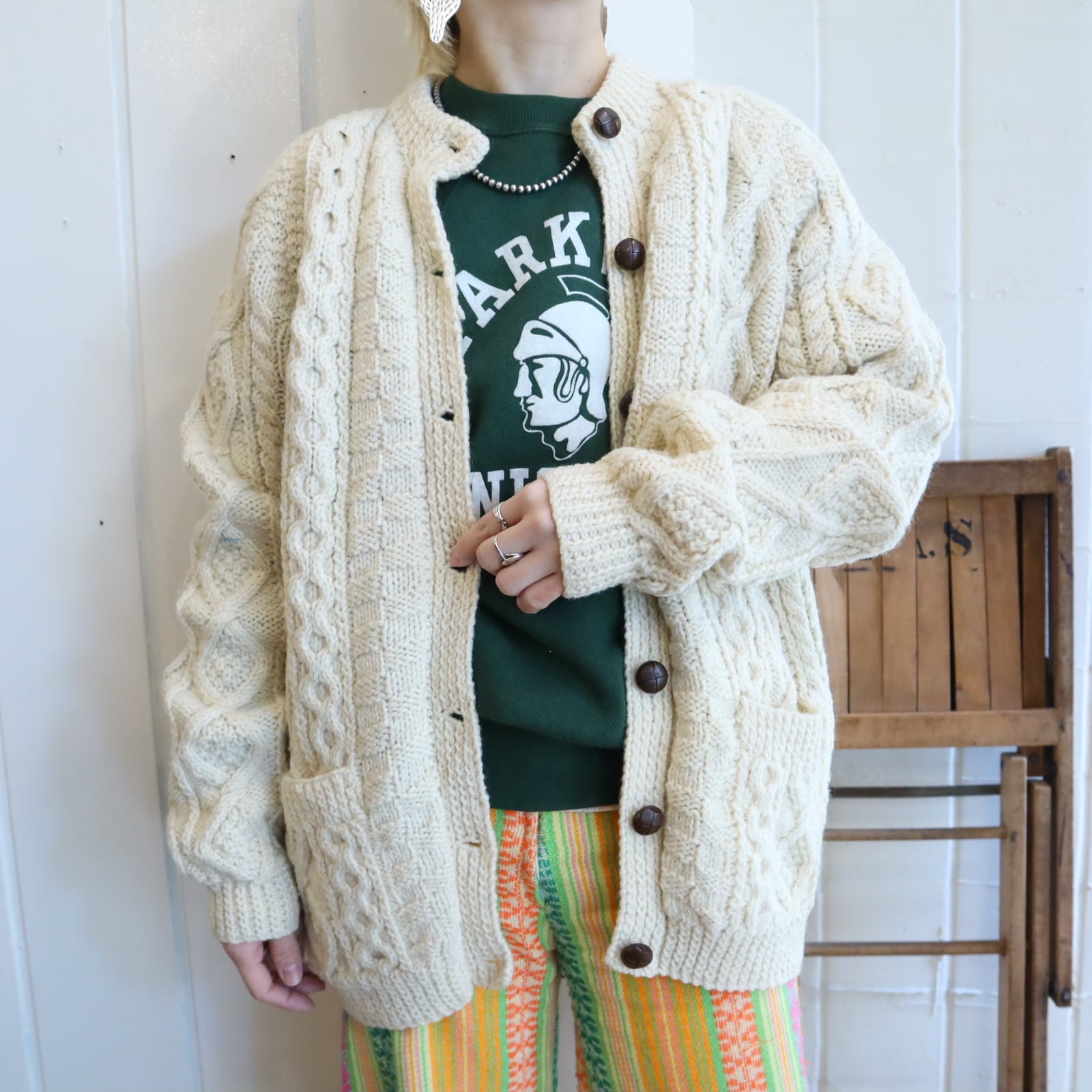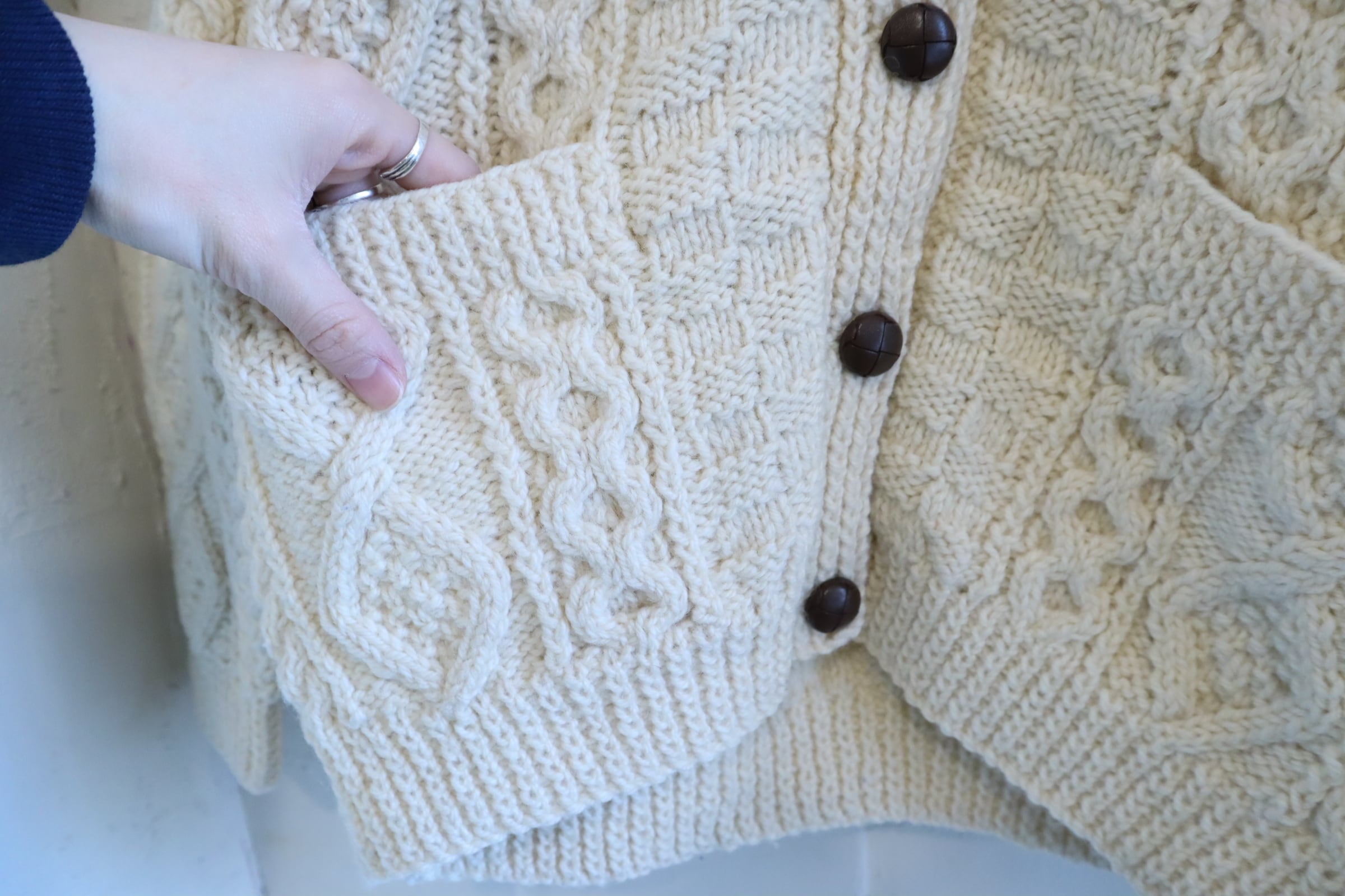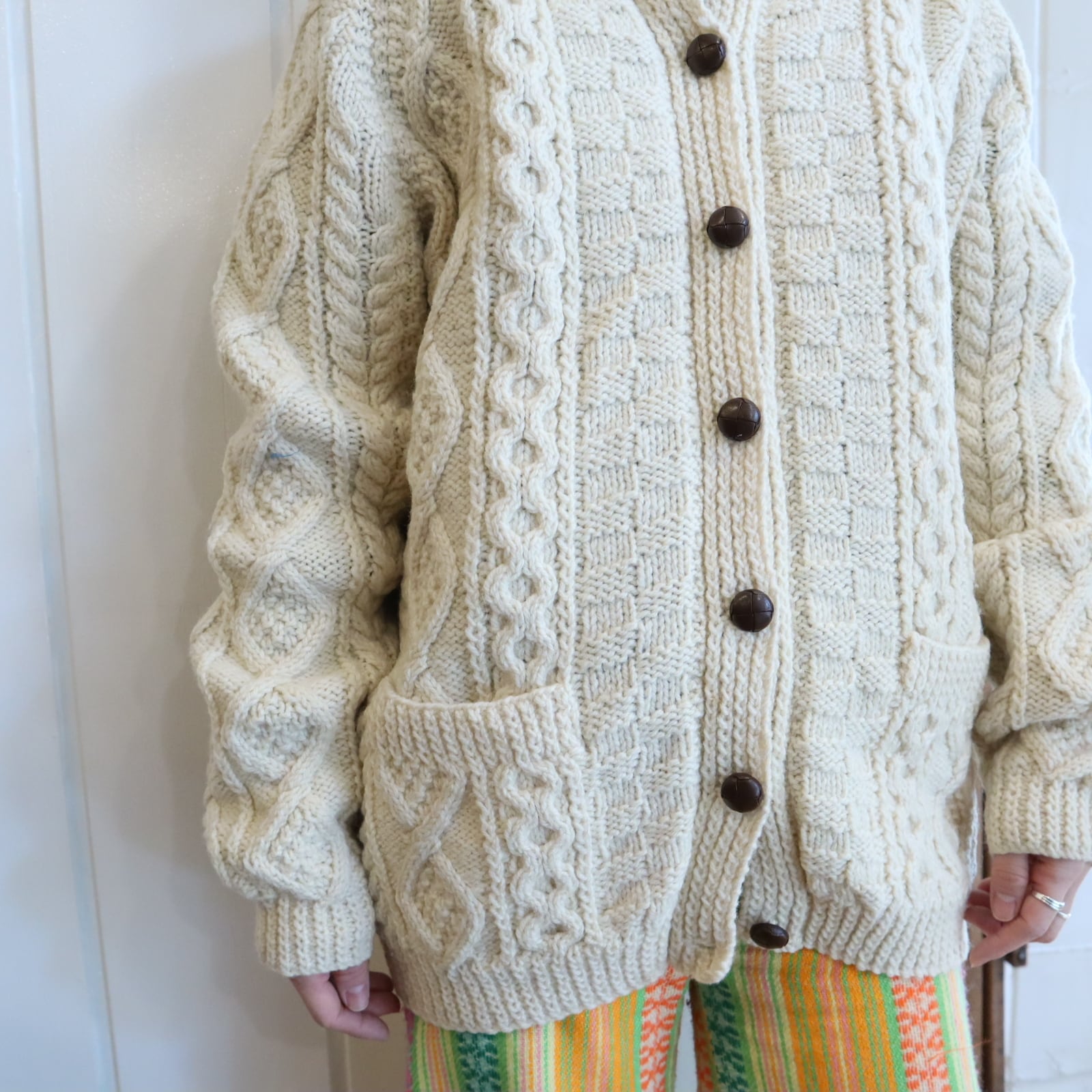 made in IRELAND offwhite fisherman knit cardigan [l-4795]