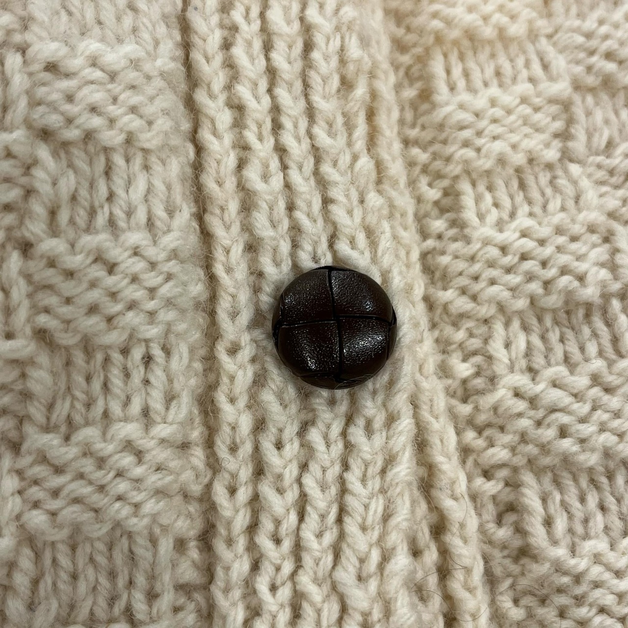 ブロックのような編み模様がとても可愛いフィッシャーマンニットカーディガン。