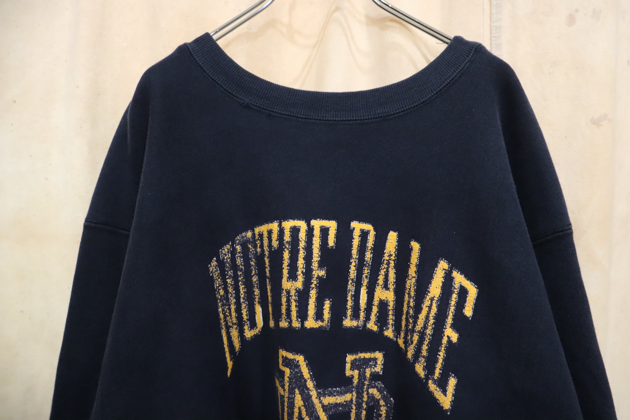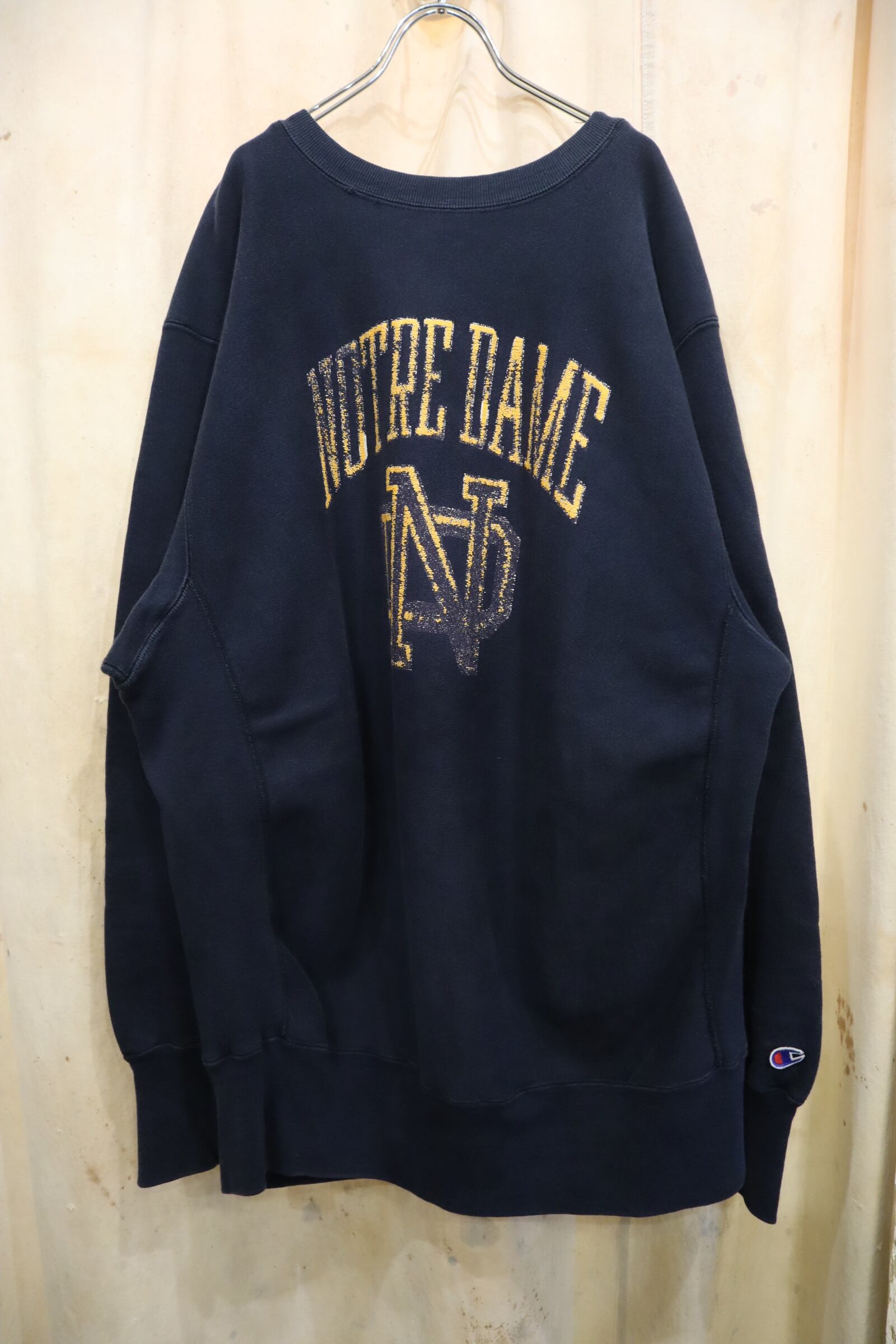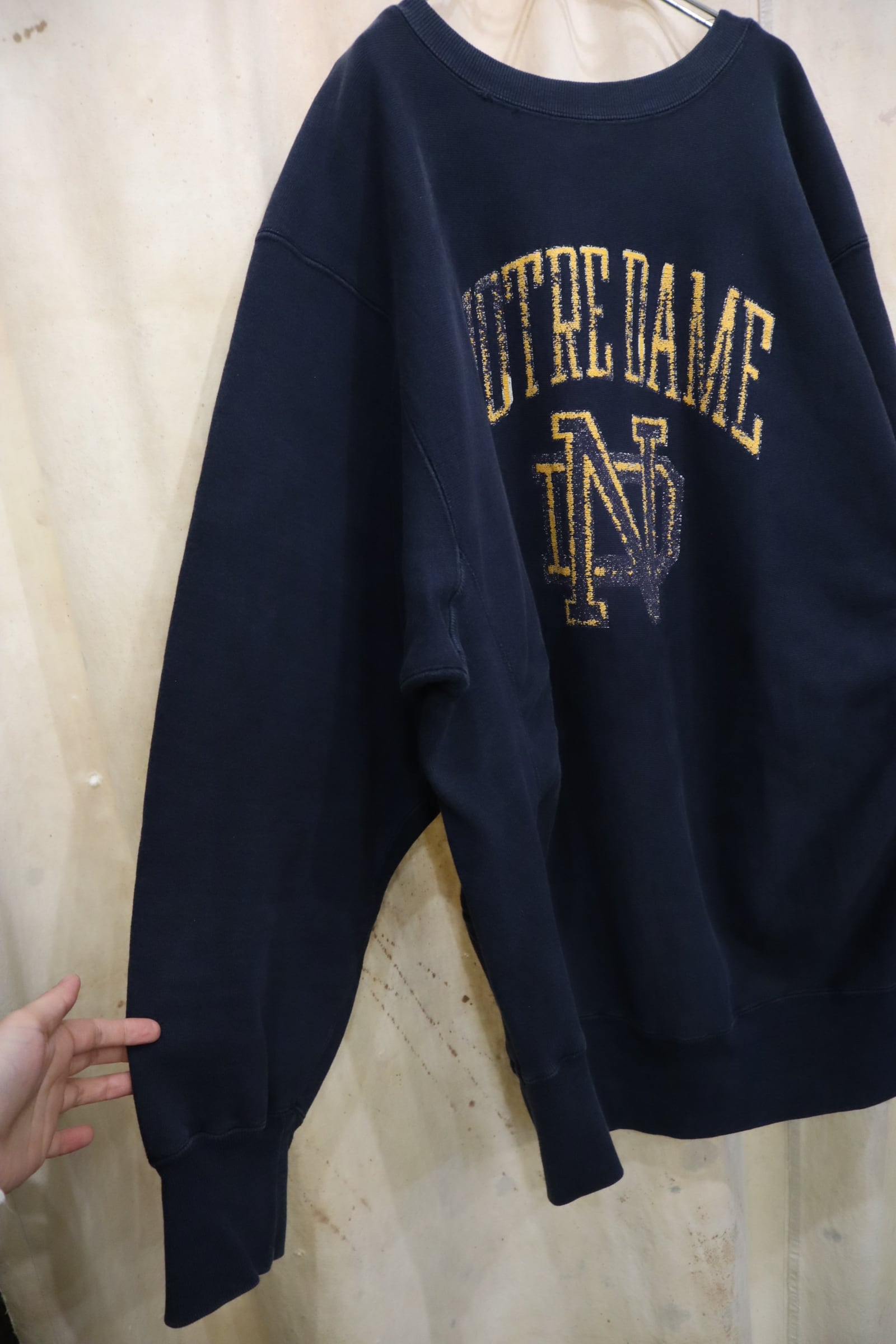 80s champion navy×yellow rubber print reverse weave sweat [k-4798]