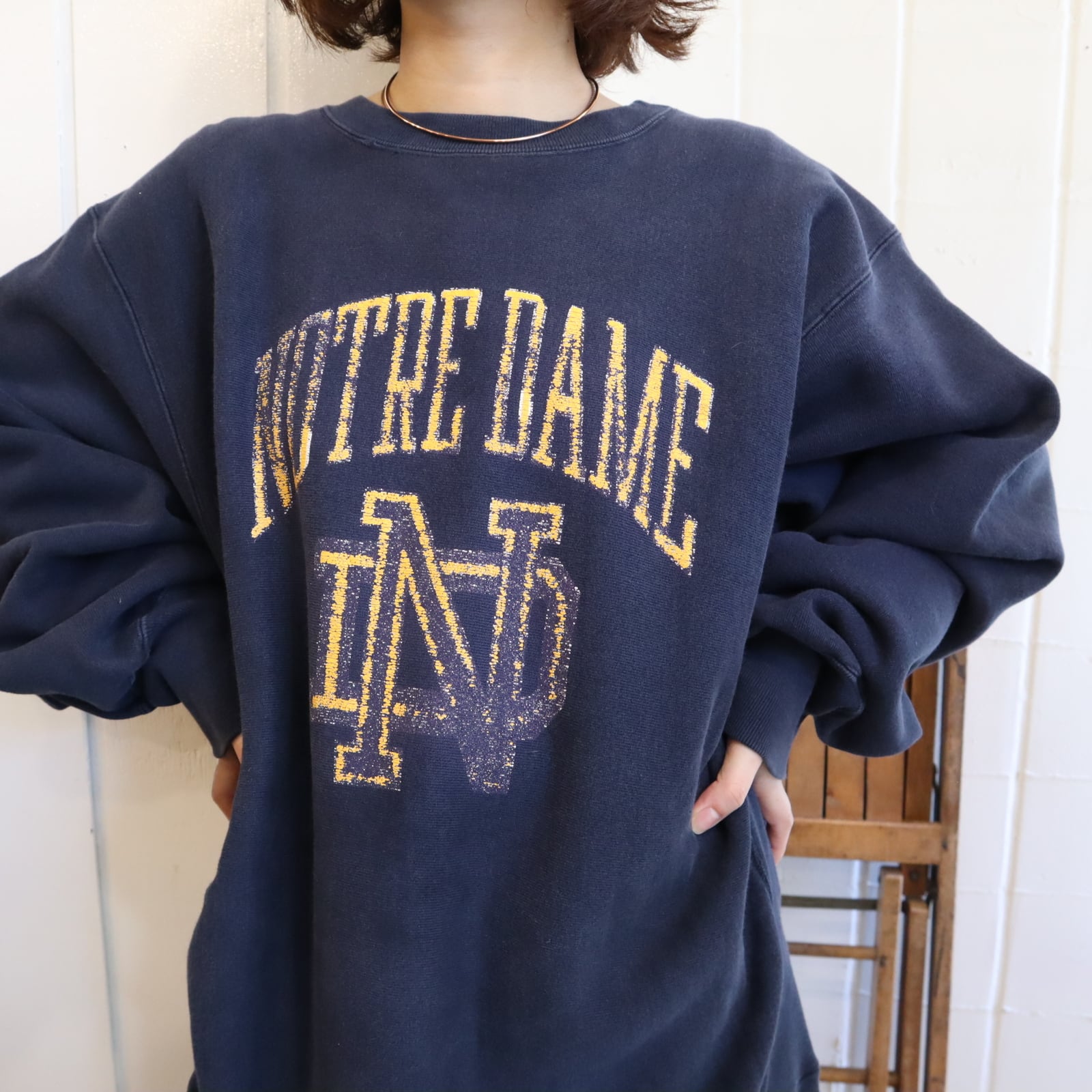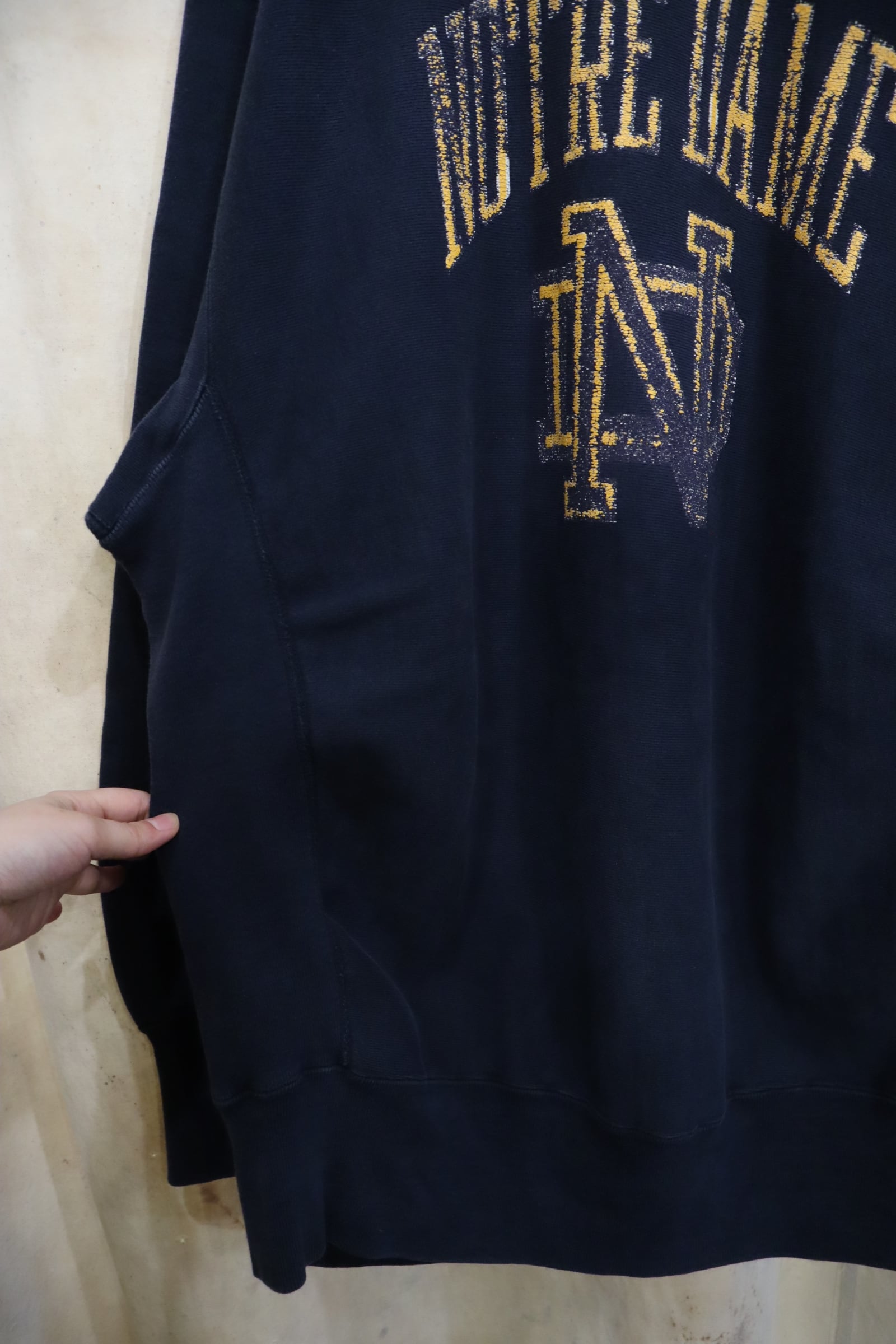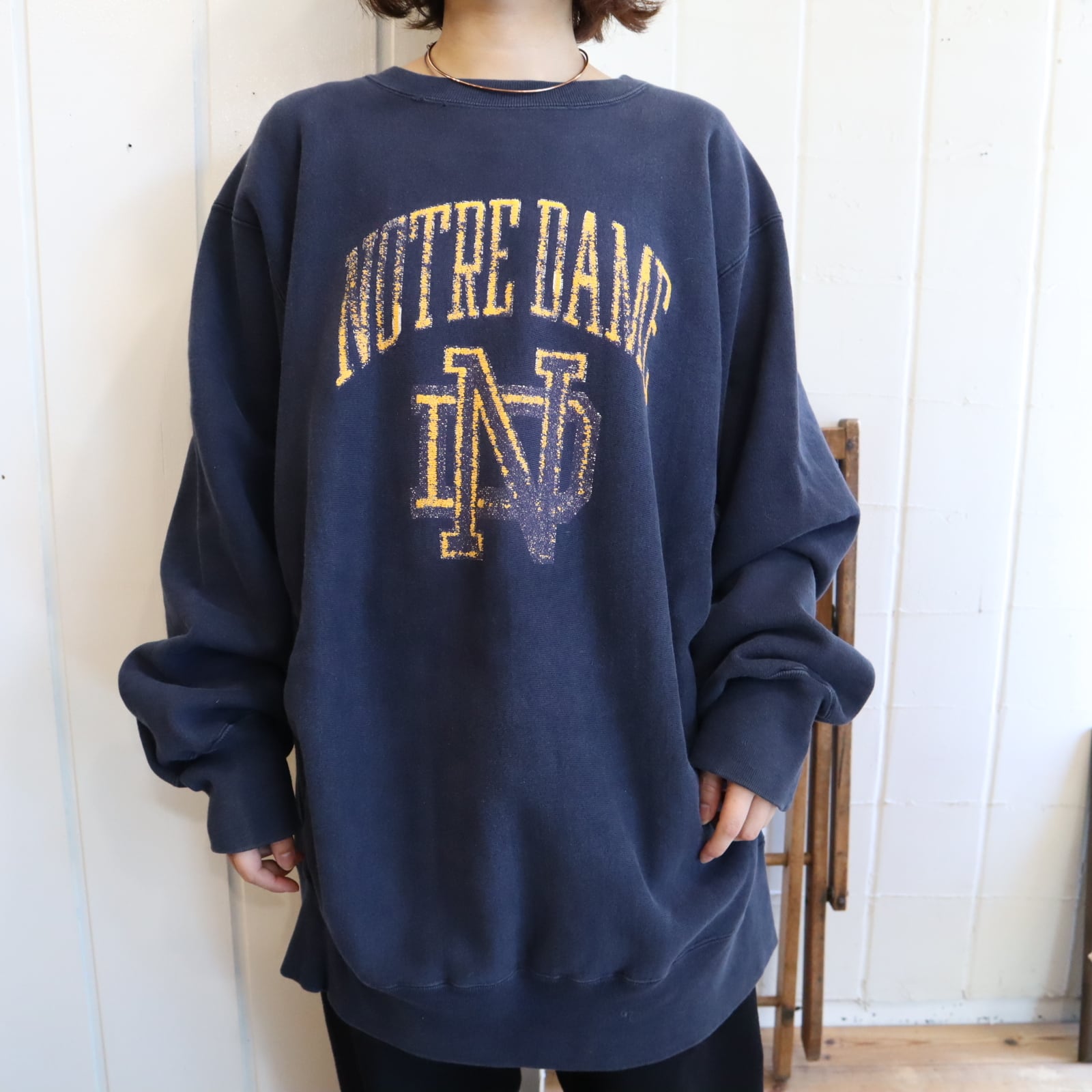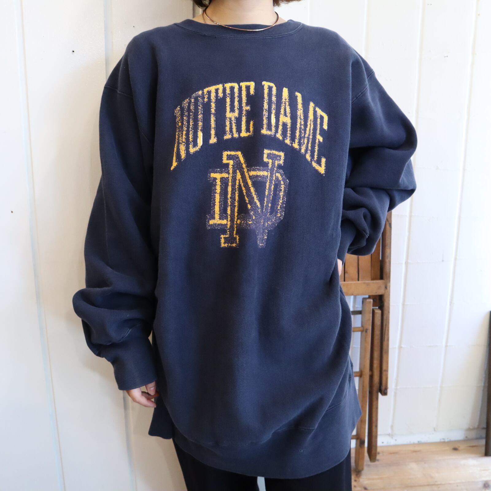 80s champion navy×yellow rubber print reverse weave sweat [k-4798]