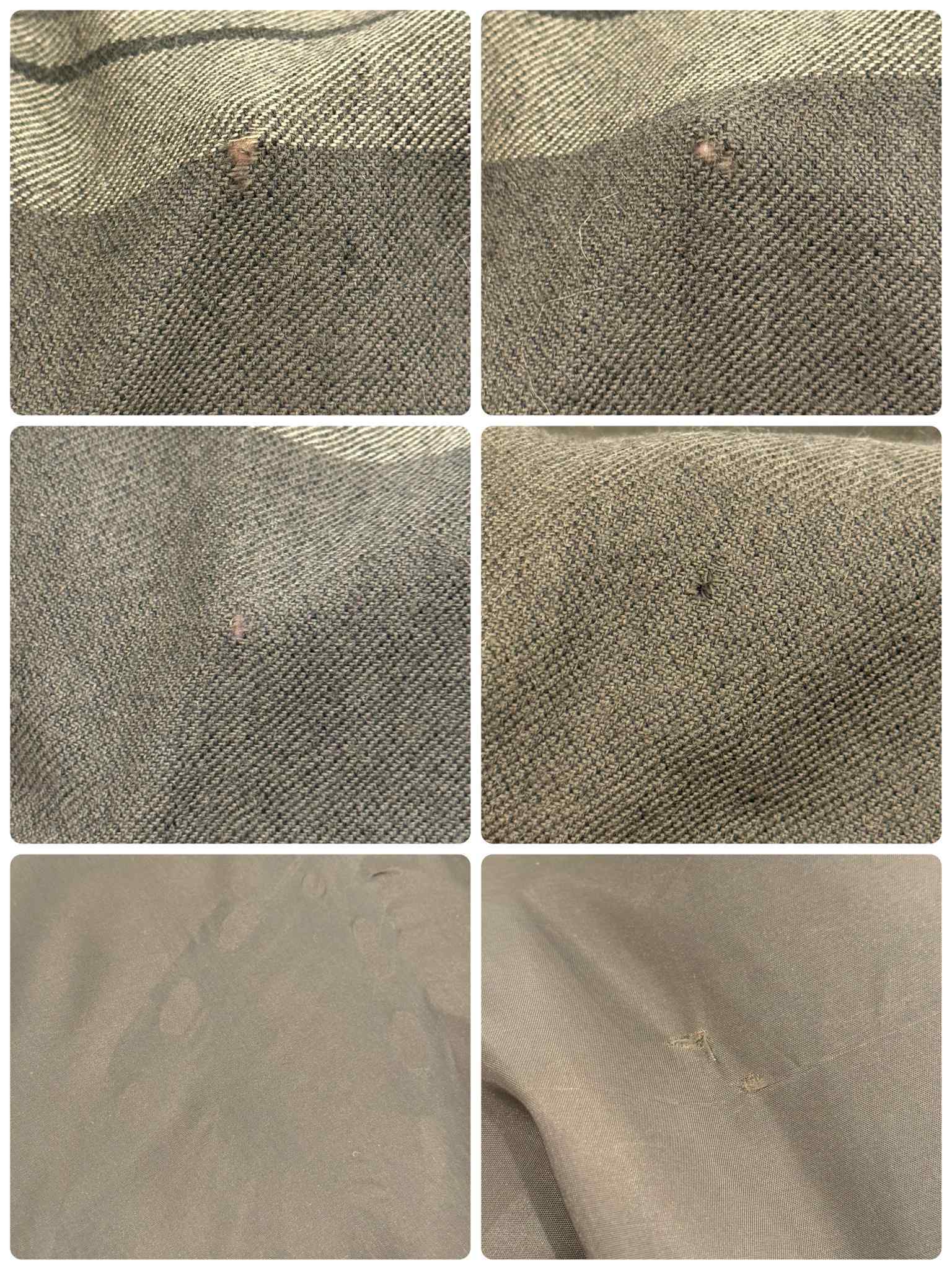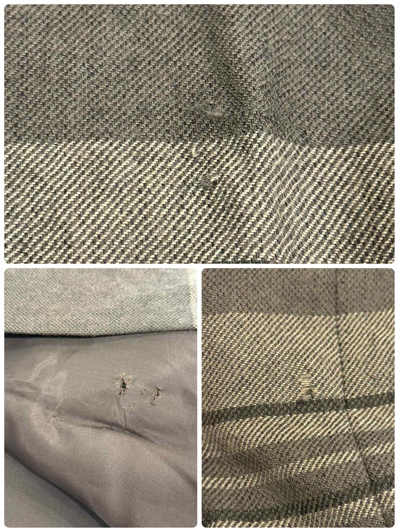 いくつか小穴や生地のツレ、裏地アイロンのような跡?がございますが、古着の味として着て頂けるかと思います。