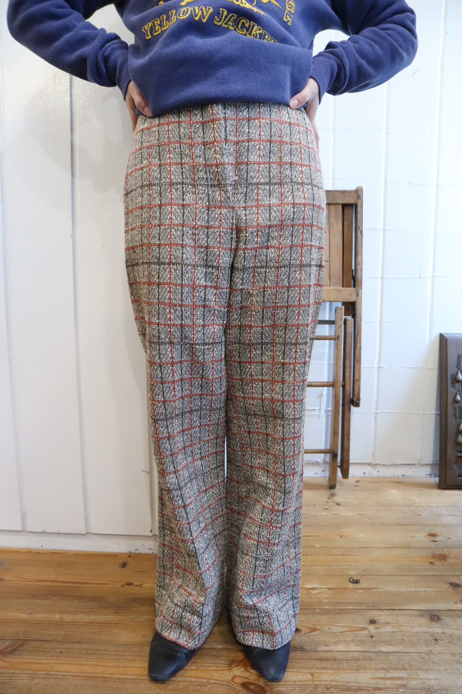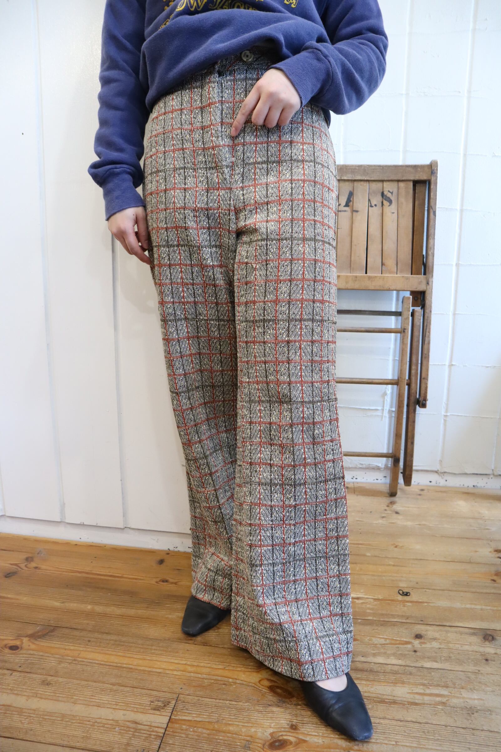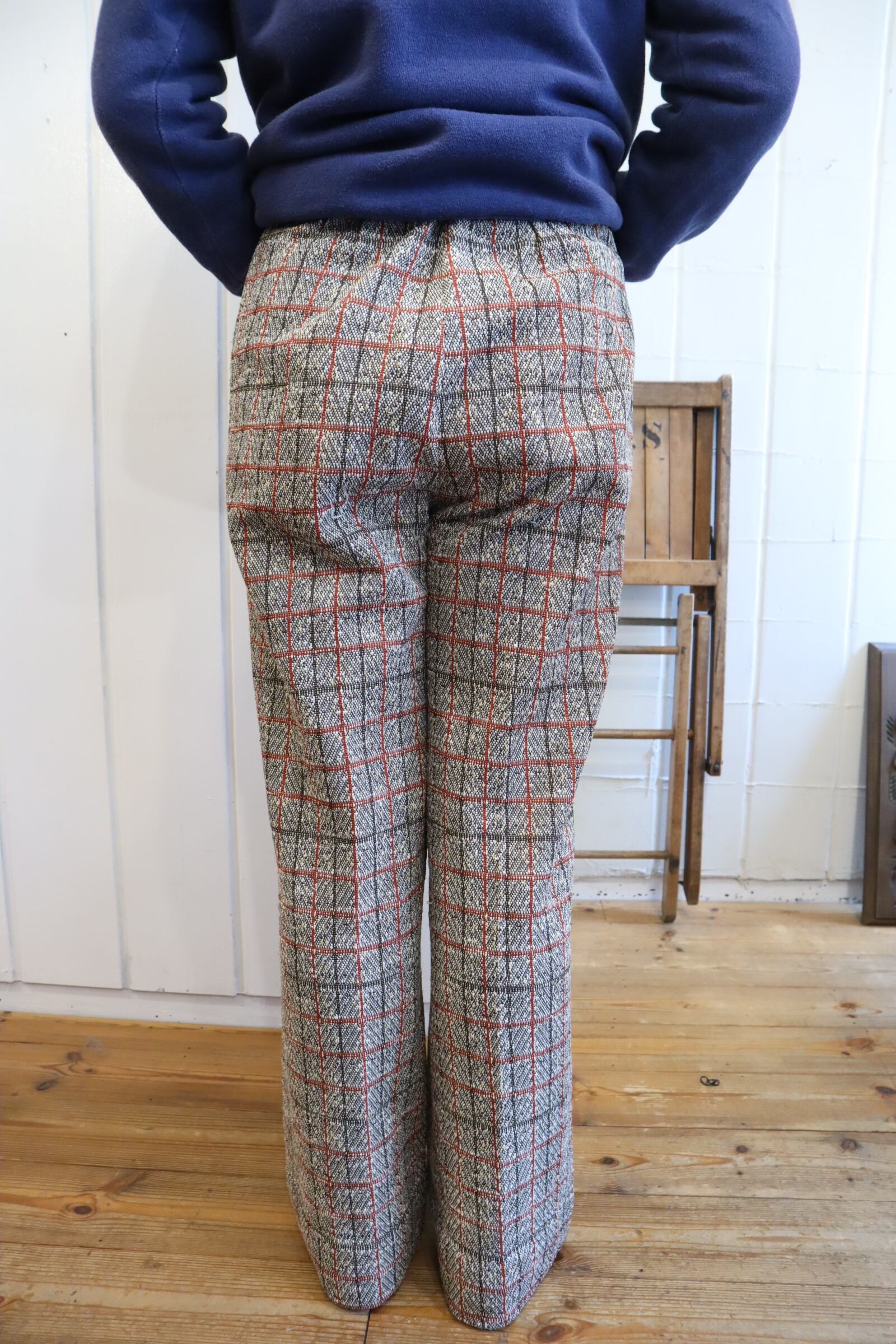 プレッピーな雰囲気のカラーリングが可愛い70sポリエステルパンツ。