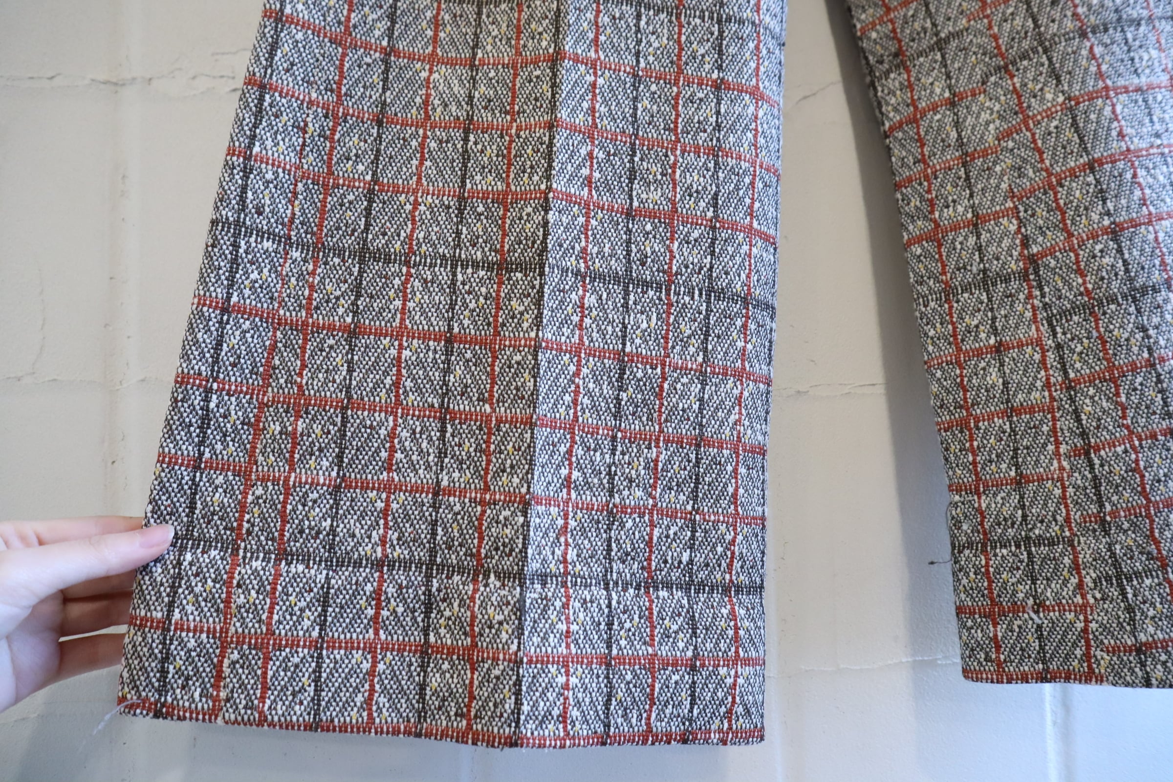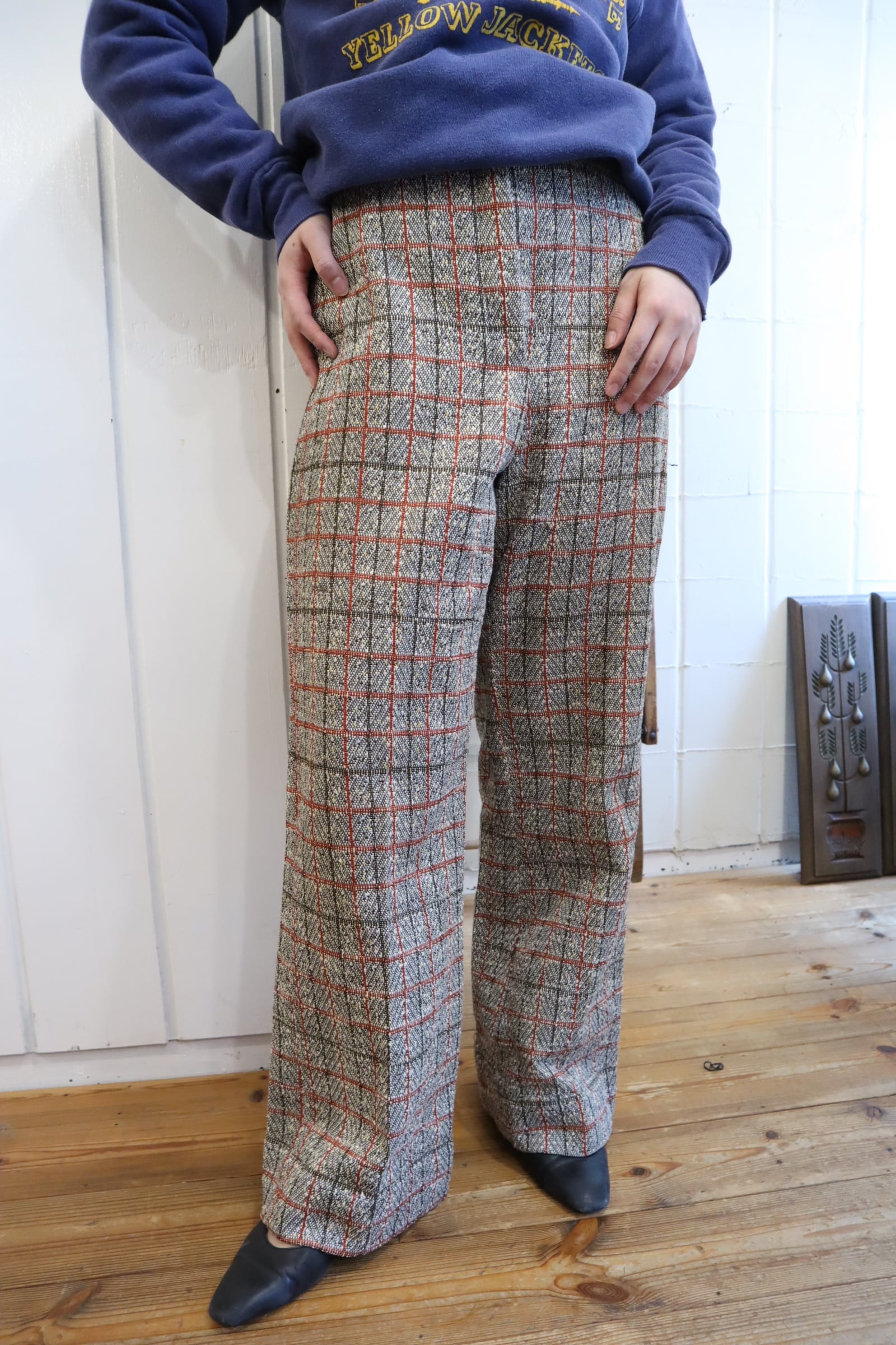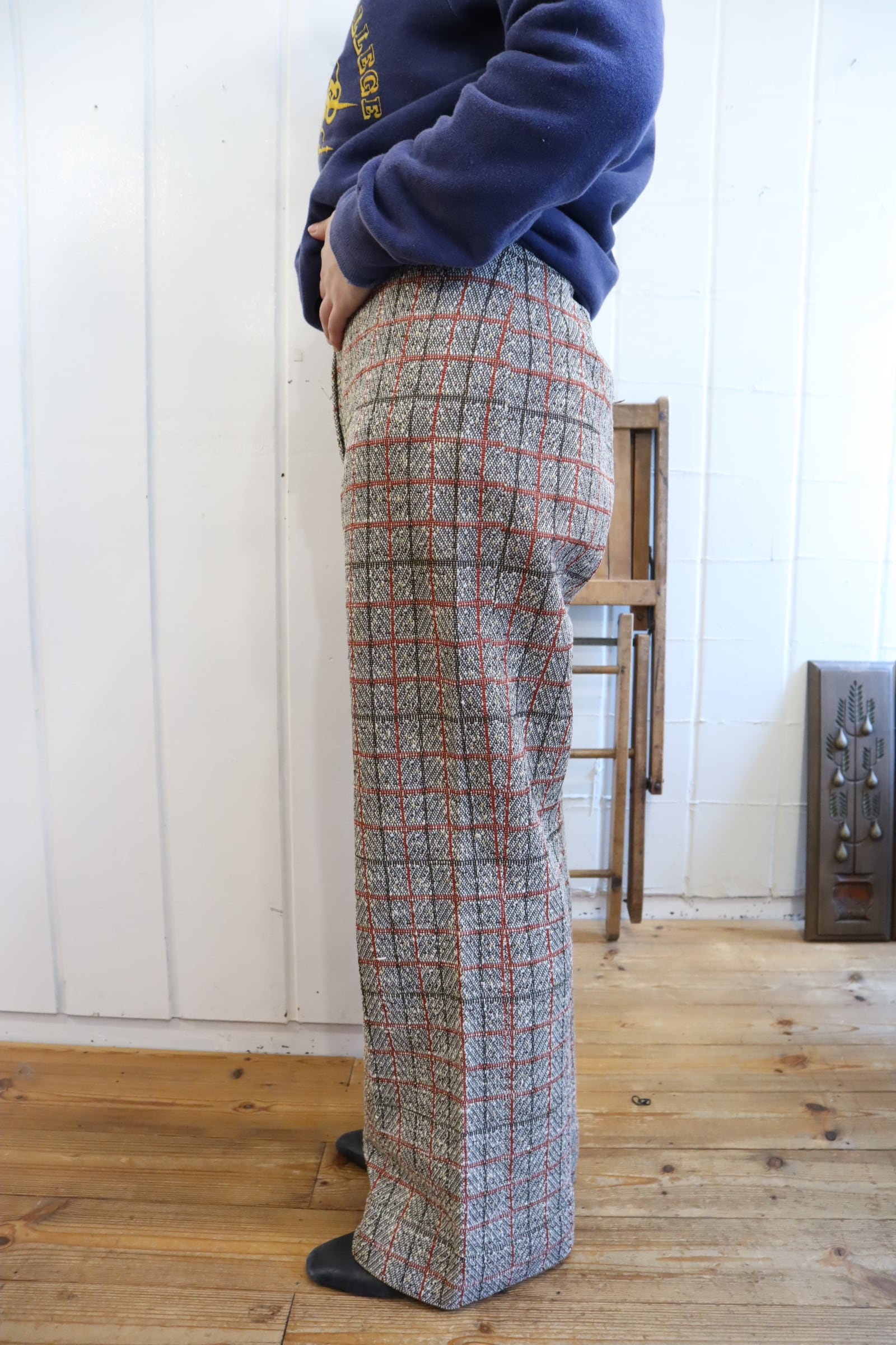 プレッピーな雰囲気のカラーリングが可愛い70sポリエステルパンツ。