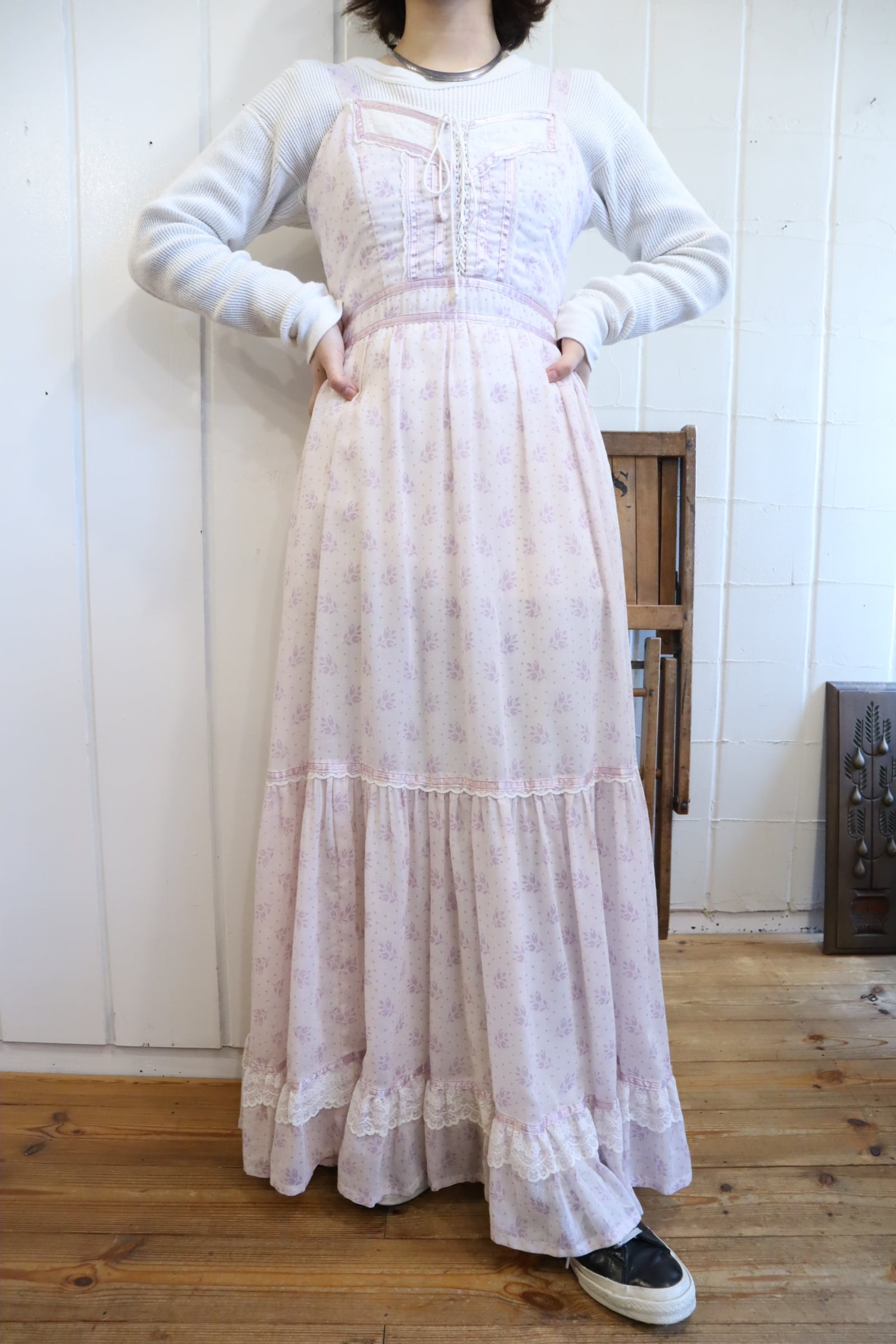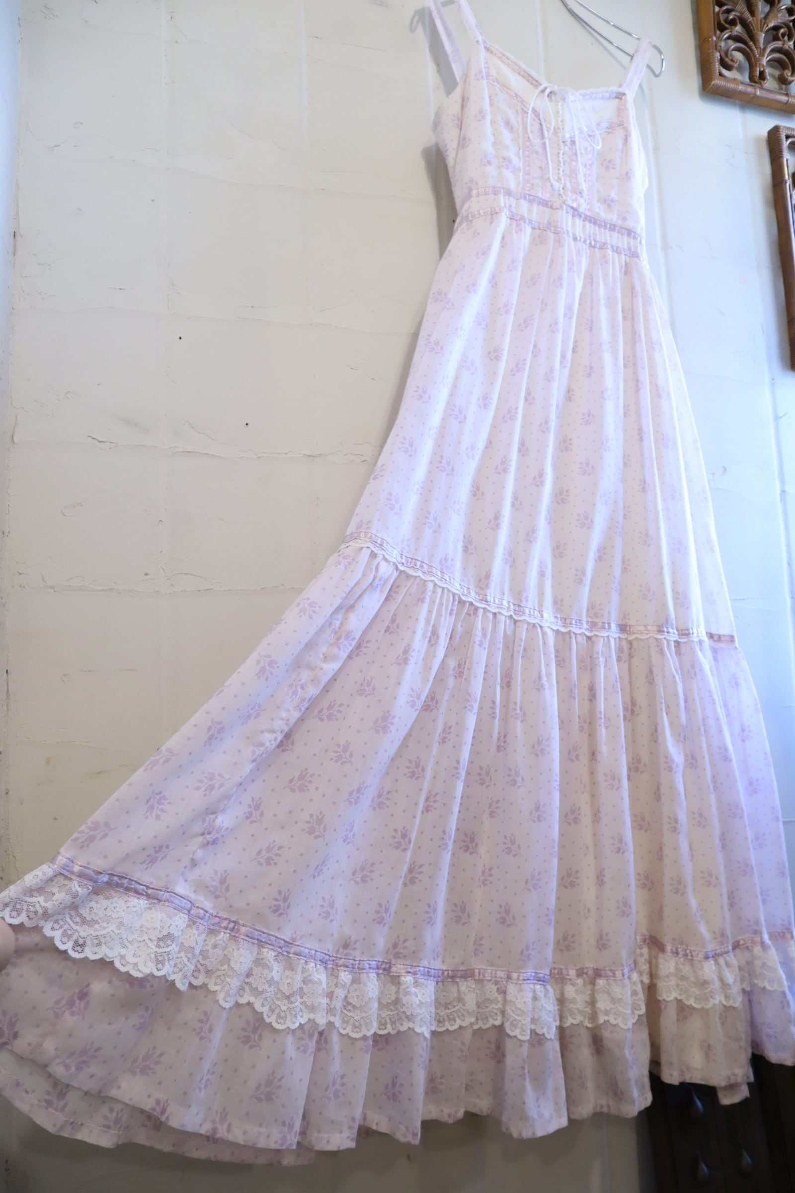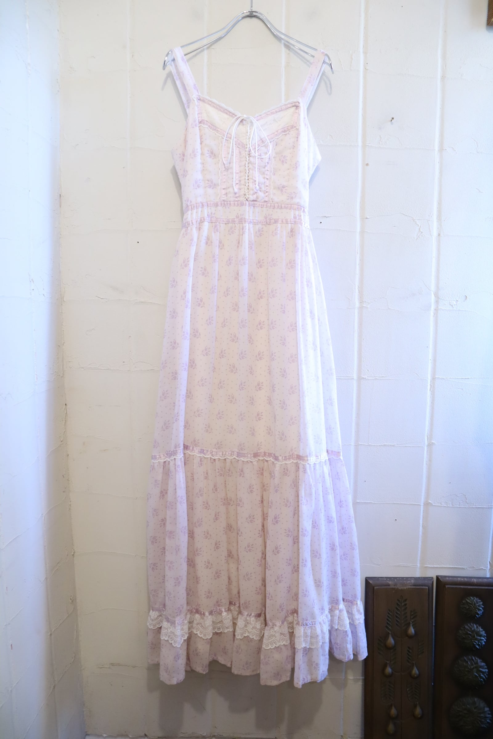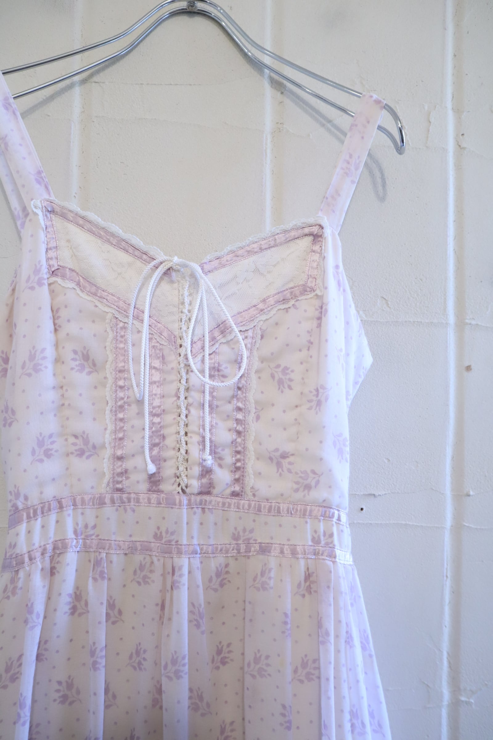 70s GUNNE SAX lightpurple flower pattern camisole dress [l-4821]
