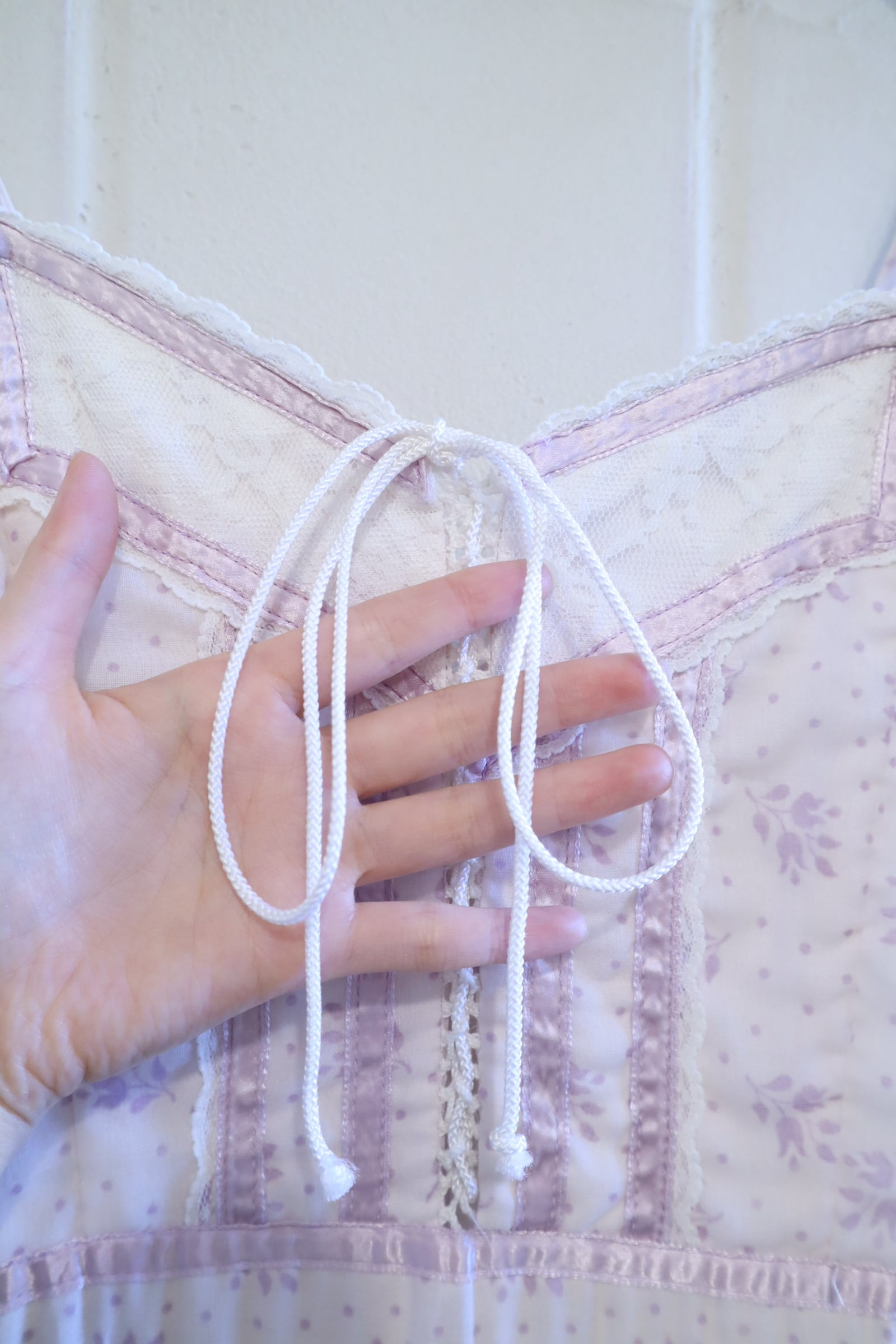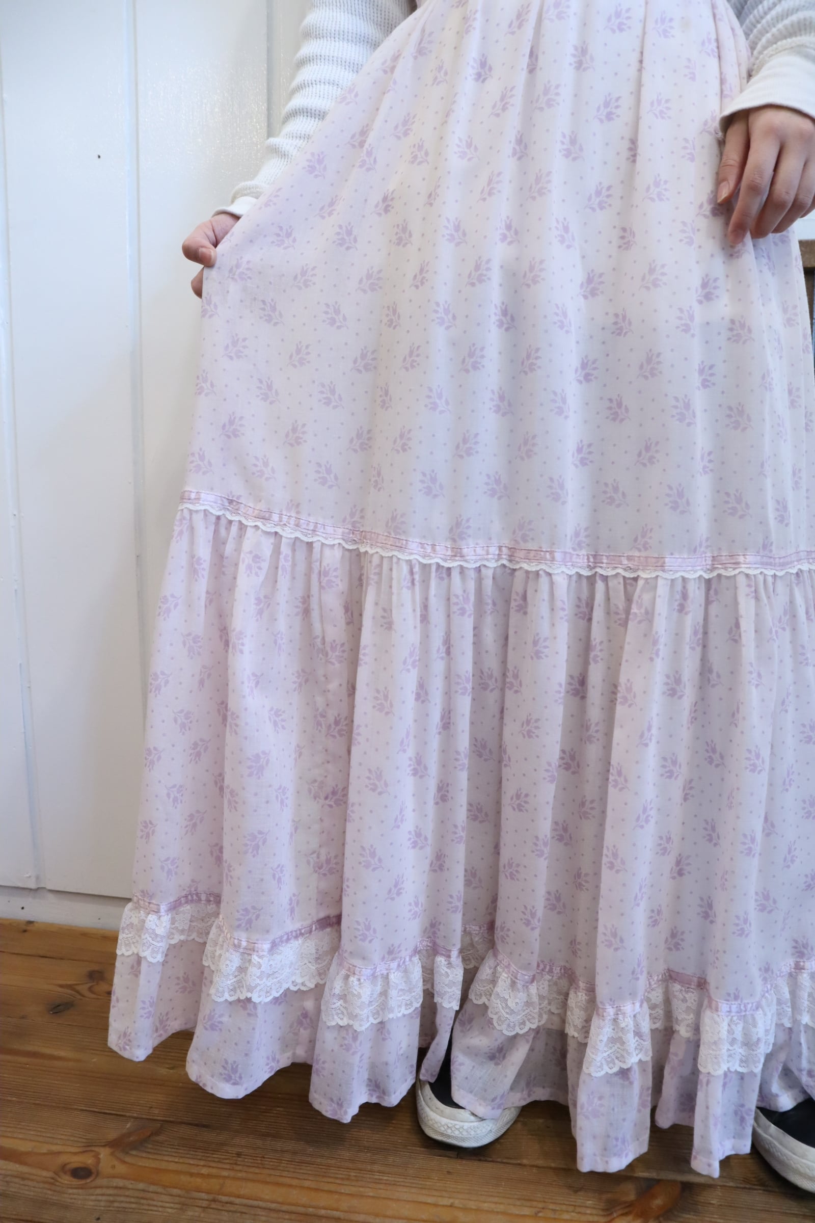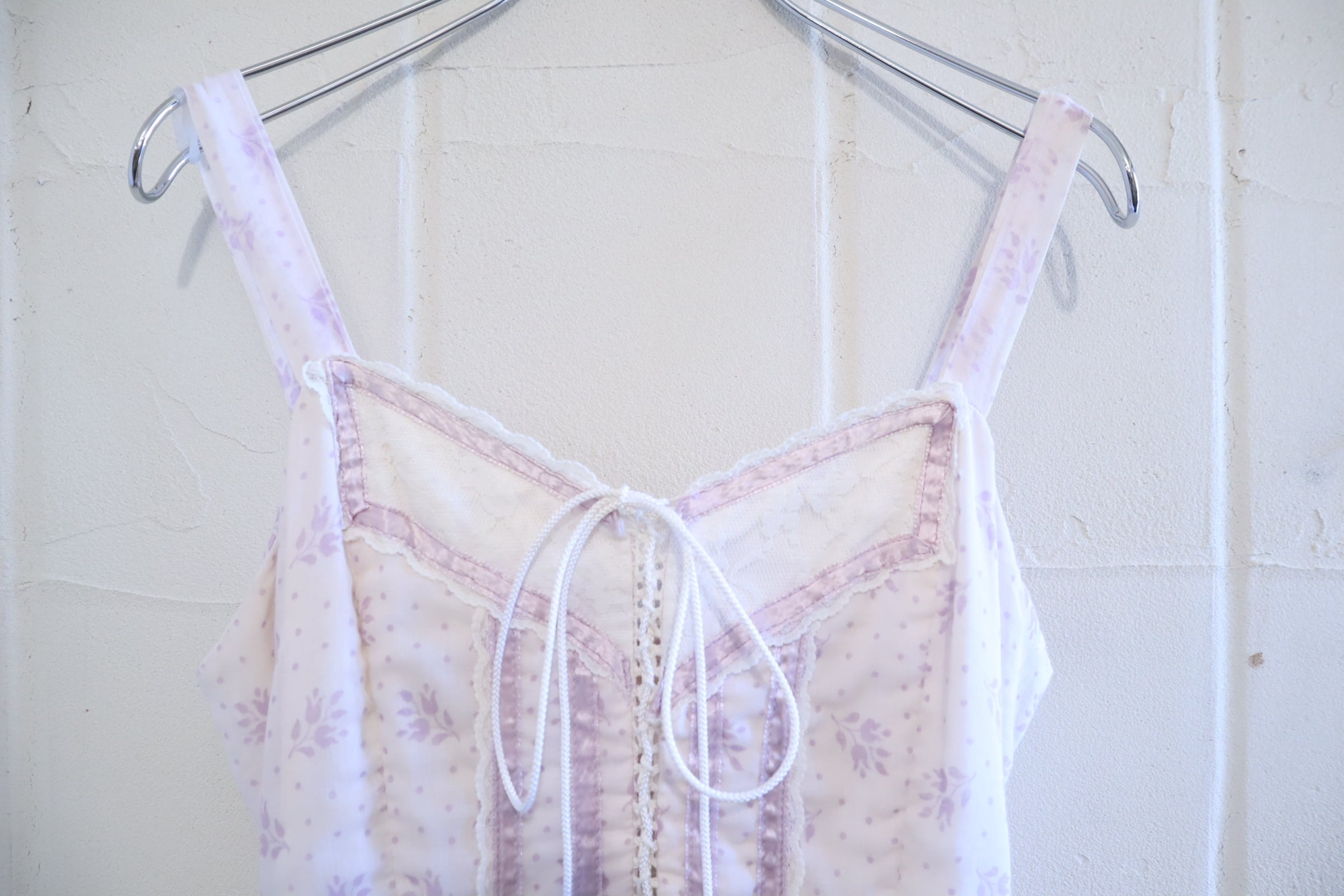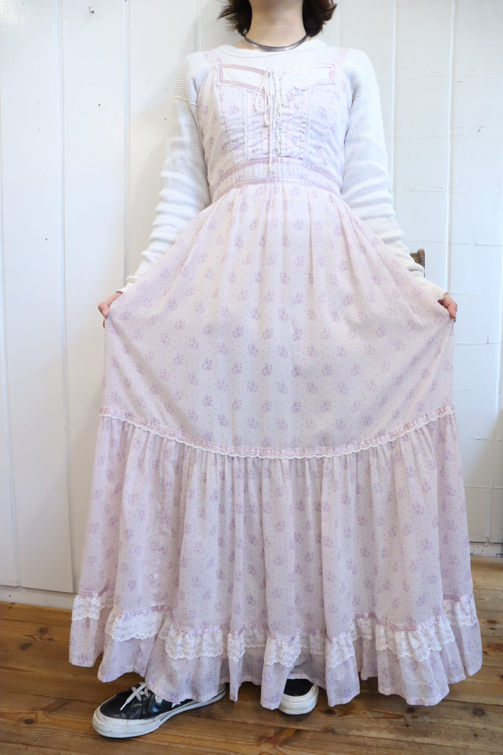 70s GUNNE SAX lightpurple flower pattern camisole dress [l-4821]