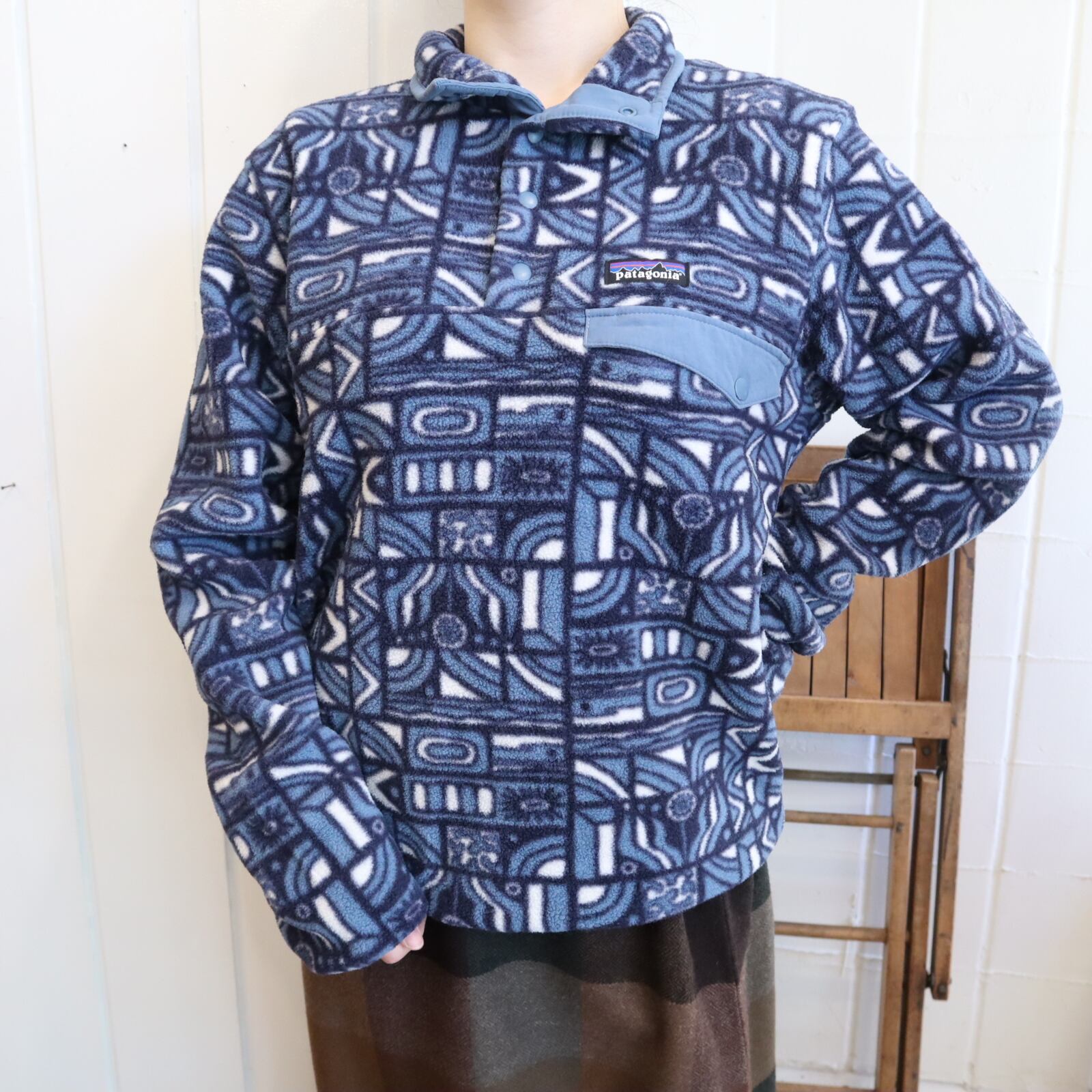 Patagonia navy×lightblue×white pullover snap-t fleece [k-4824]