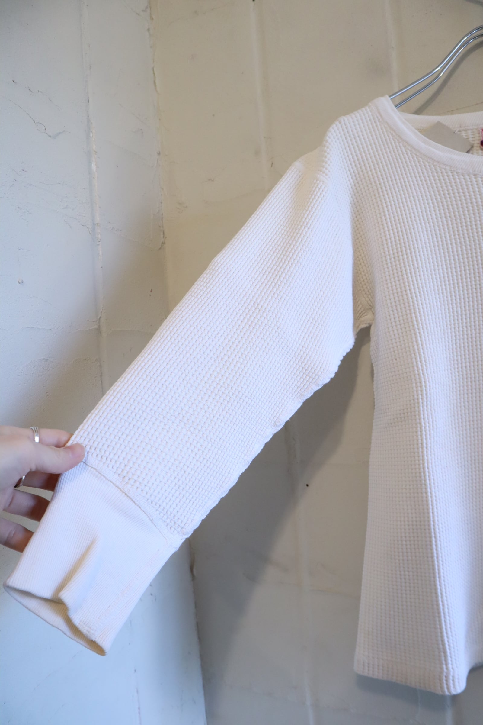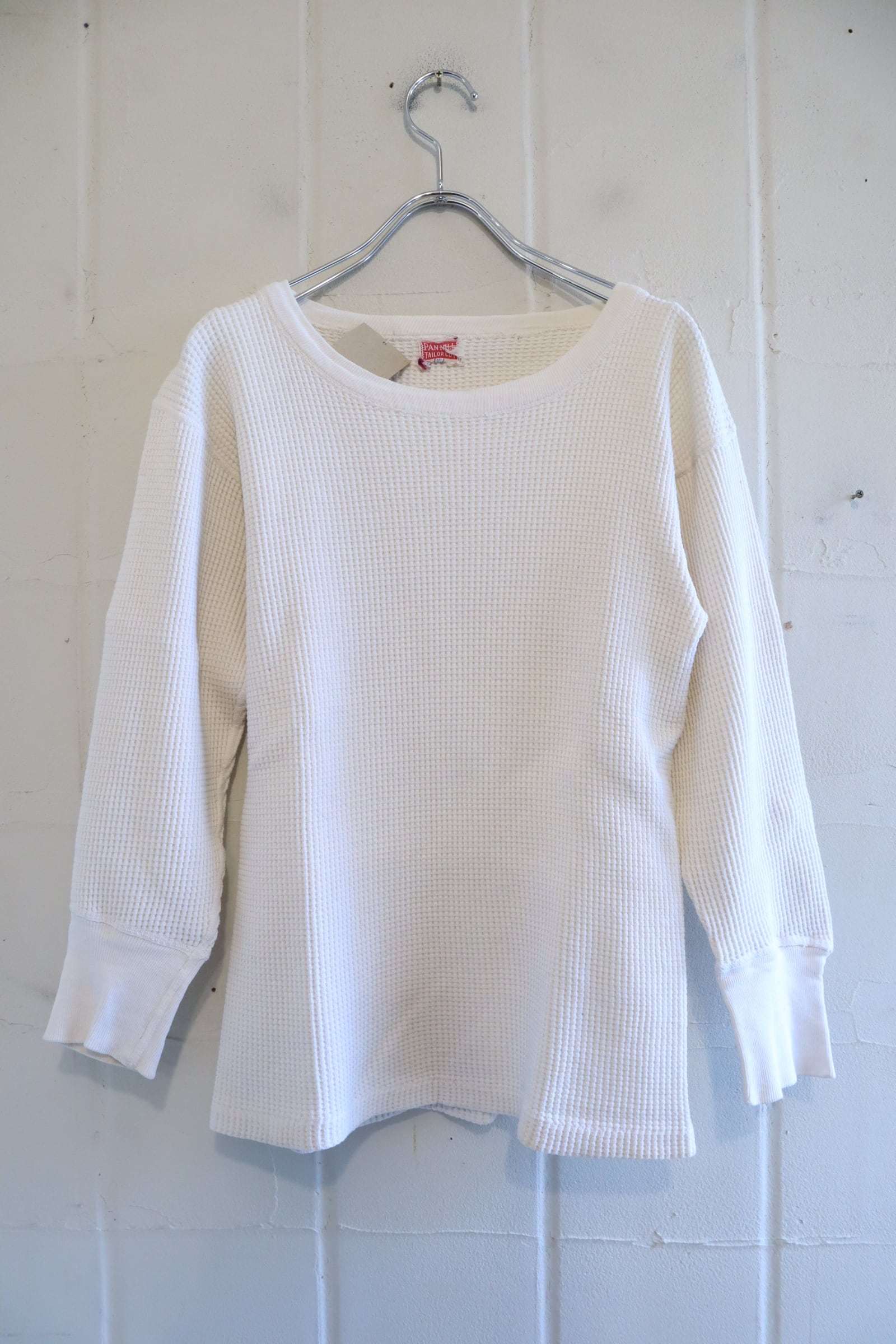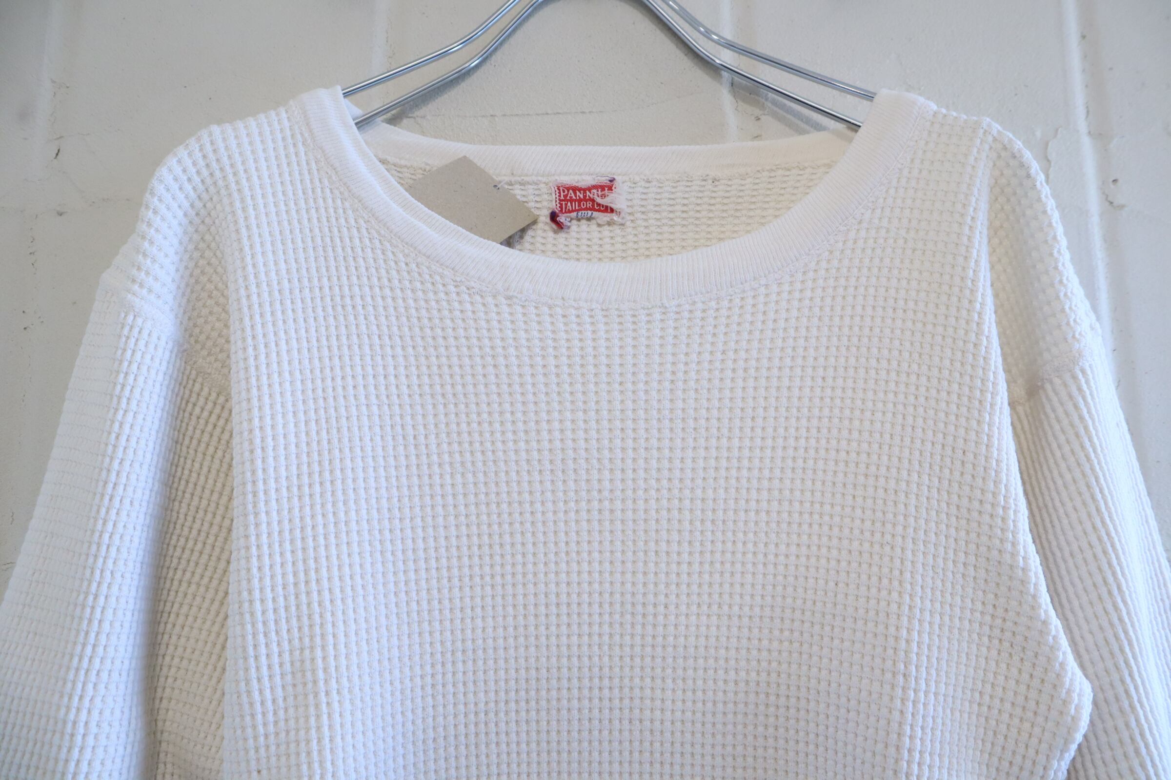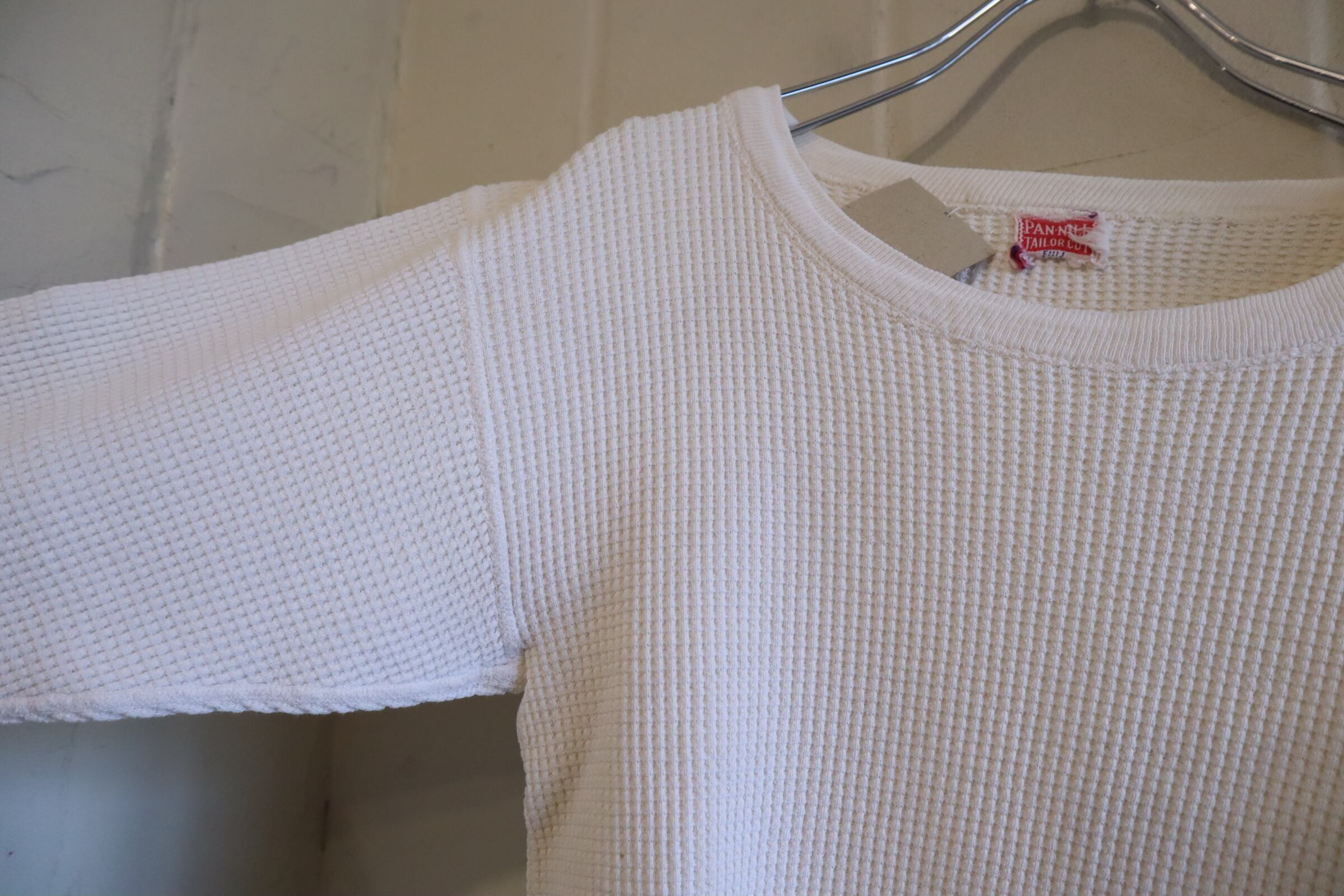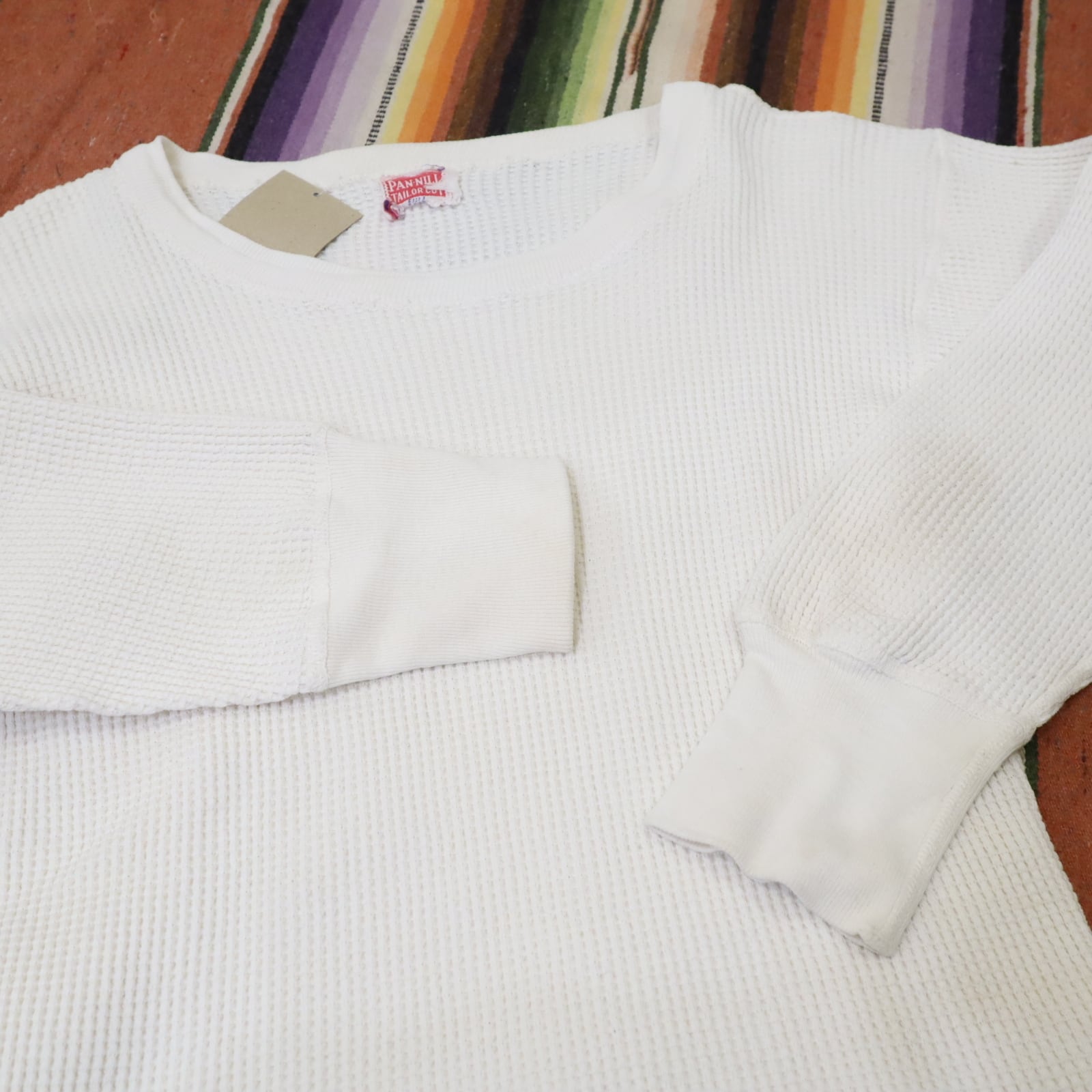 古いタグ付きのワッフルサーマルトップス。