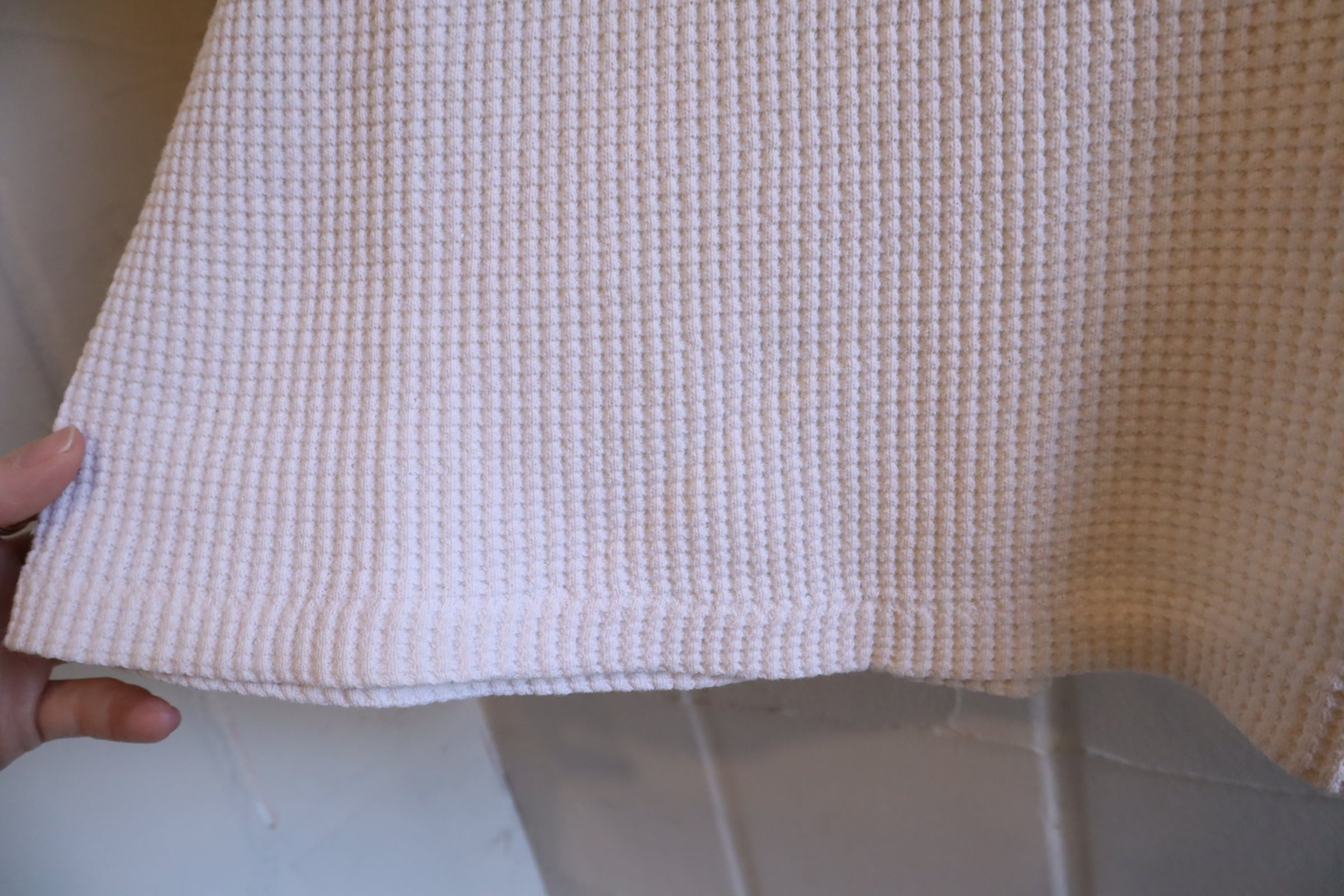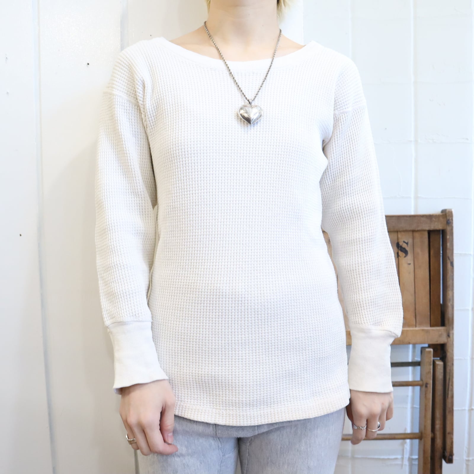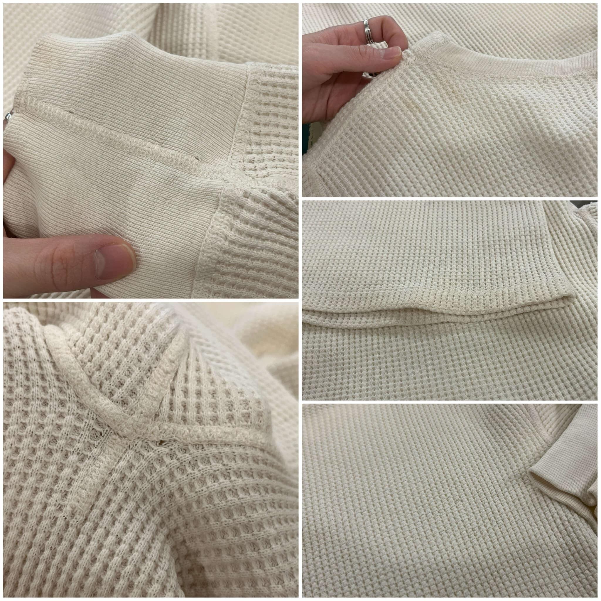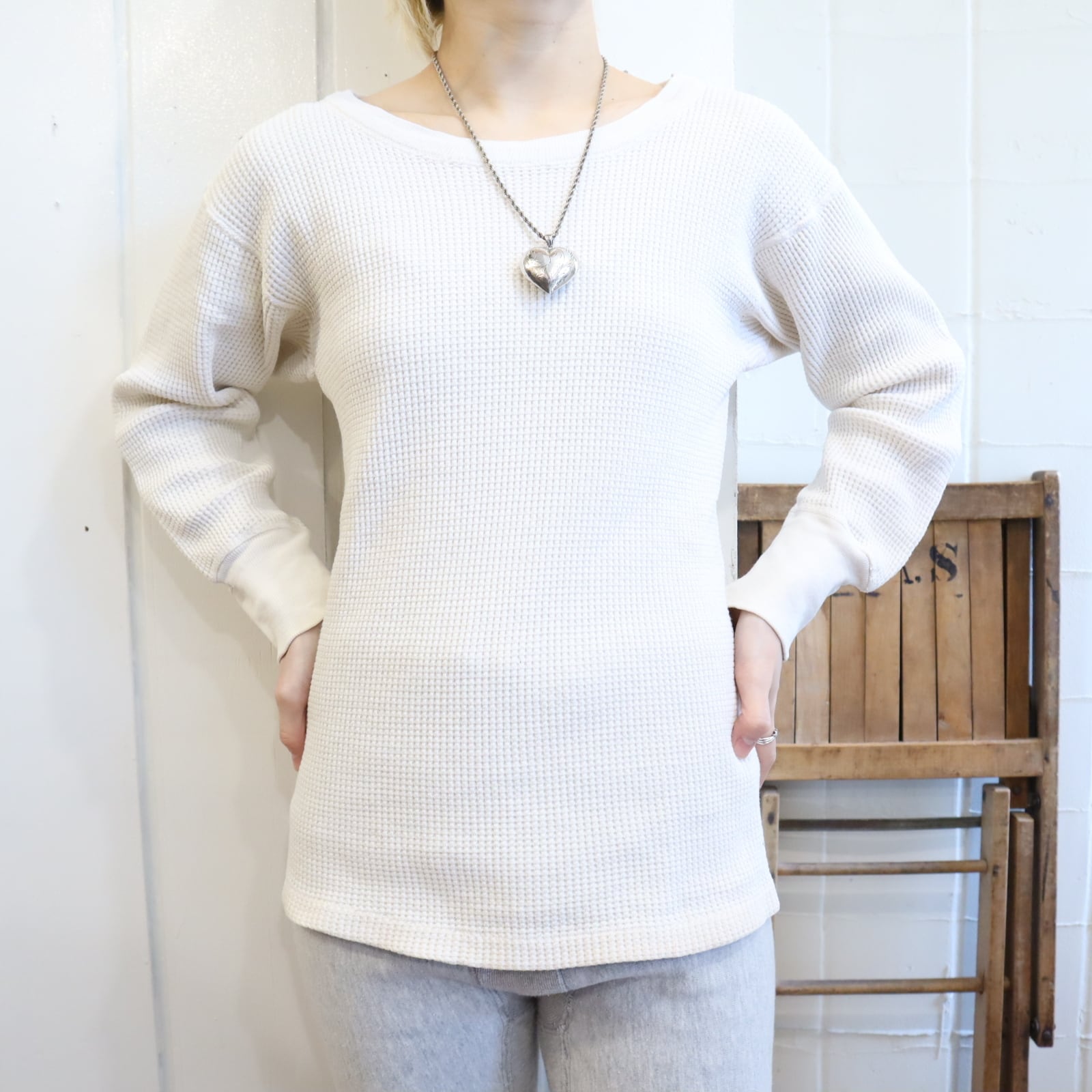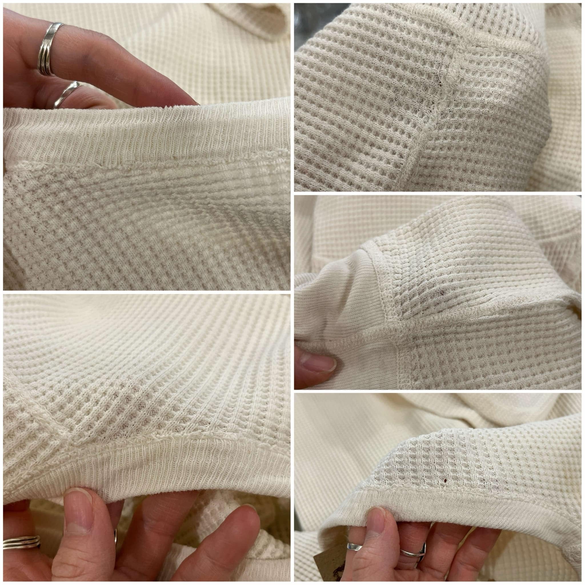 古いタグ付きのワッフルサーマルトップス。