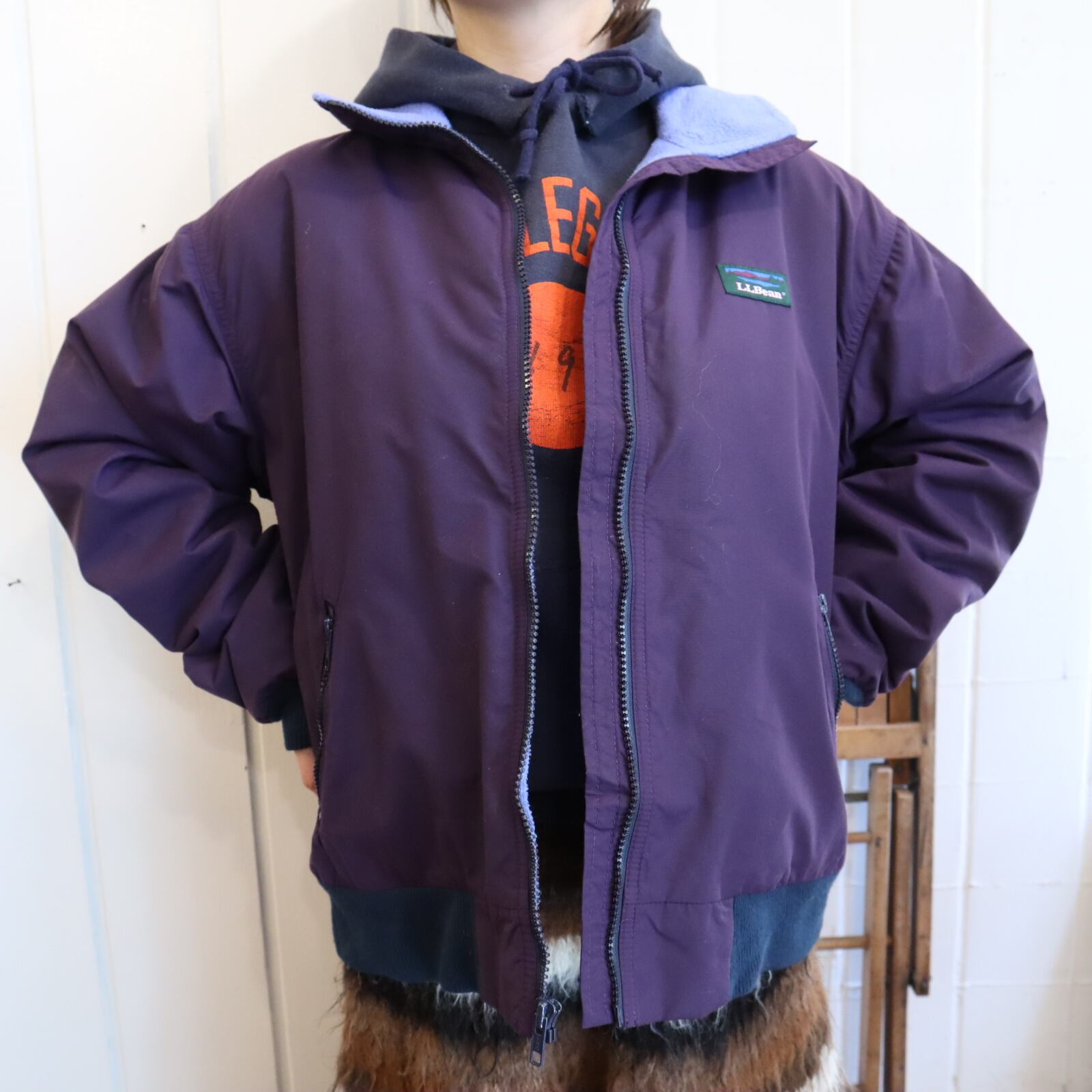 L.L.Bean purple×blue lining boa nylon jacket [l-4845]