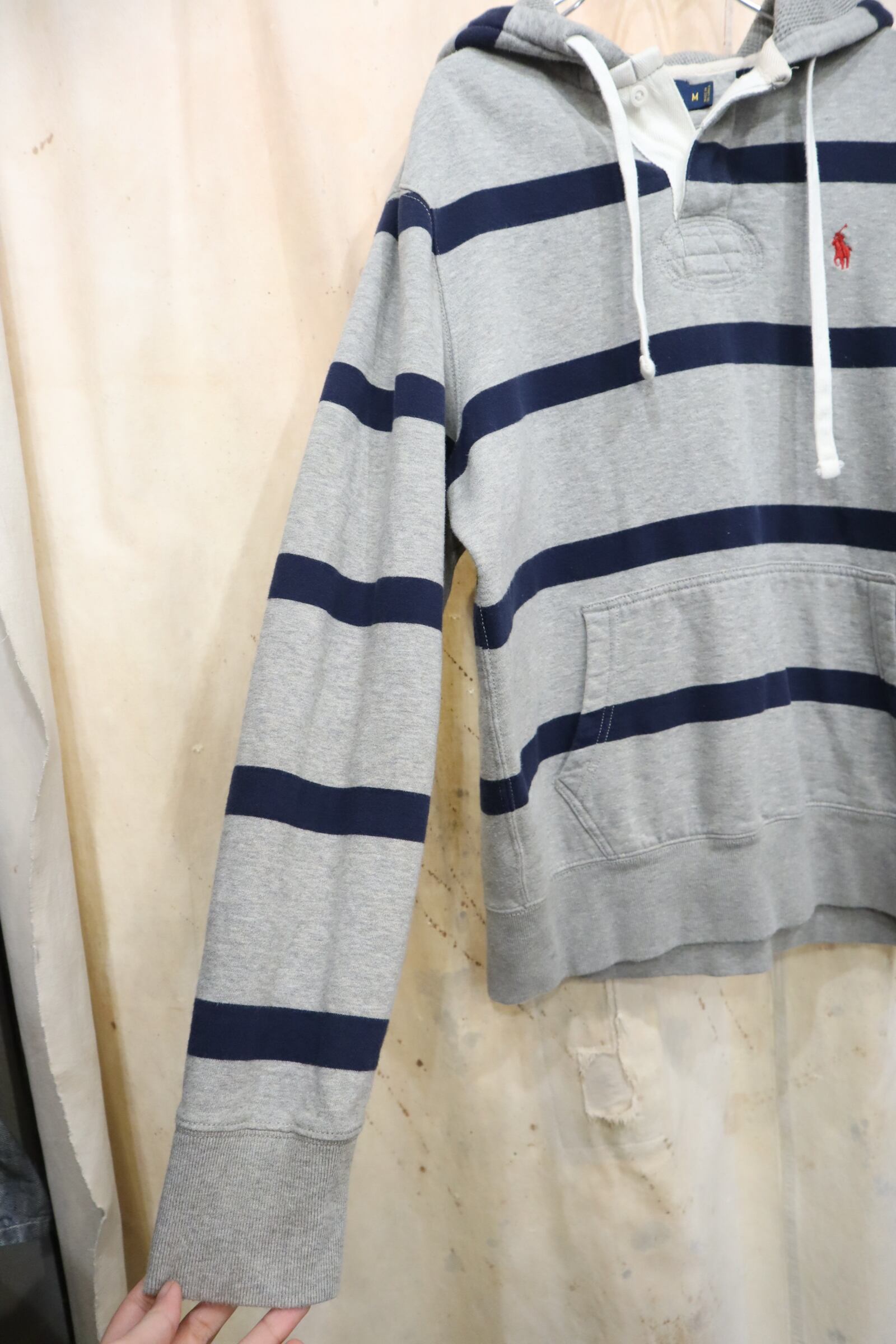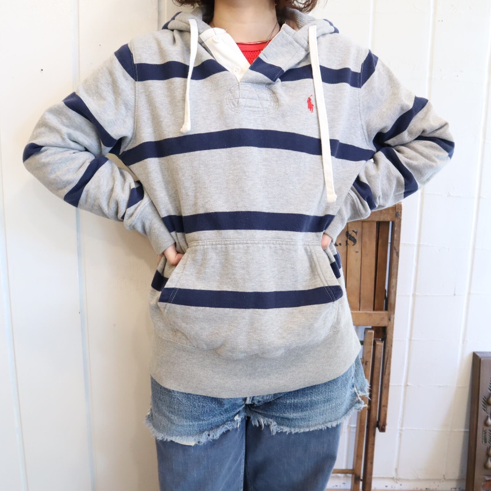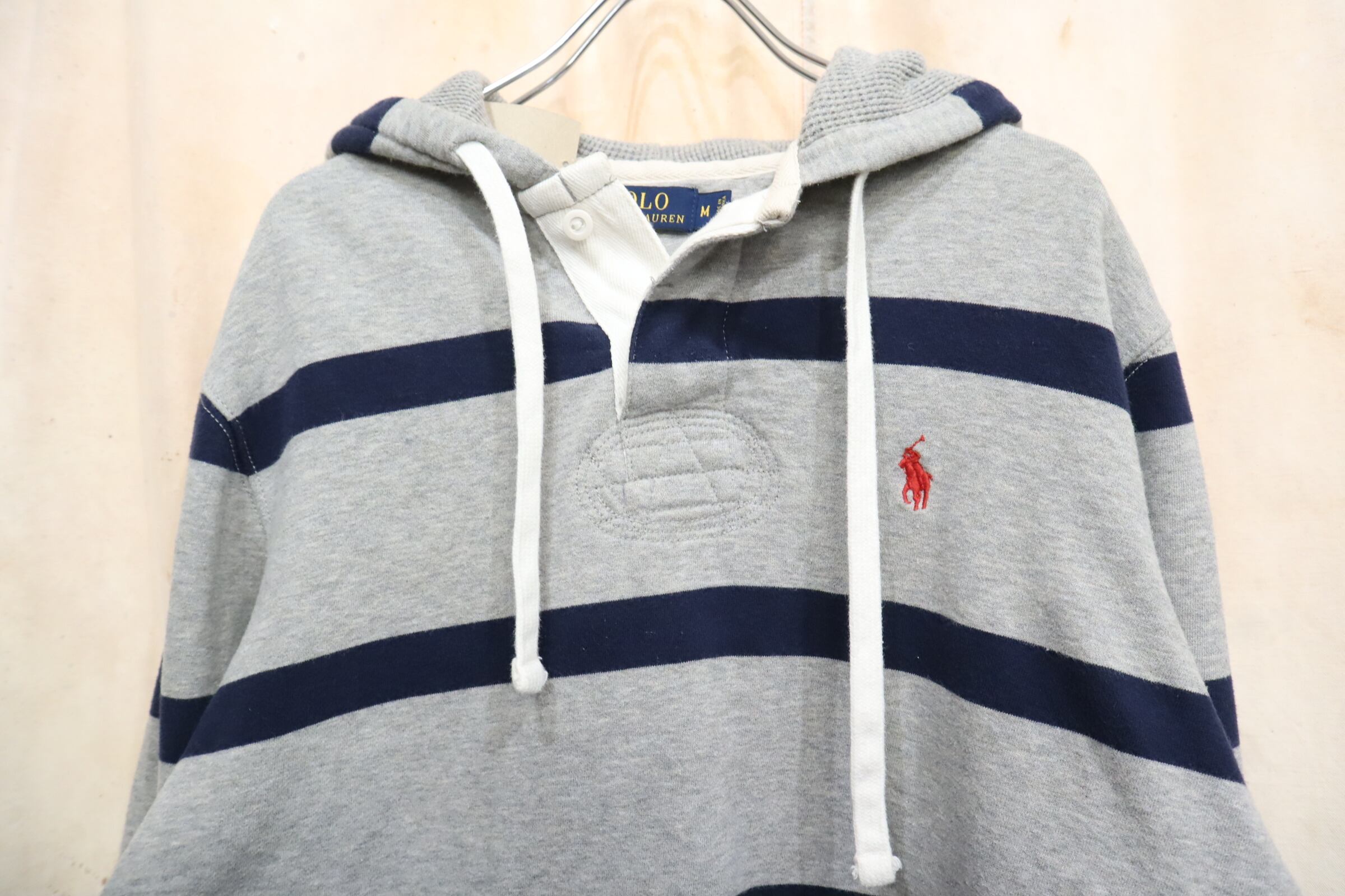 Ralph Lauren gray×navy border hoodie sweat [k-4850]