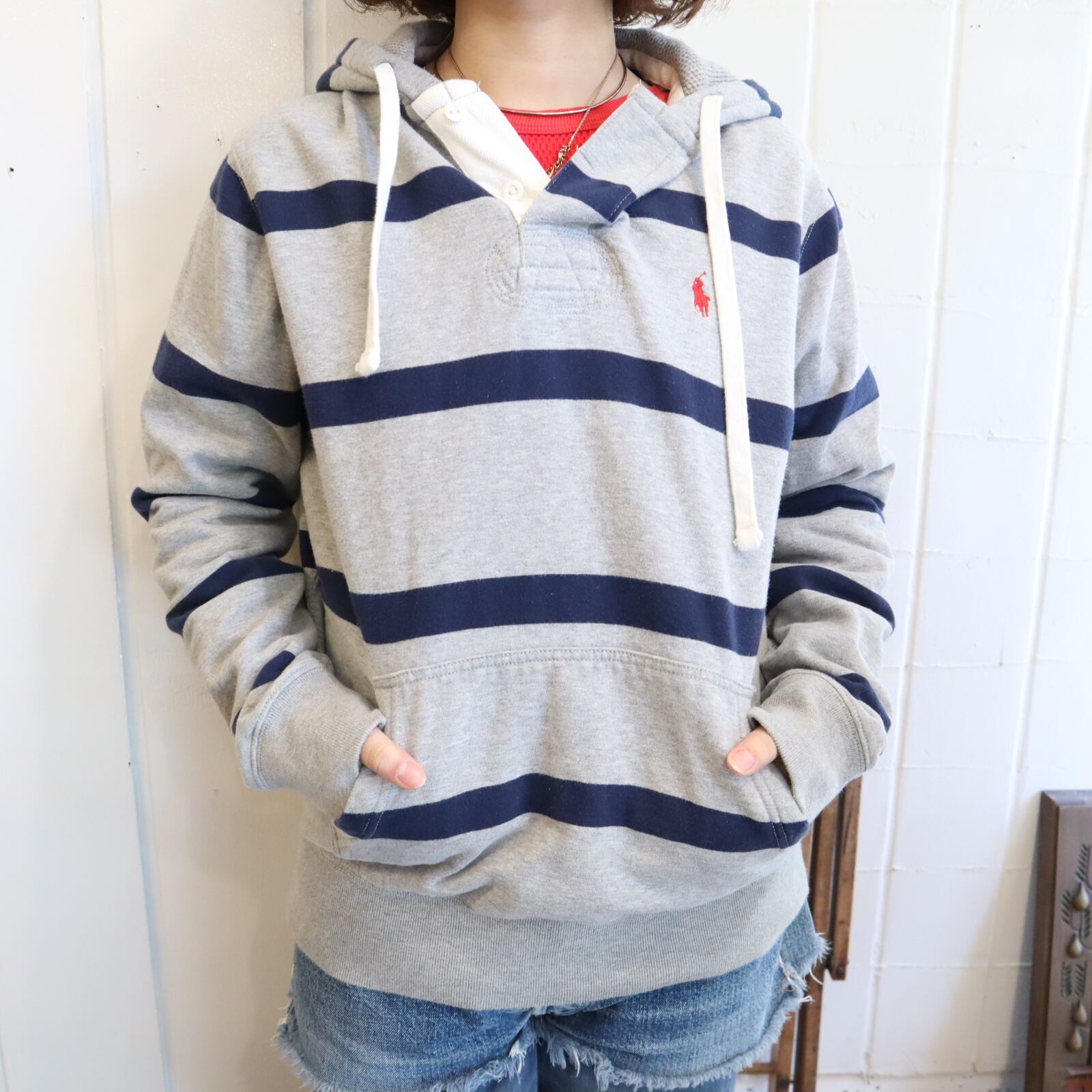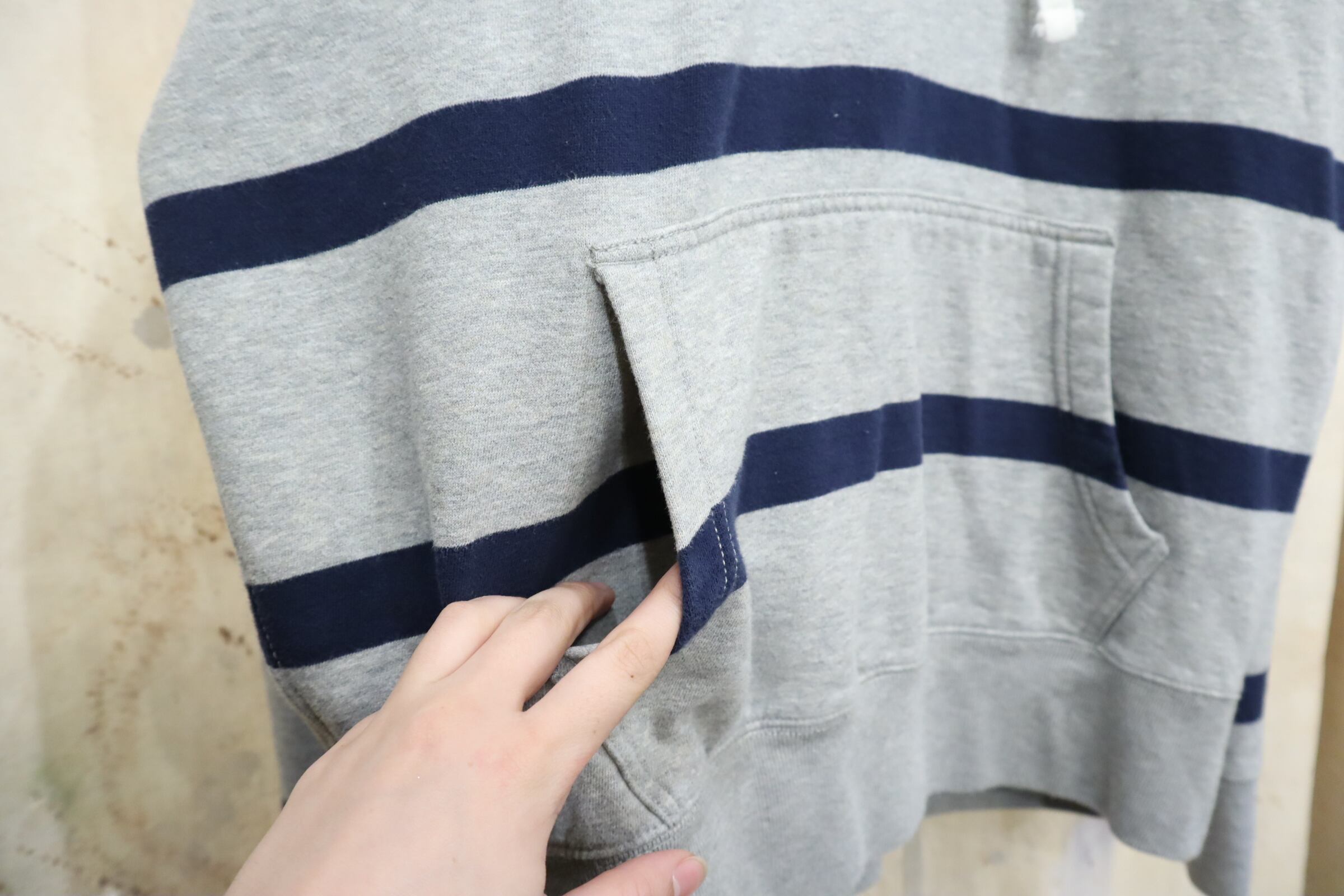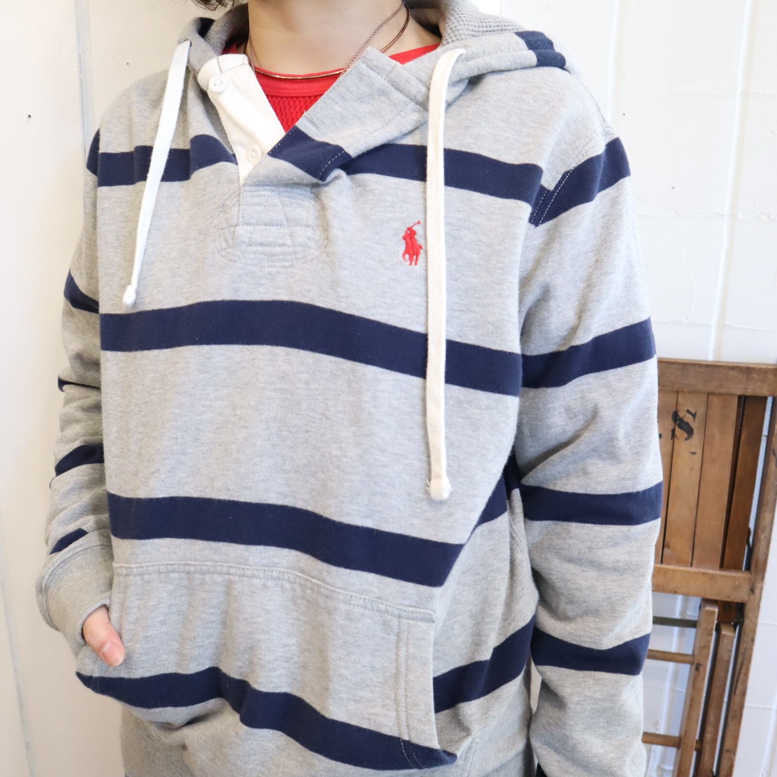 Ralph Lauren gray×navy border hoodie sweat [k-4850]