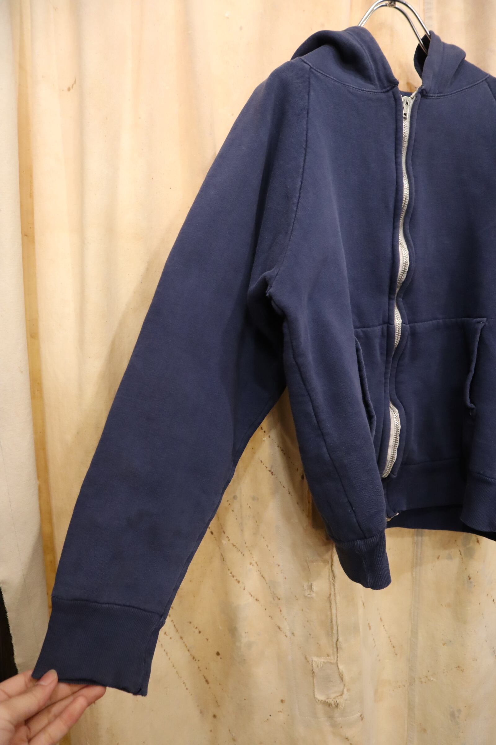フェードしたネイビーが雰囲気のいいジップパーカーです。