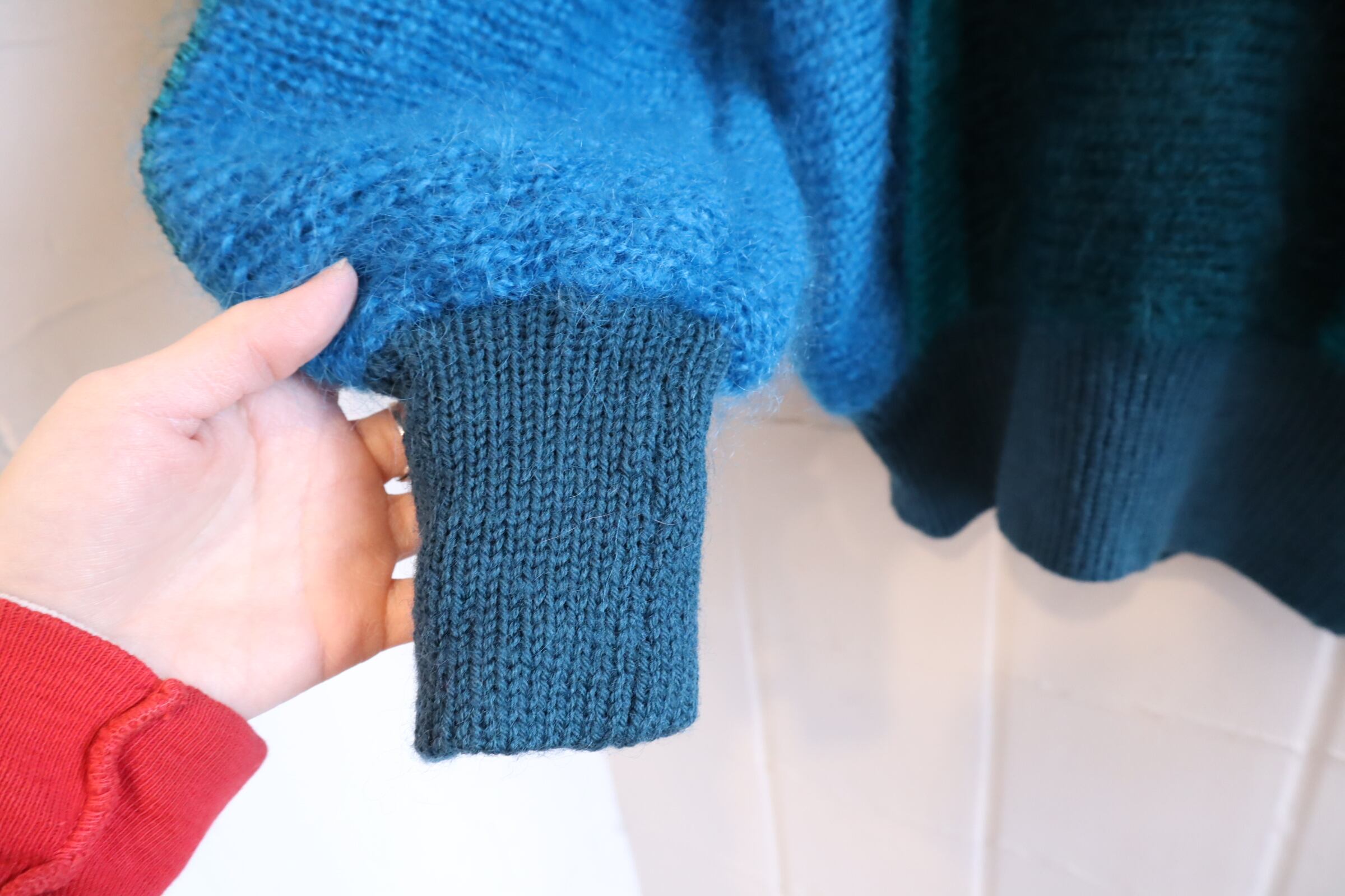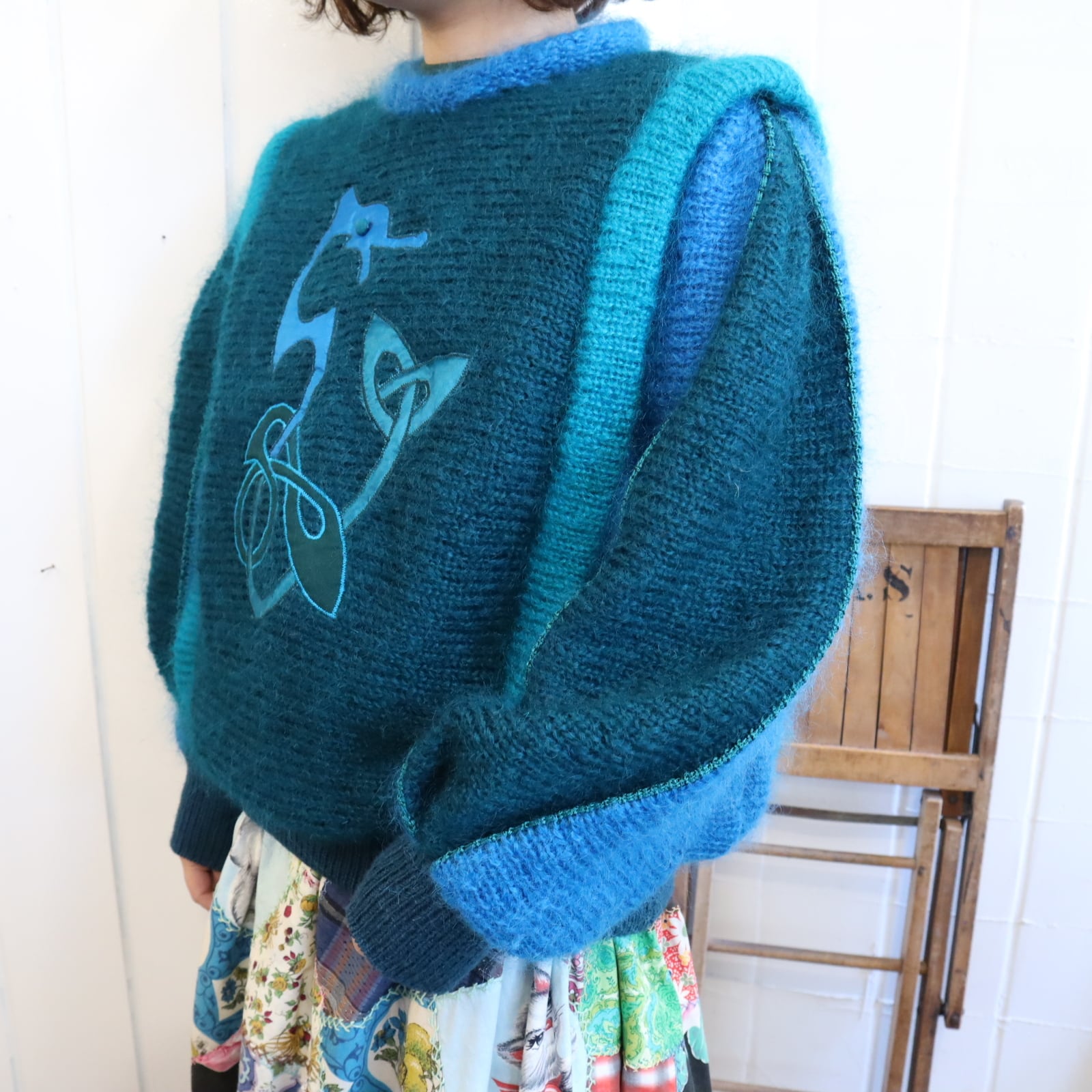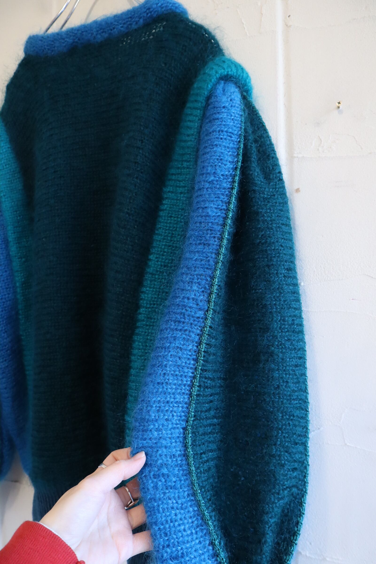 made in Ireland blue×green balloon sleeve mohair knit pullover [l-4868]