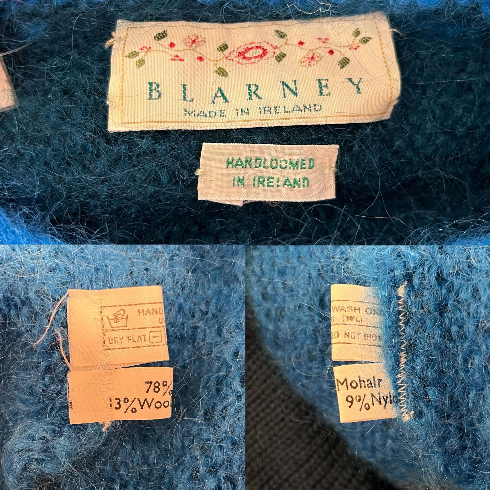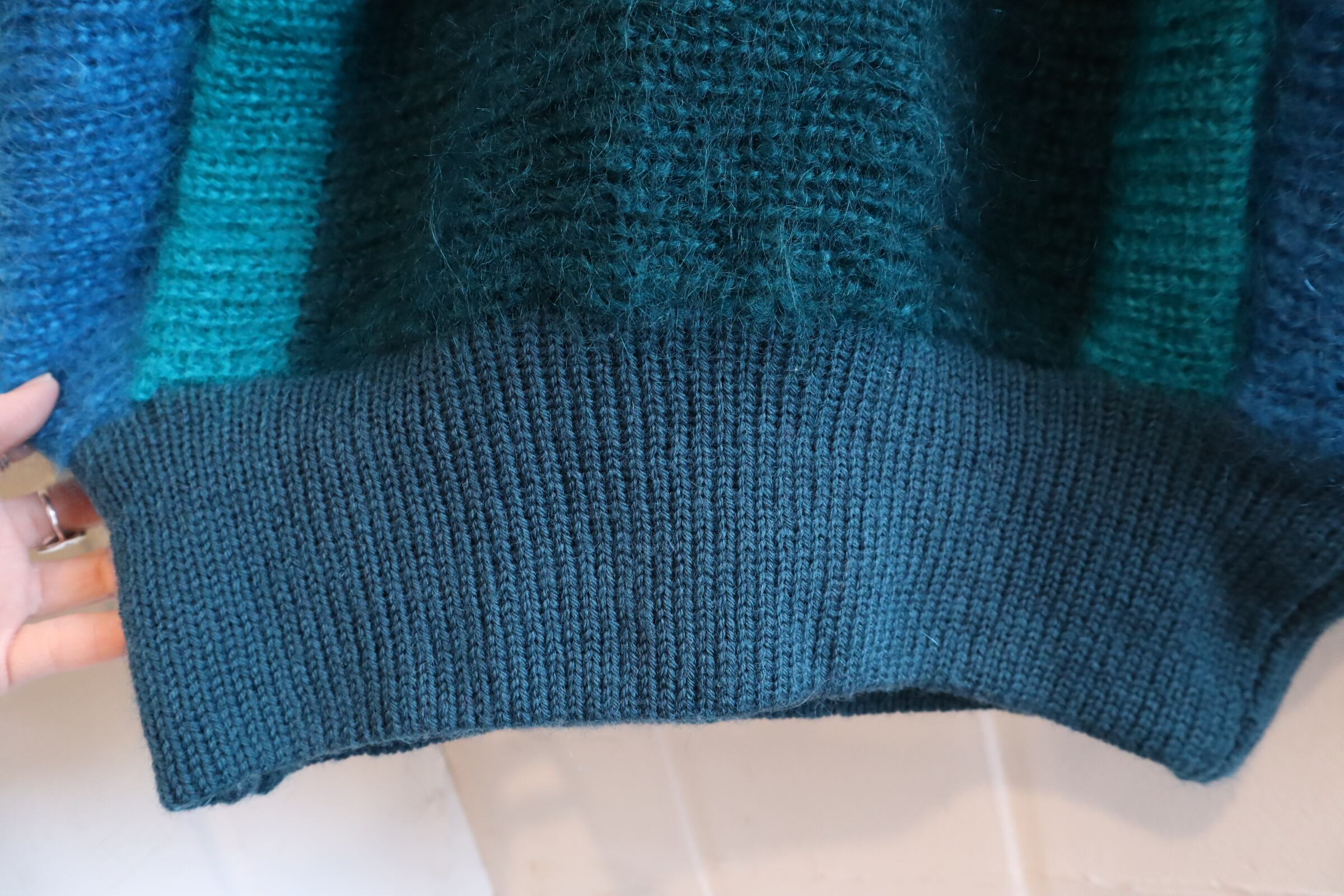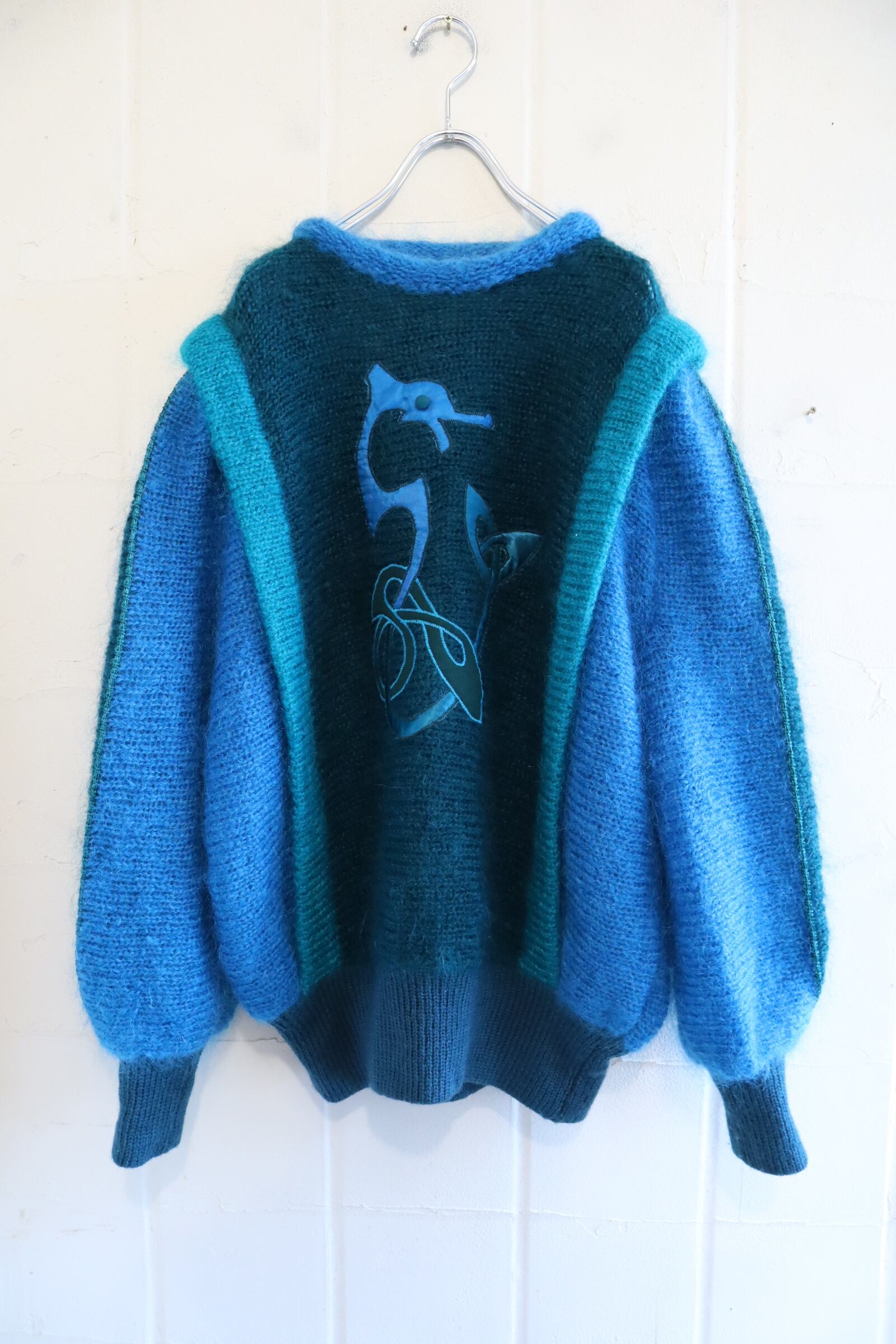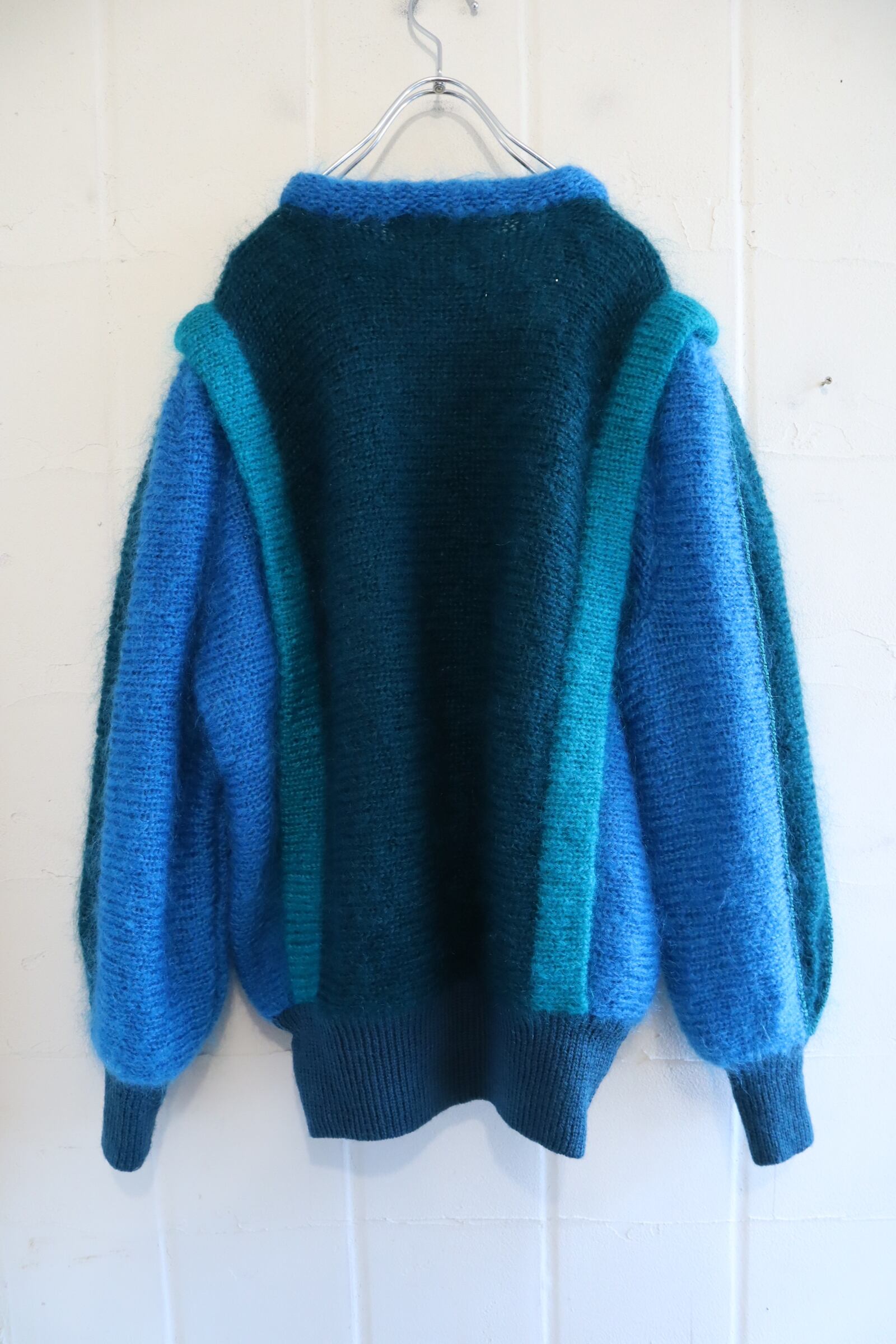 made in Ireland blue×green balloon sleeve mohair knit pullover [l-4868]