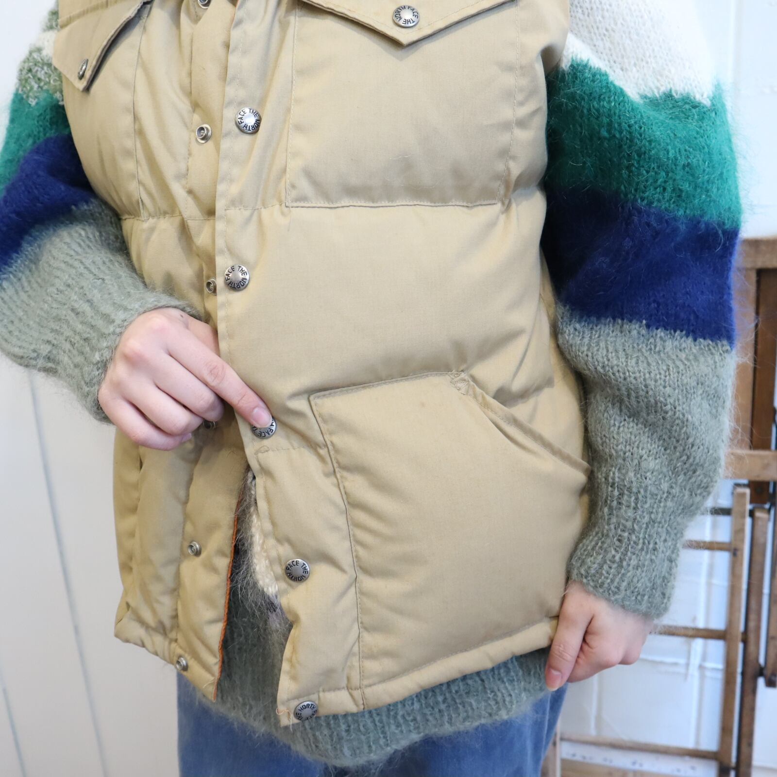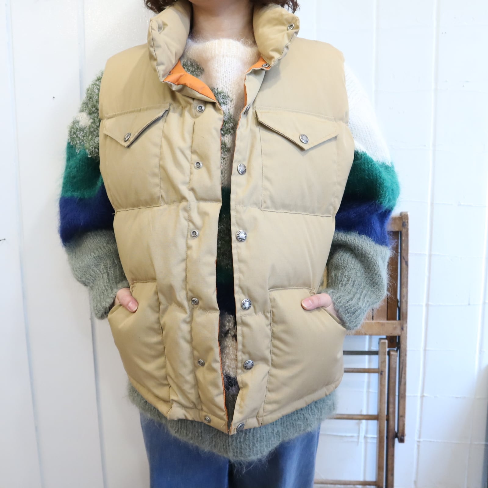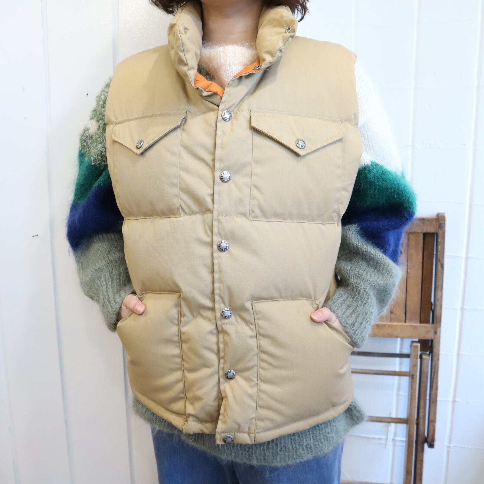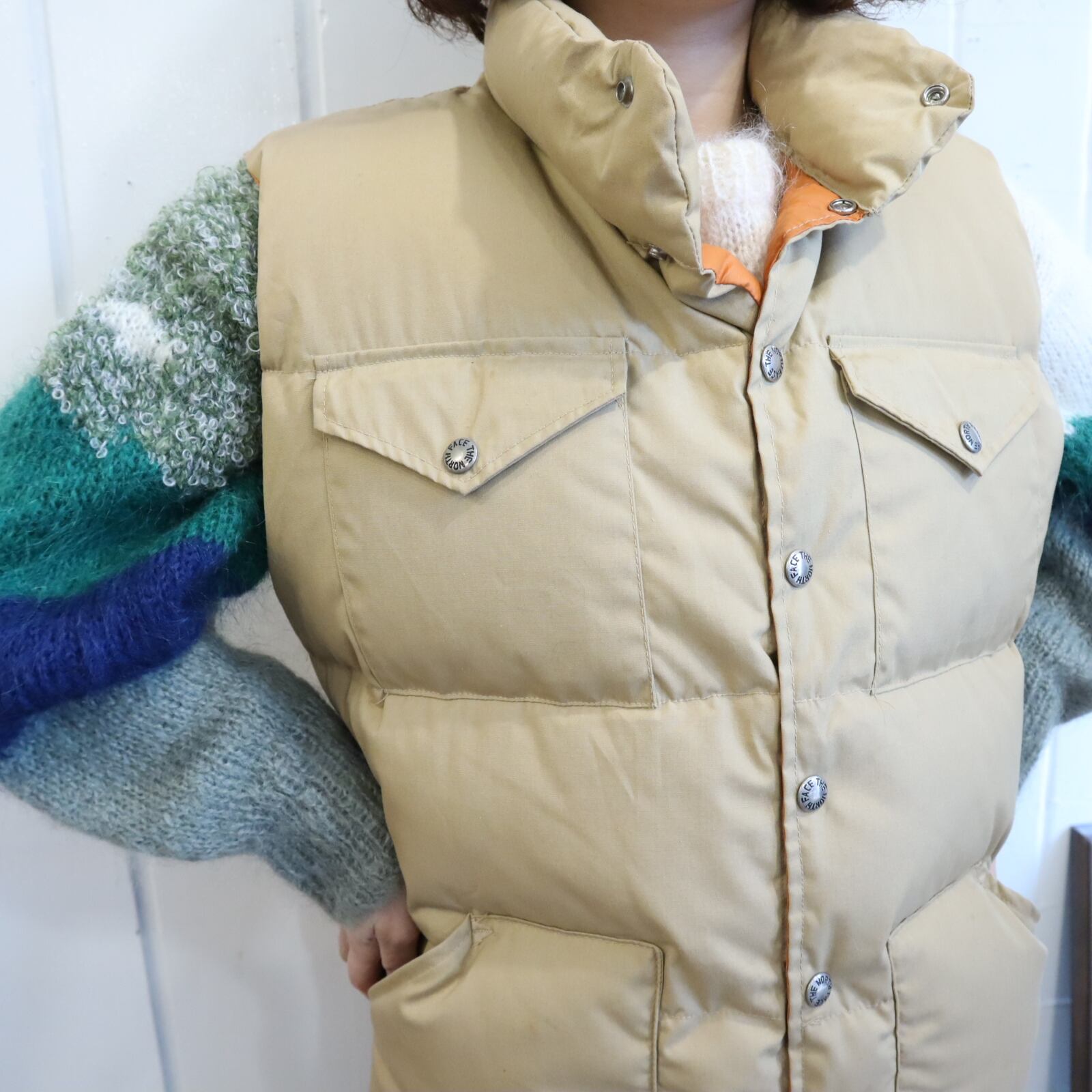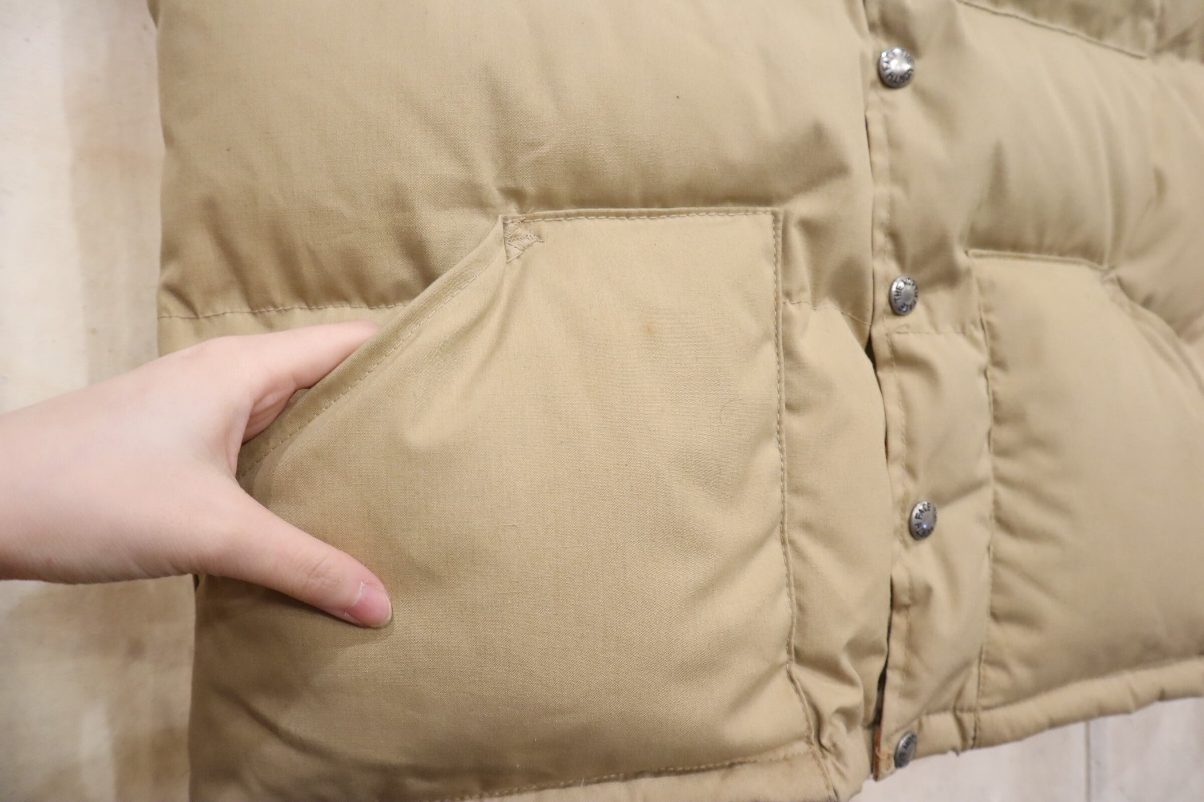 THE NORTH FACE beige plain down vest [k-4870]