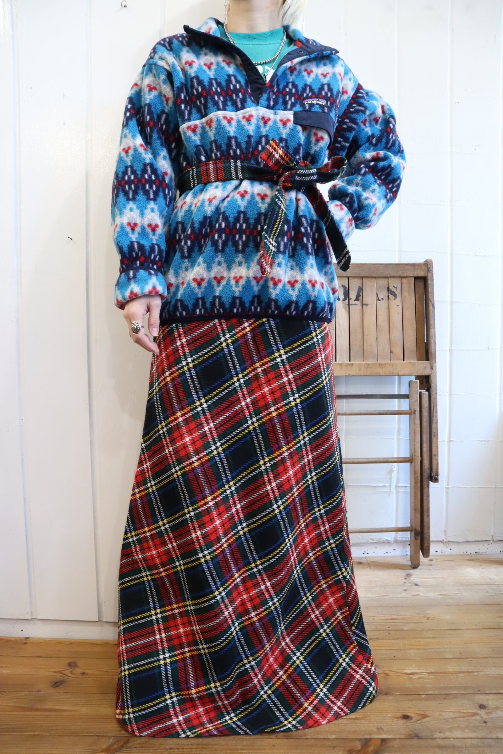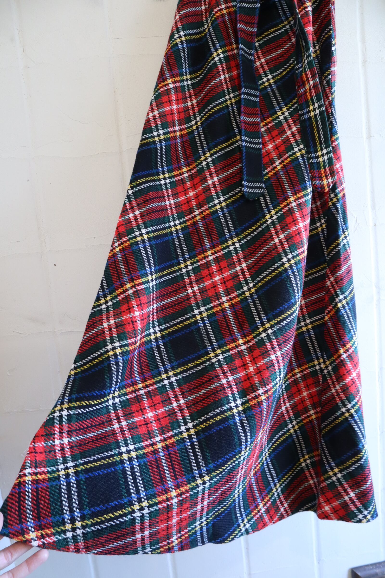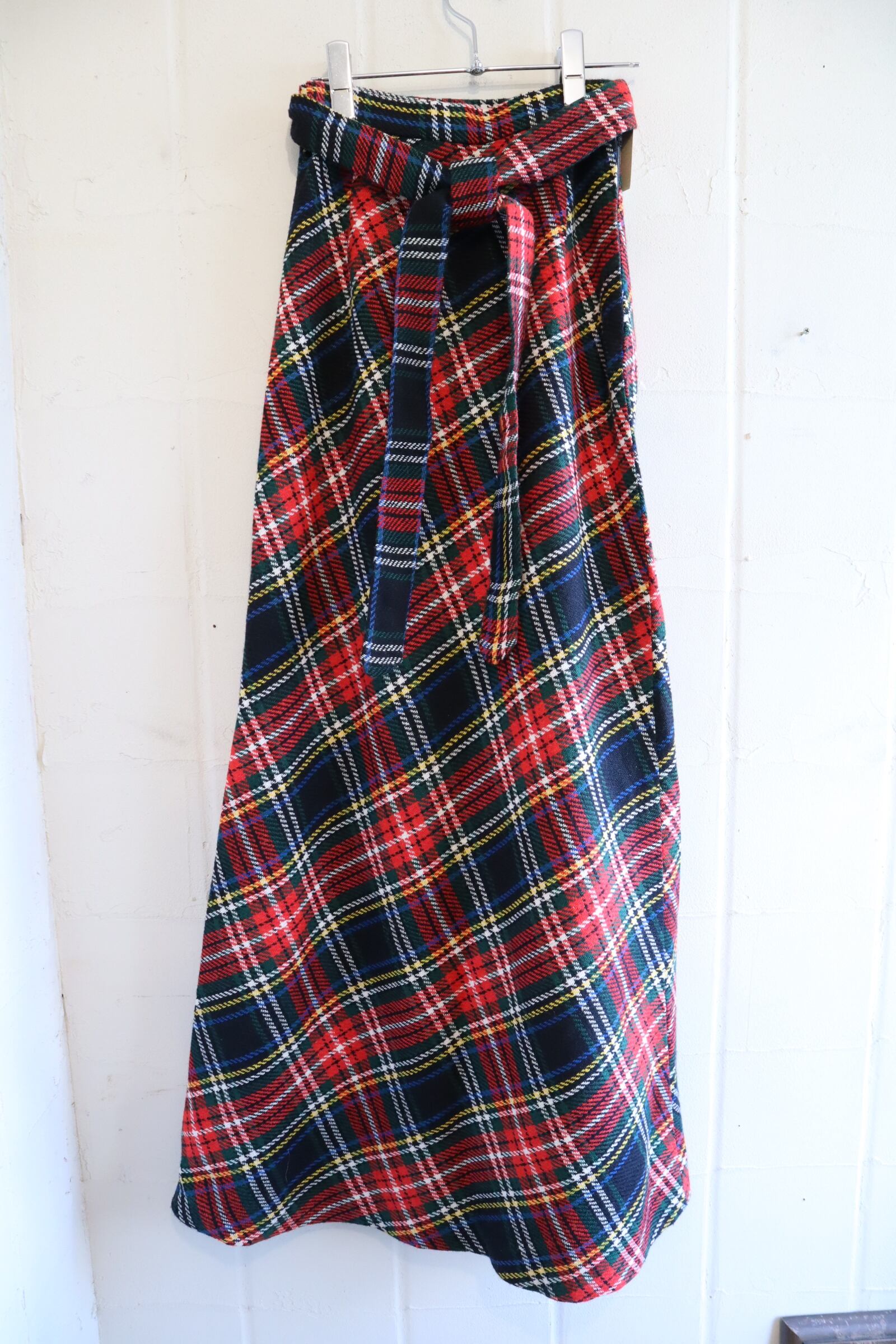70s red×black plaid ribbon long skirt [l-4873]